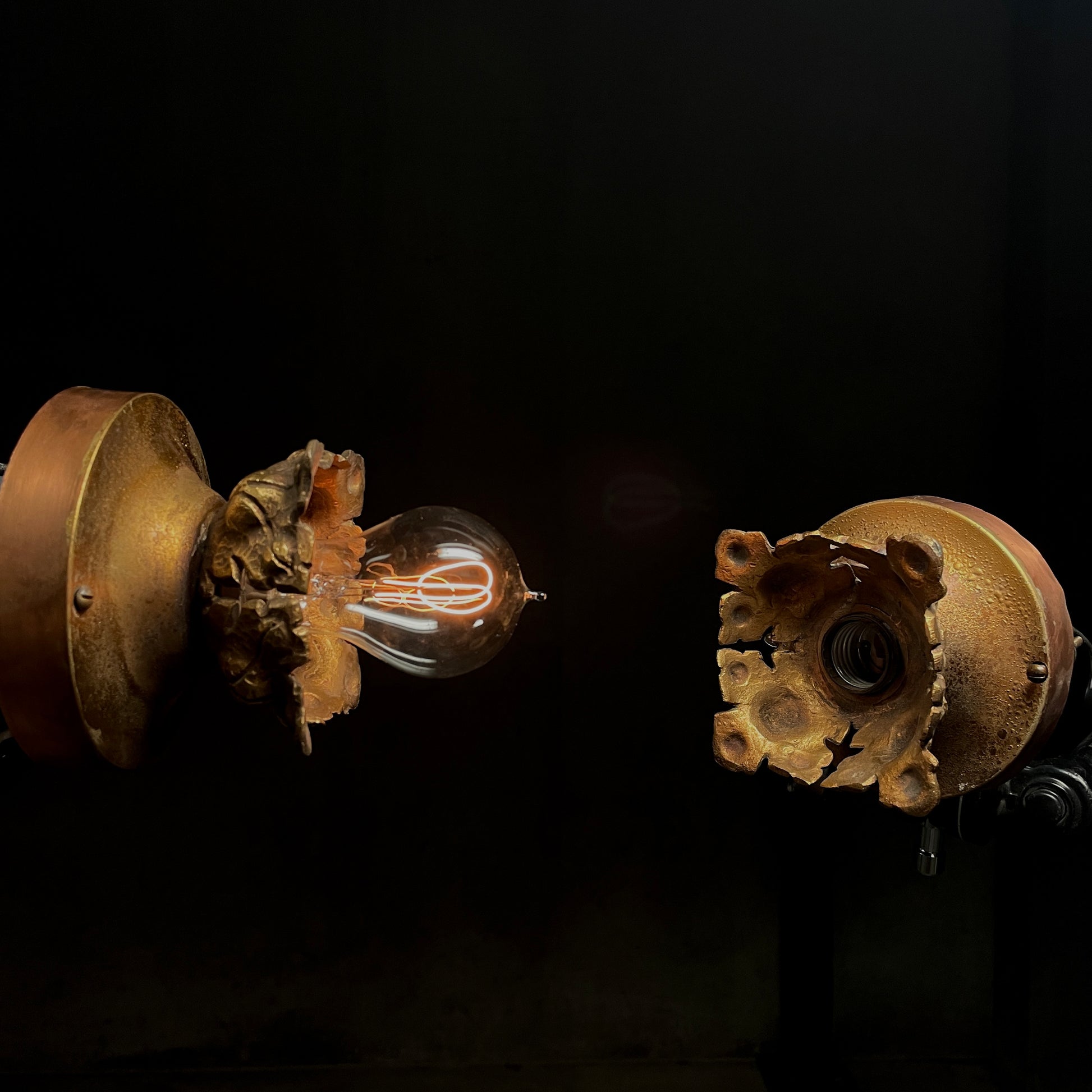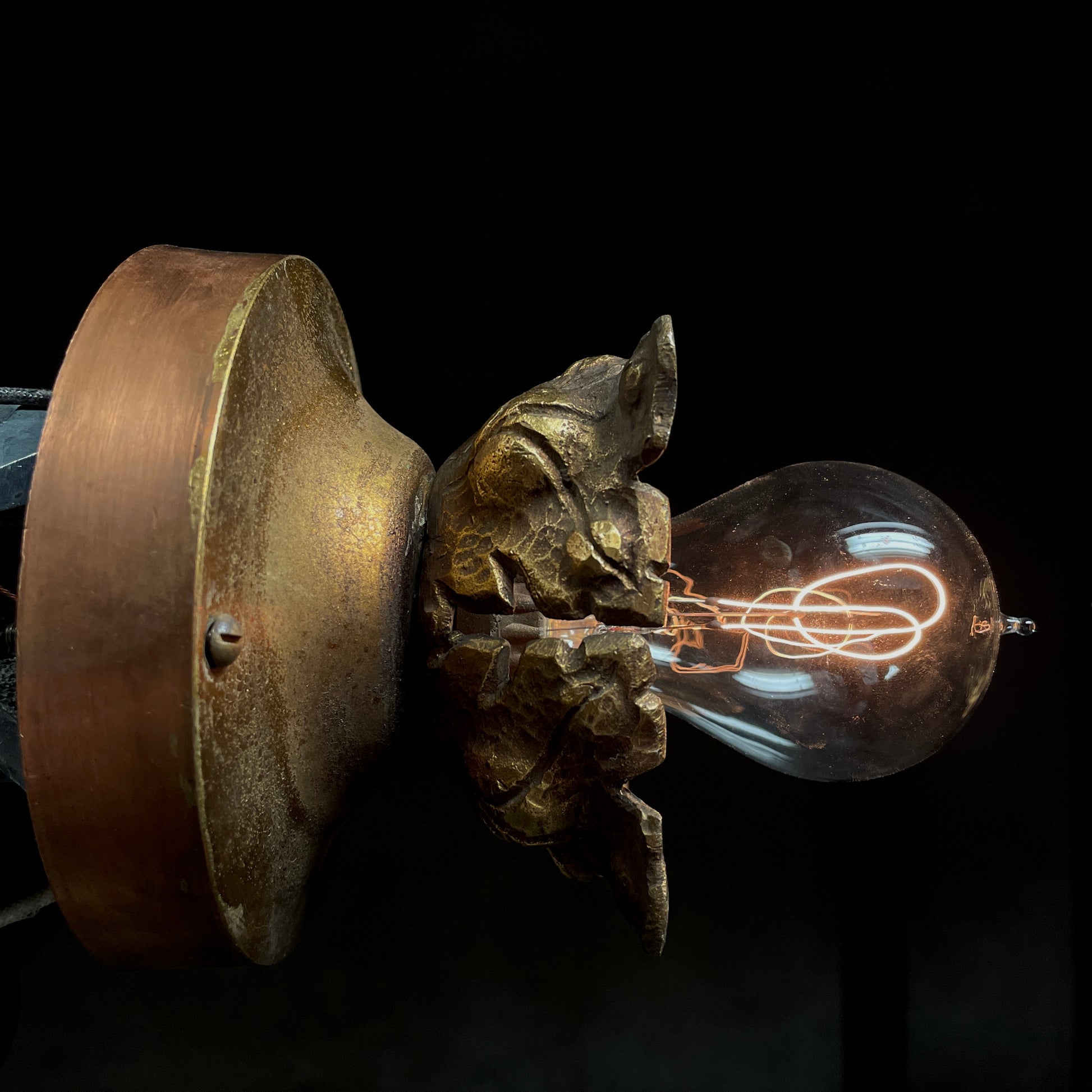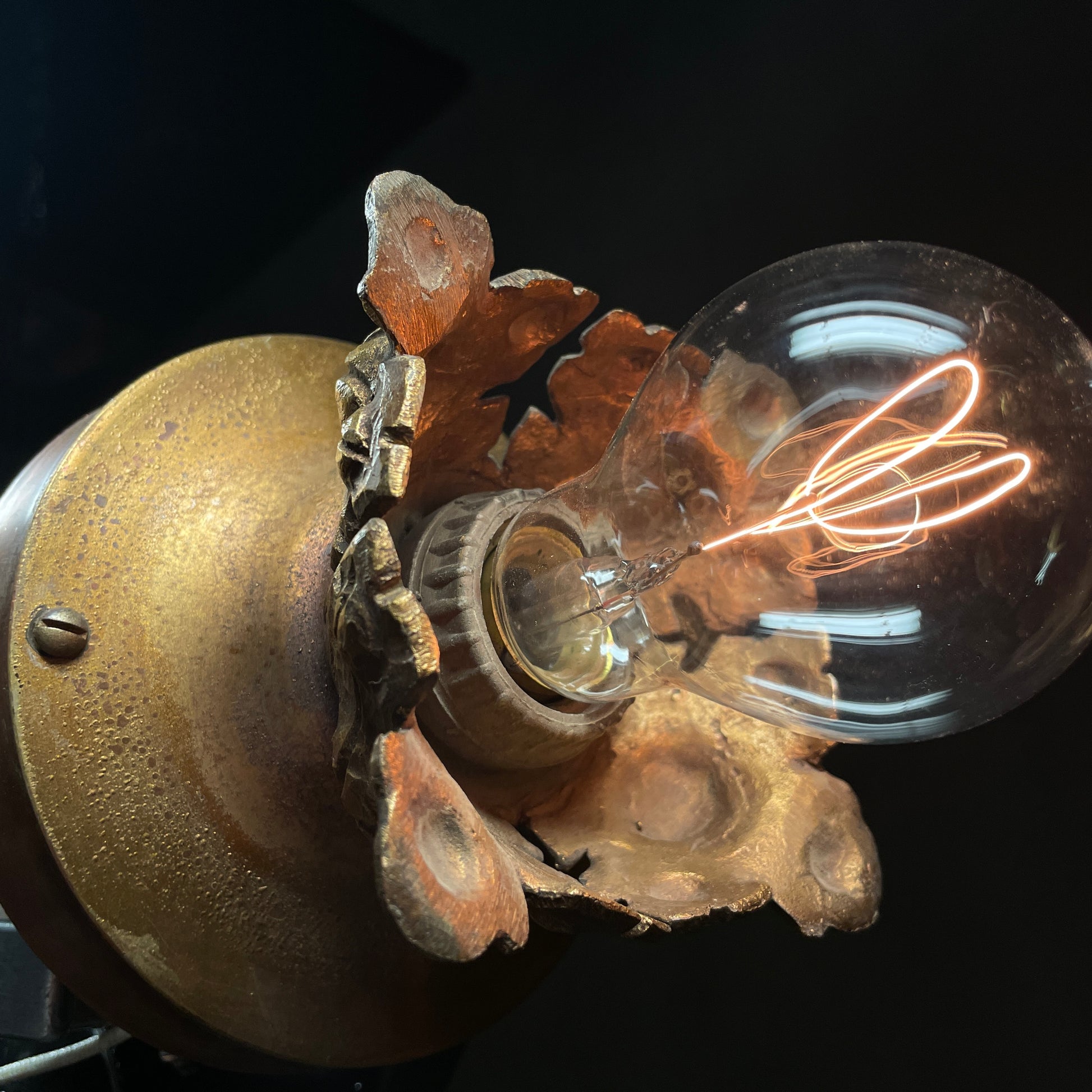 A very rare unique set of 14 sconces made of cast brass with solid copper fitter acquired in a old demolition years ago in Pittsburgh. I’ve never seen them before, we think they could be great in a grouping or as sconces. They are very well made.