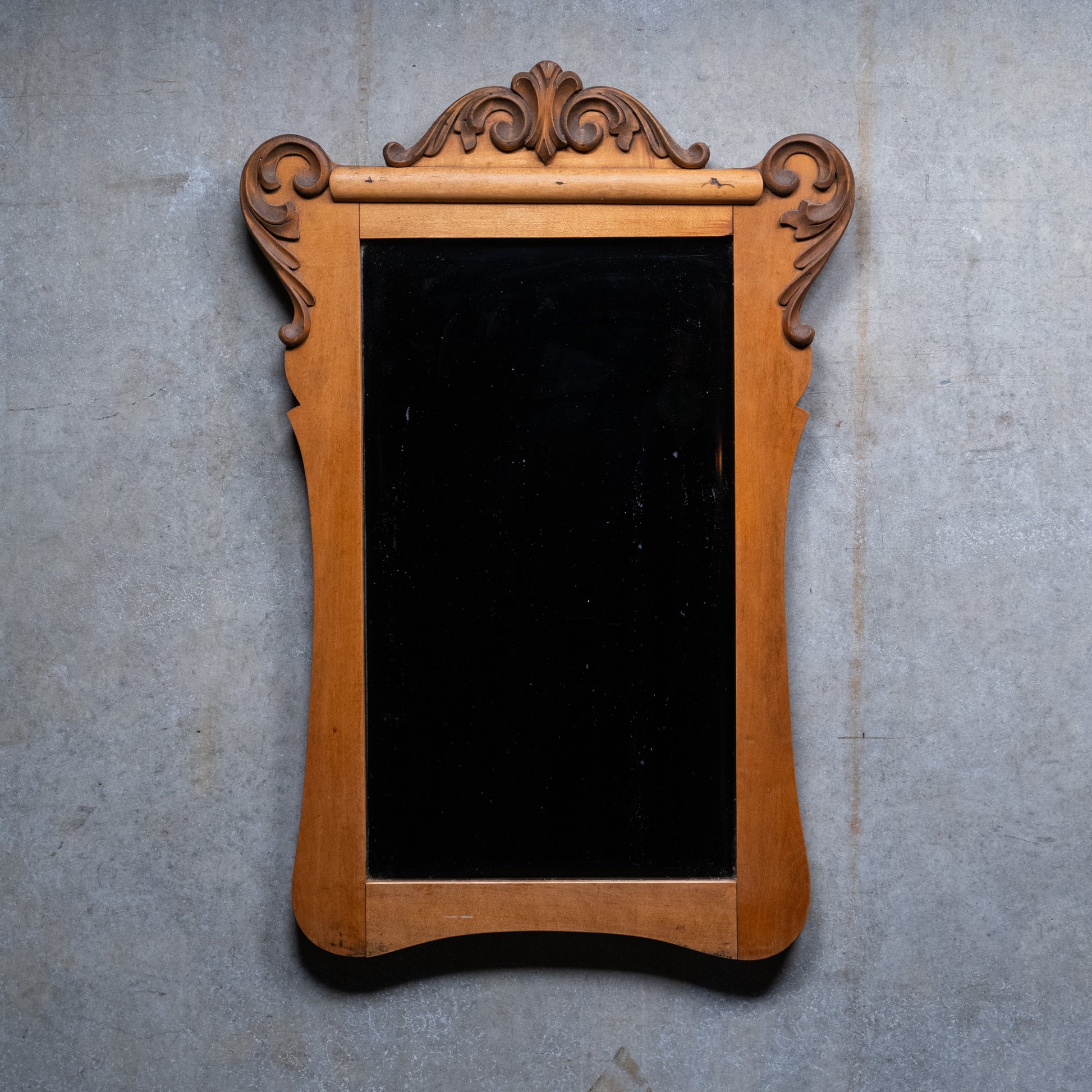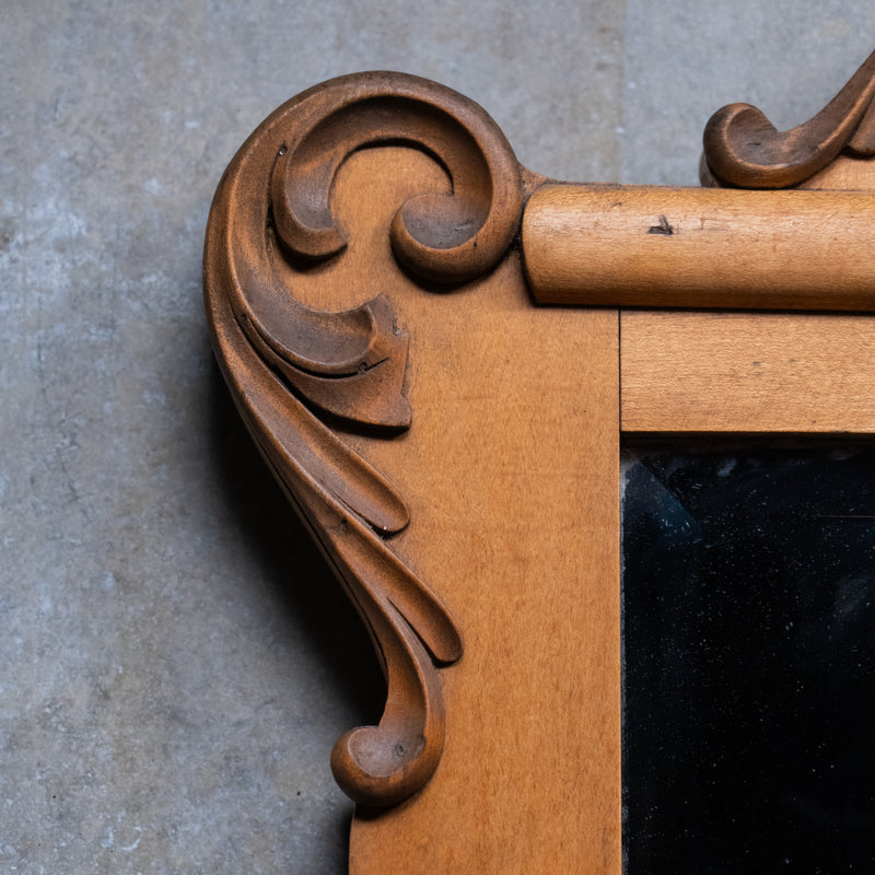 This is a clean natural carved mirror in beautiful original condition. Found in Ontario.
