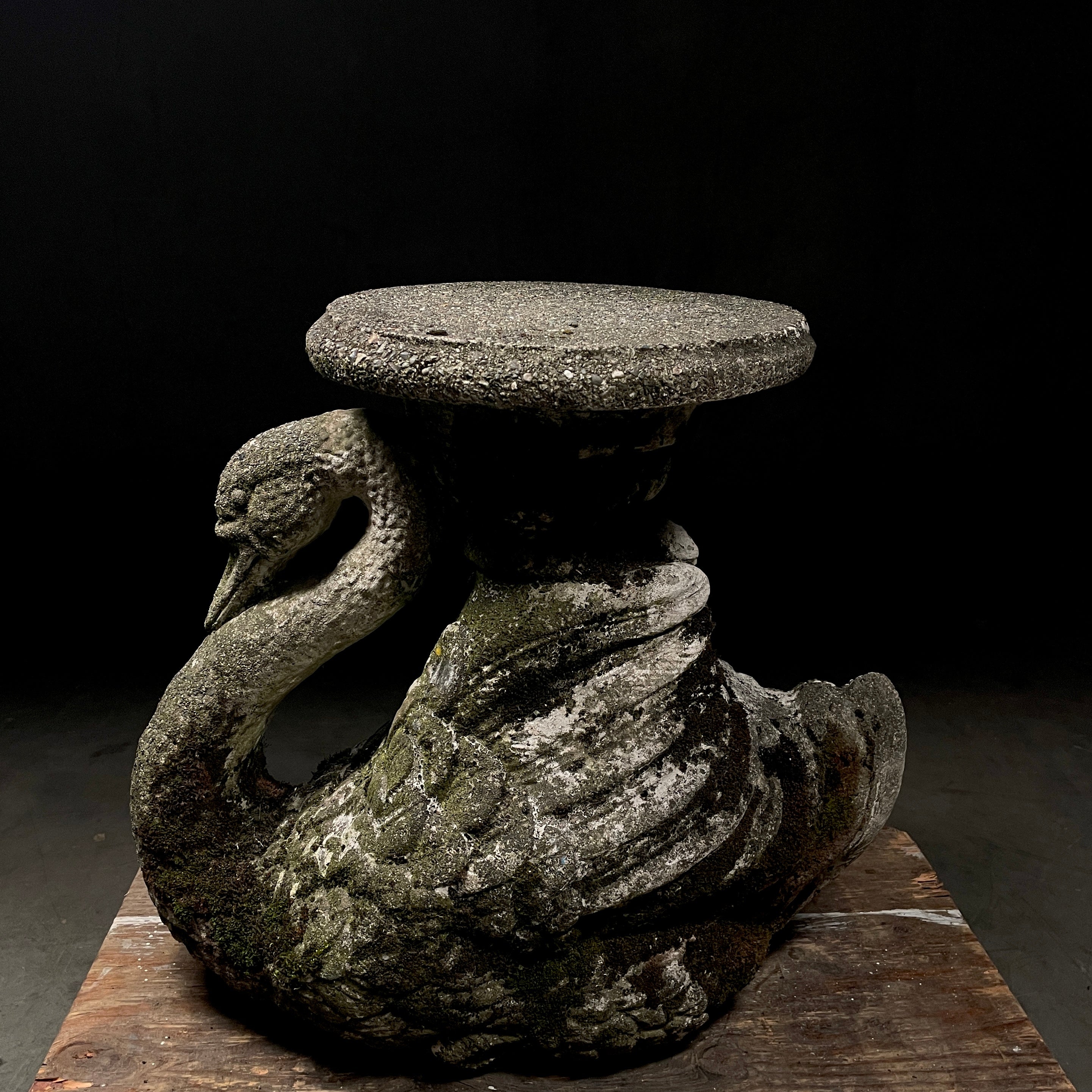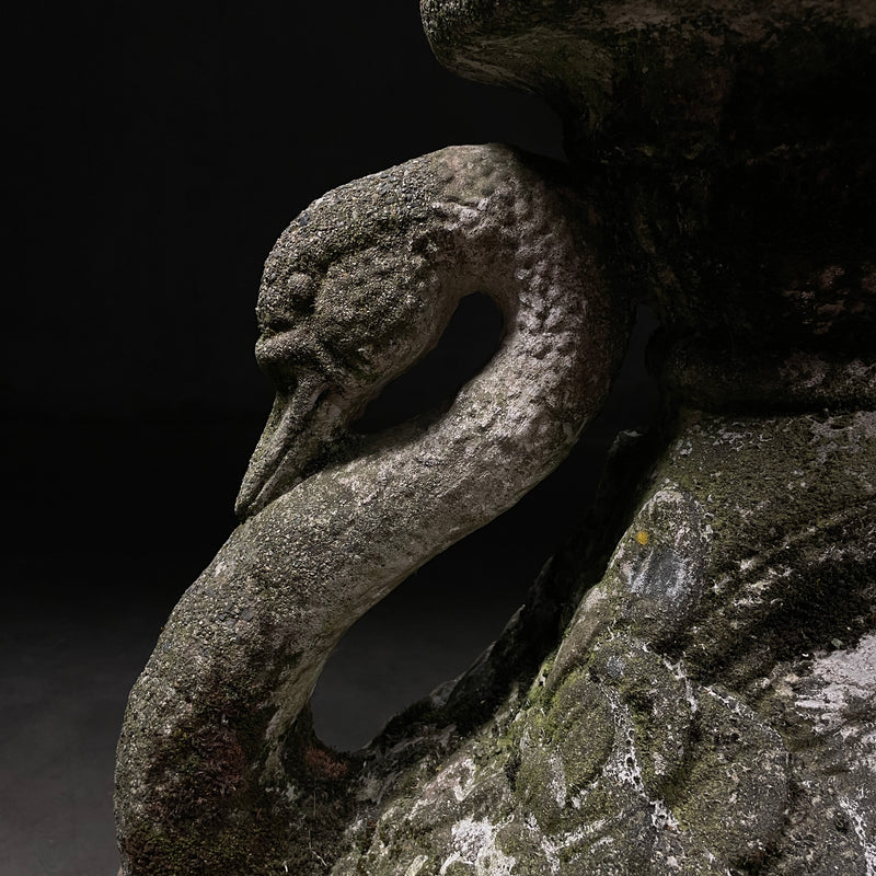 A very unique composite stone garden swan, showing beautiful aged patina. Most likely French in origin.