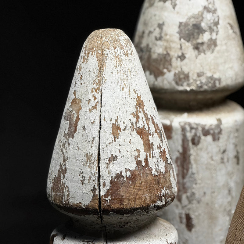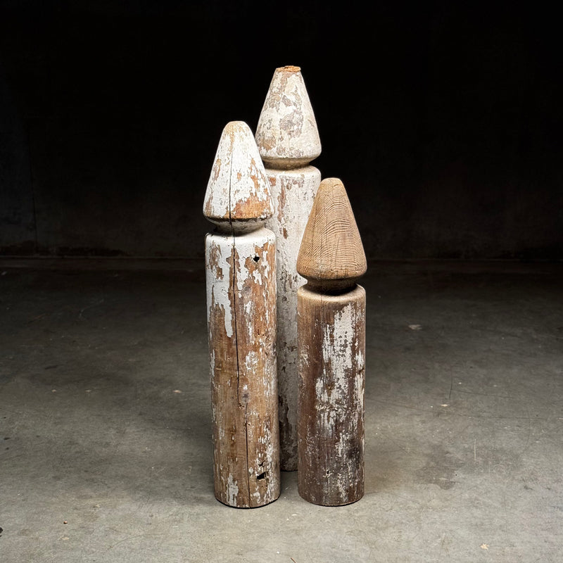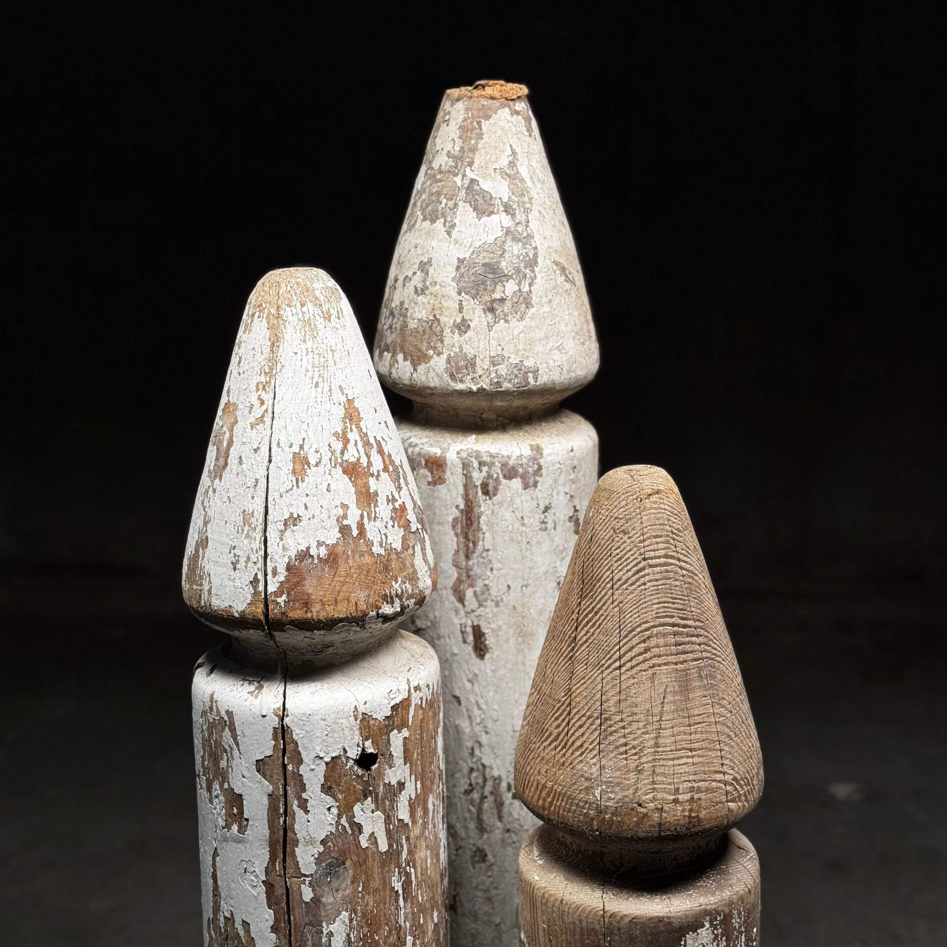 Hand turned solid wood post/ pillars salvaged from a home built in the 19th century in Eastern Ontario, St- Lawrence river.