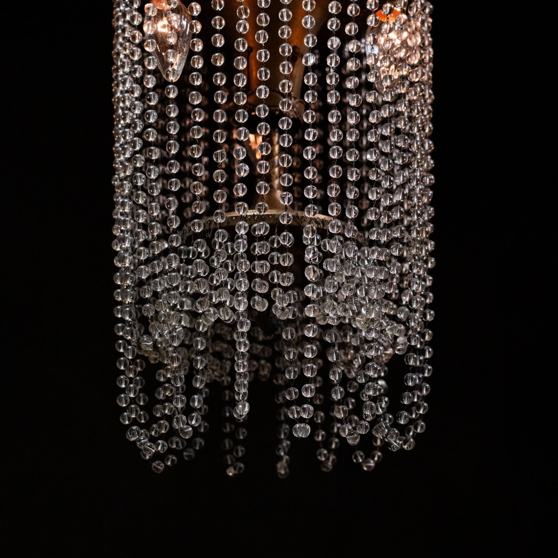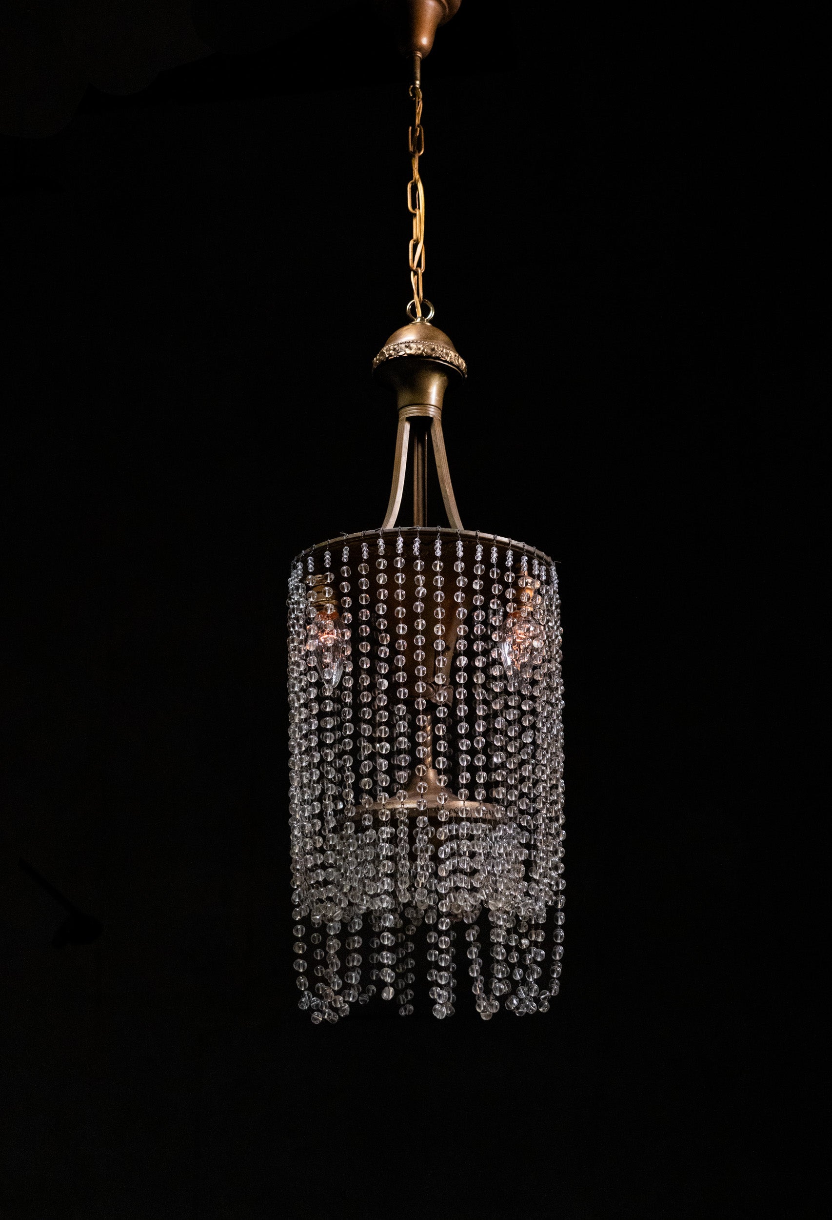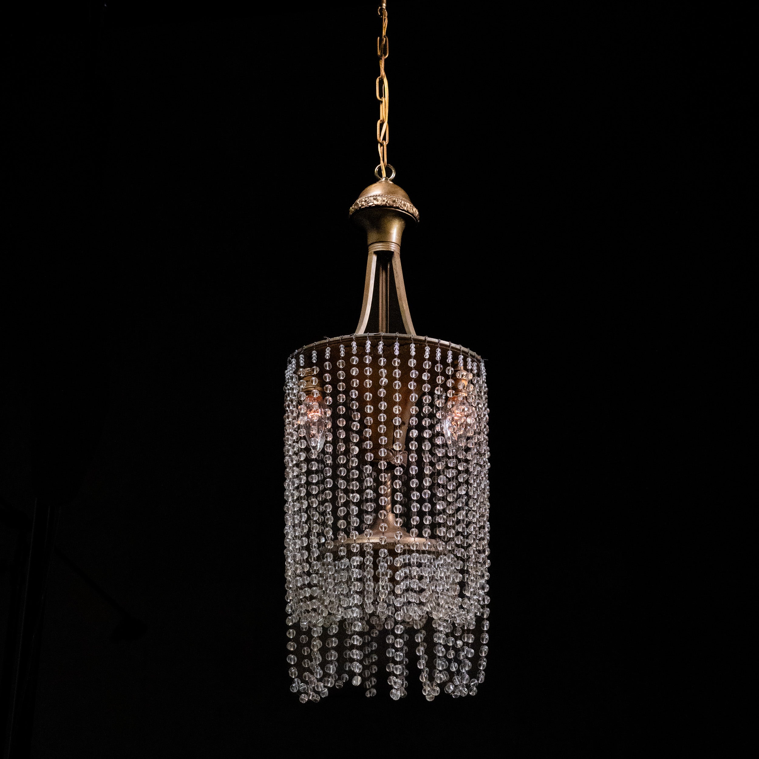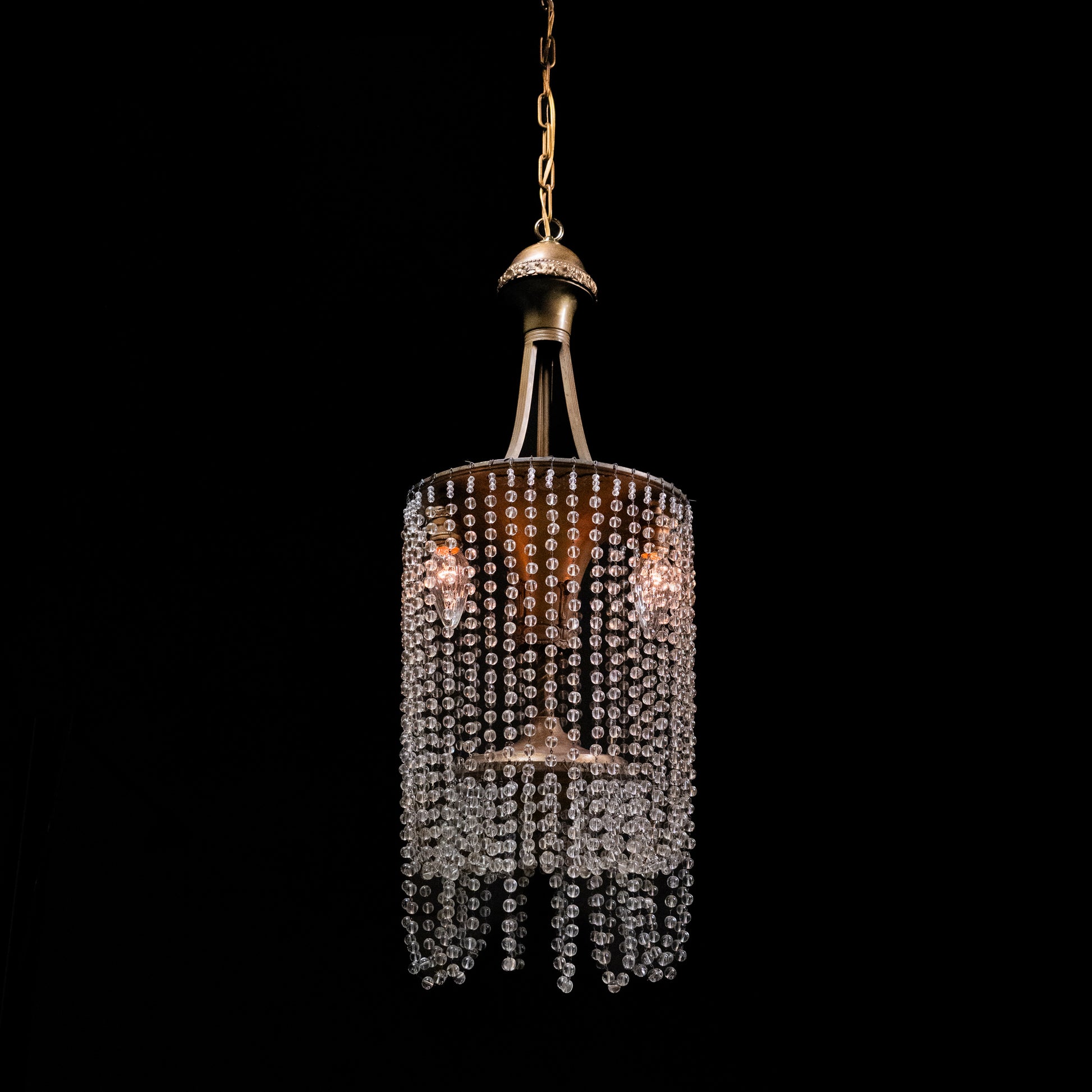 A very rare form in this waterfall crystal chandelier, rewired and ready to hang.