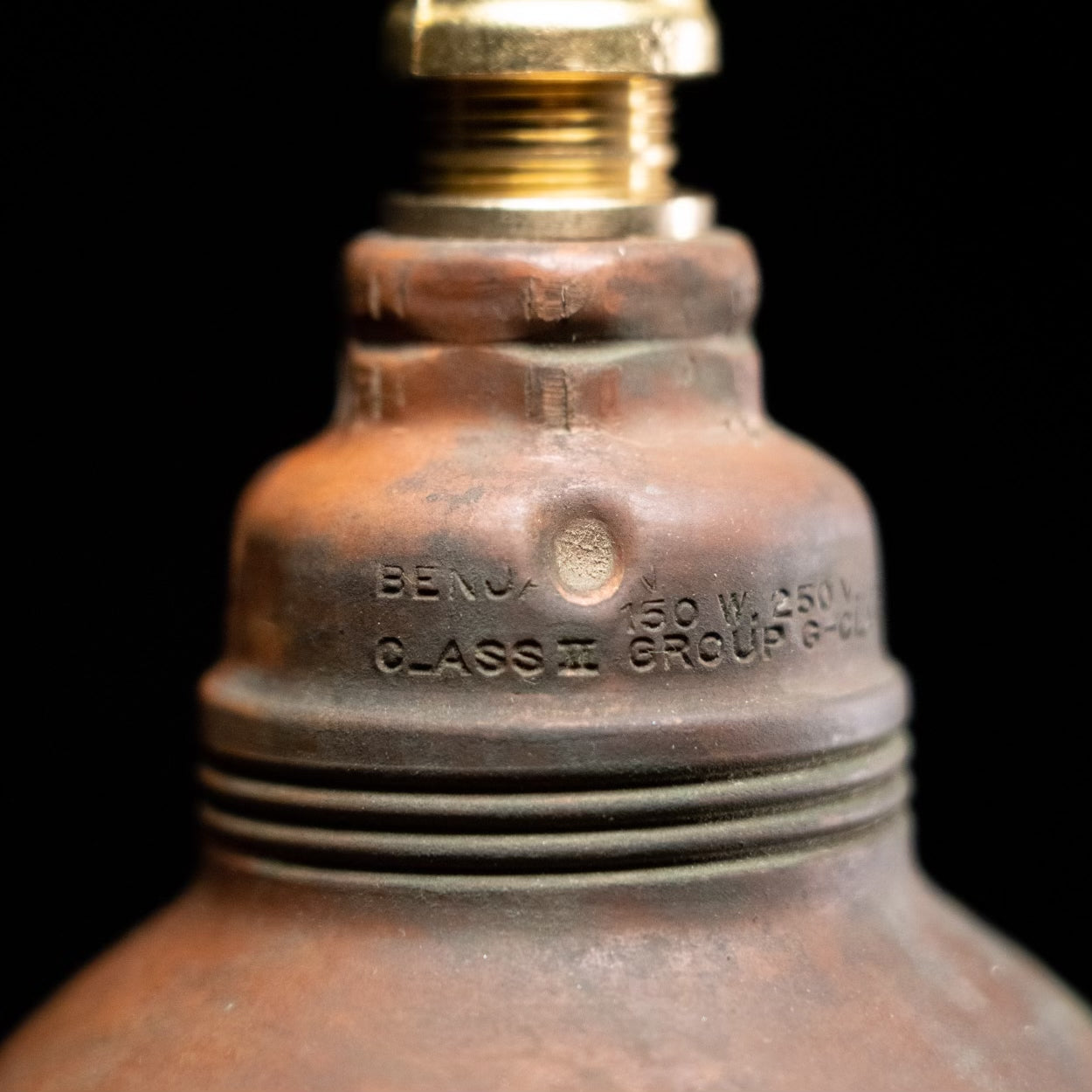 Back in stock — the always in-demand copper-topped Benjamin industrial pendant. The perfect shape and scale for a go-anywhere light. Hang individually or in groups; infinitely adjustable. Inspected and approved to current electrical standards; ceiling mounting plate included.