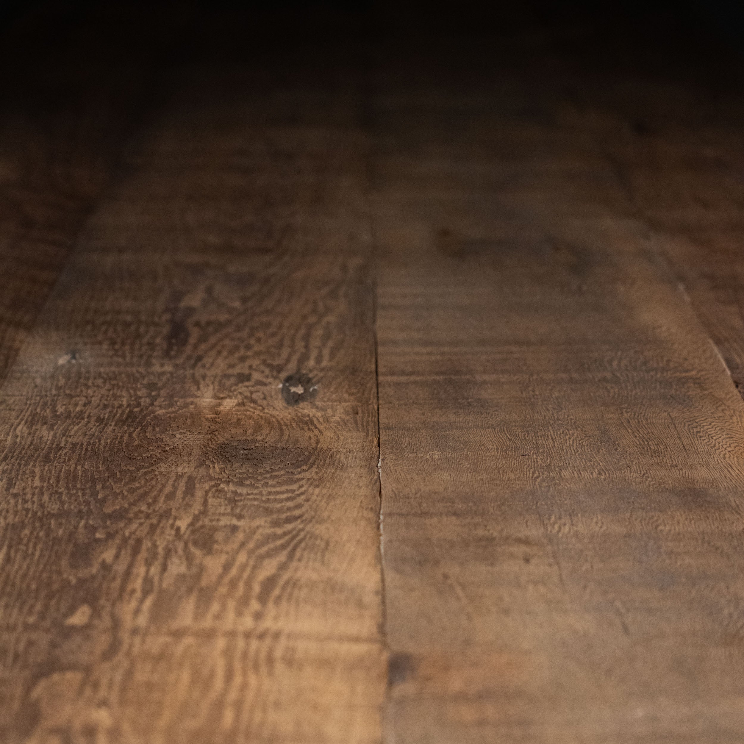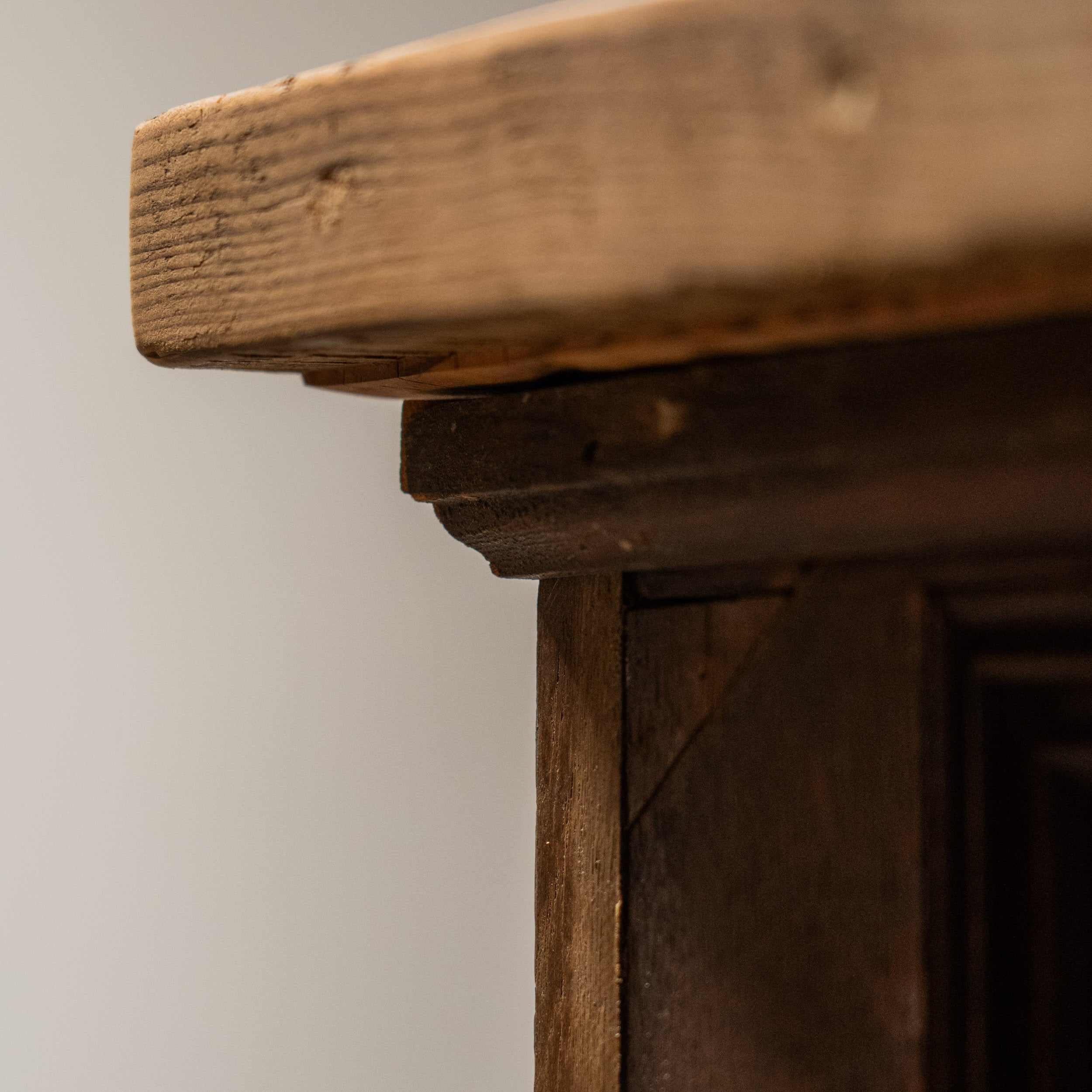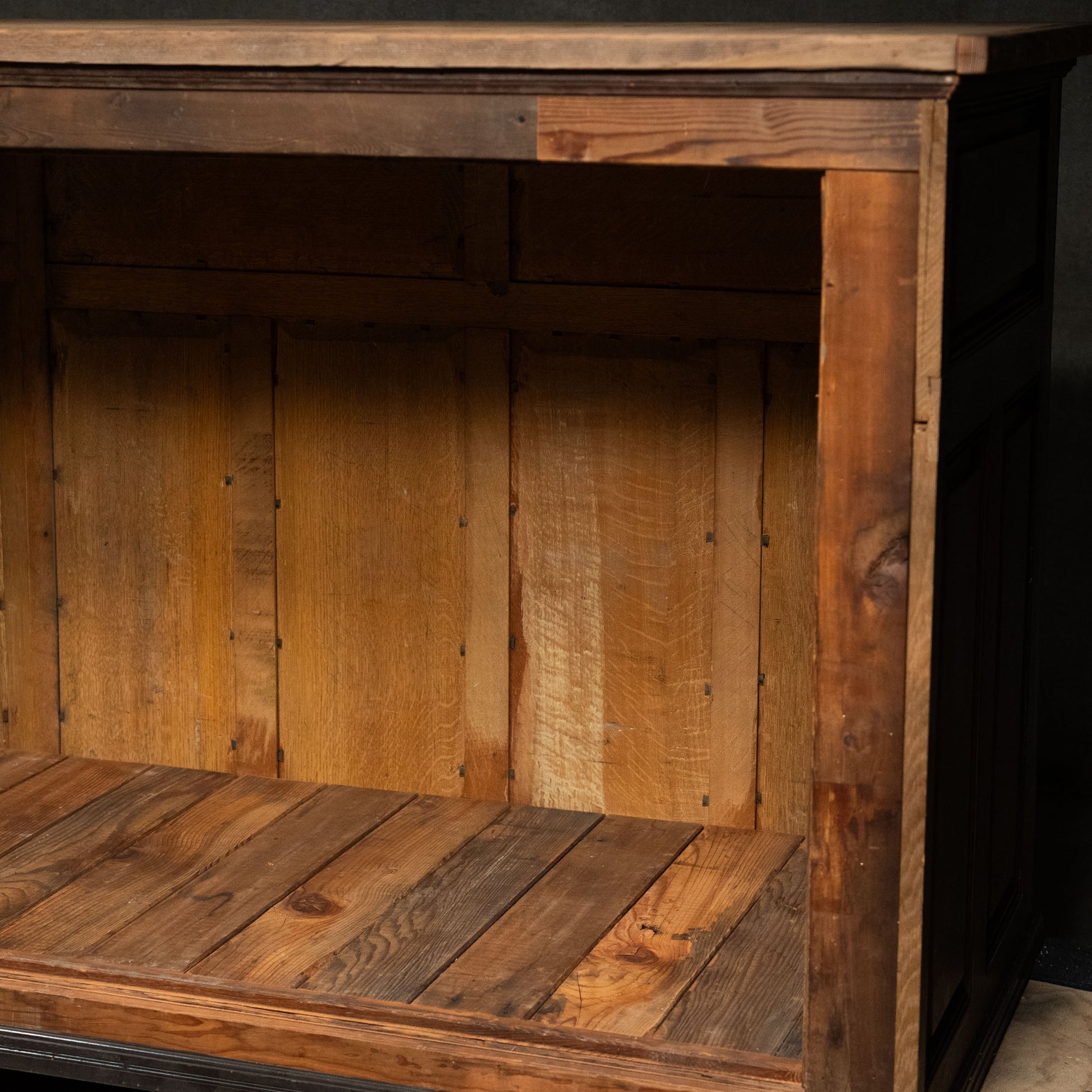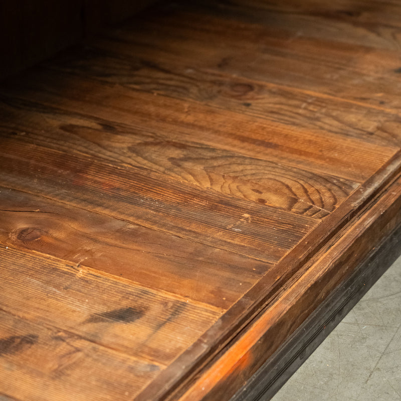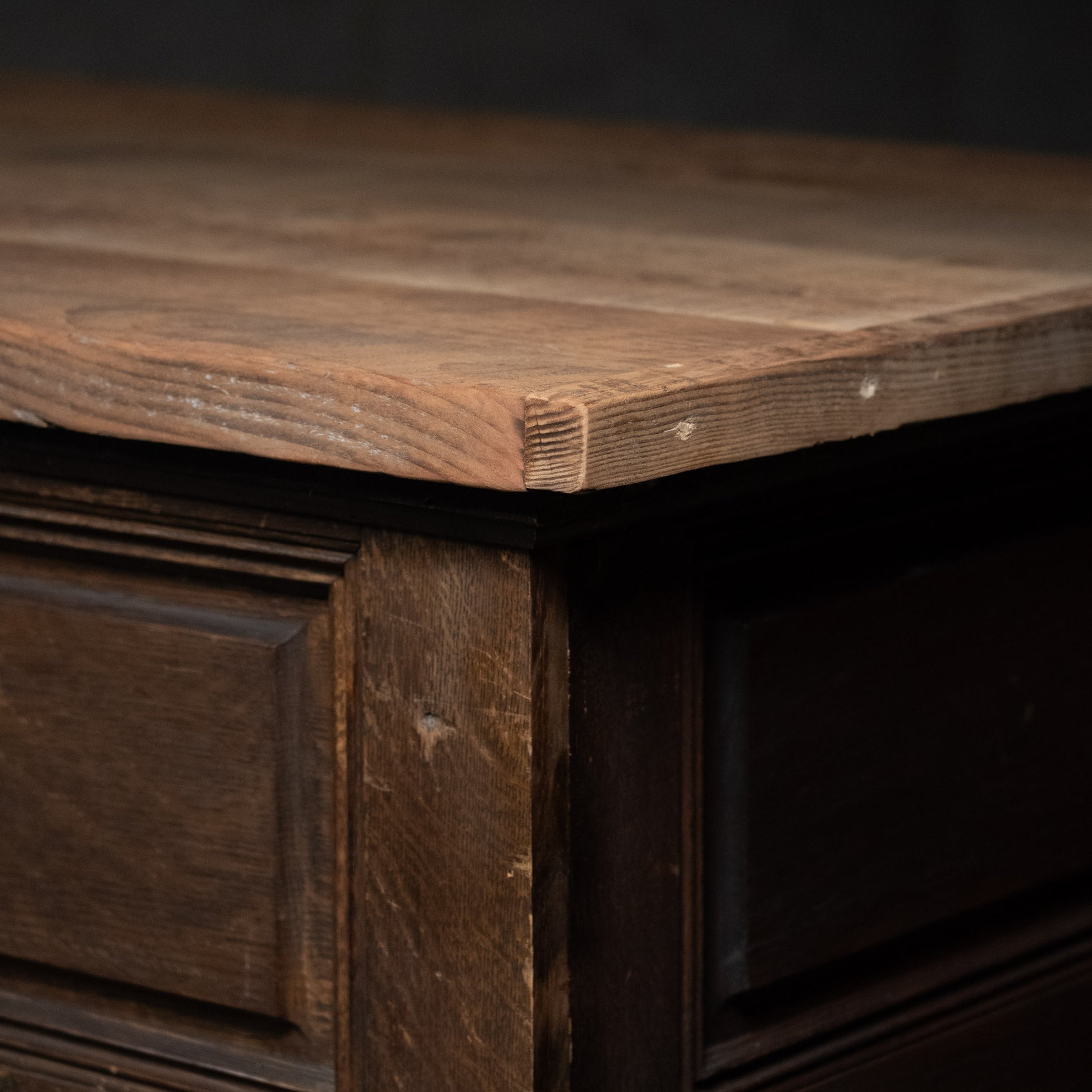 Multi panel oak counter found in a building on 27th Ave in Manhattan. We were required to take the piece apart in order to get it out of the building. Panels retain an old finish with a new solid reclaimed wood top.