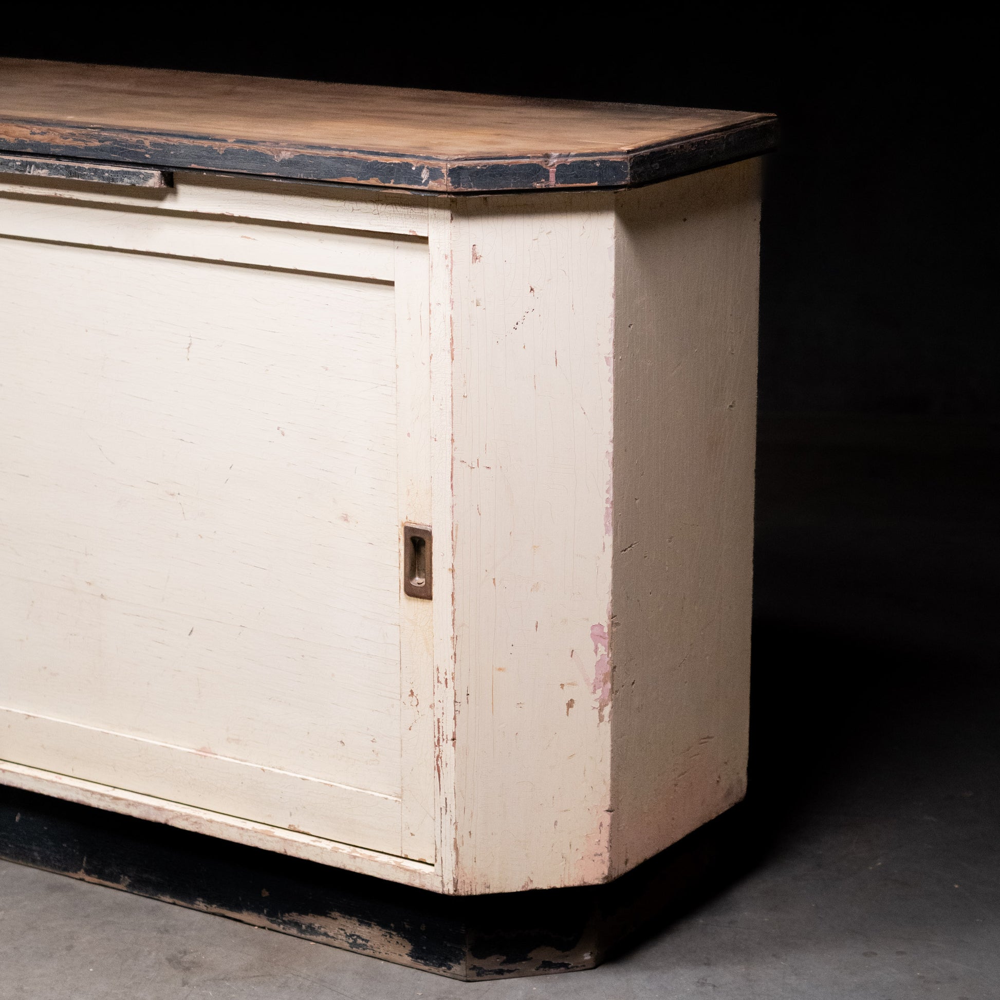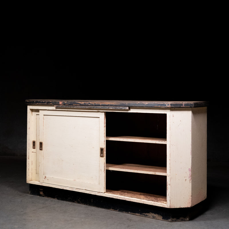A local BC piece likely from a general store in New Westminster. Retains old finish and original sliding doors in clear first growth fir.