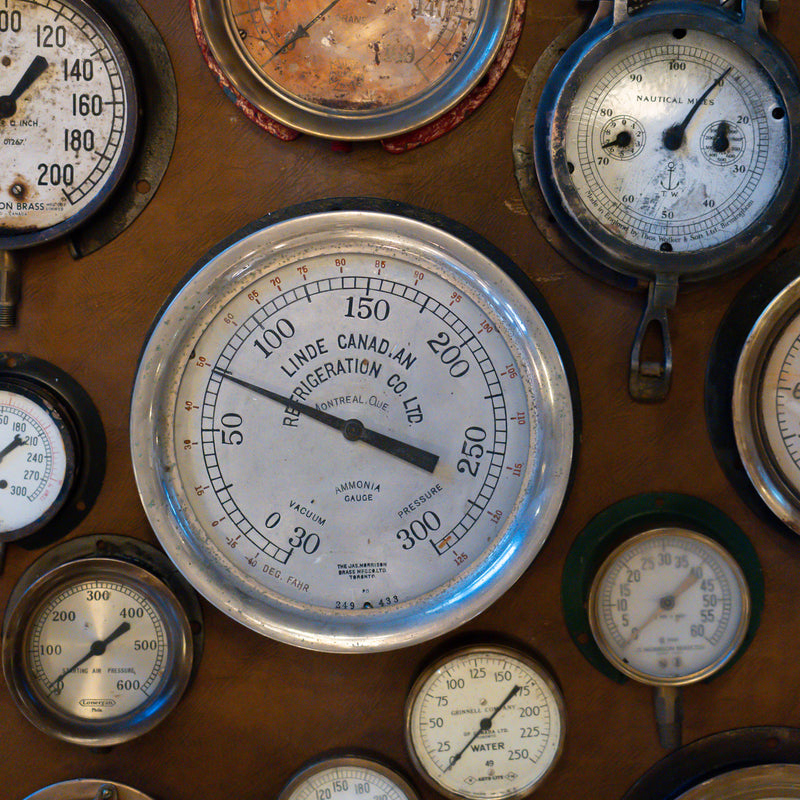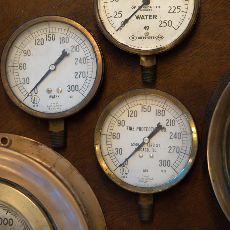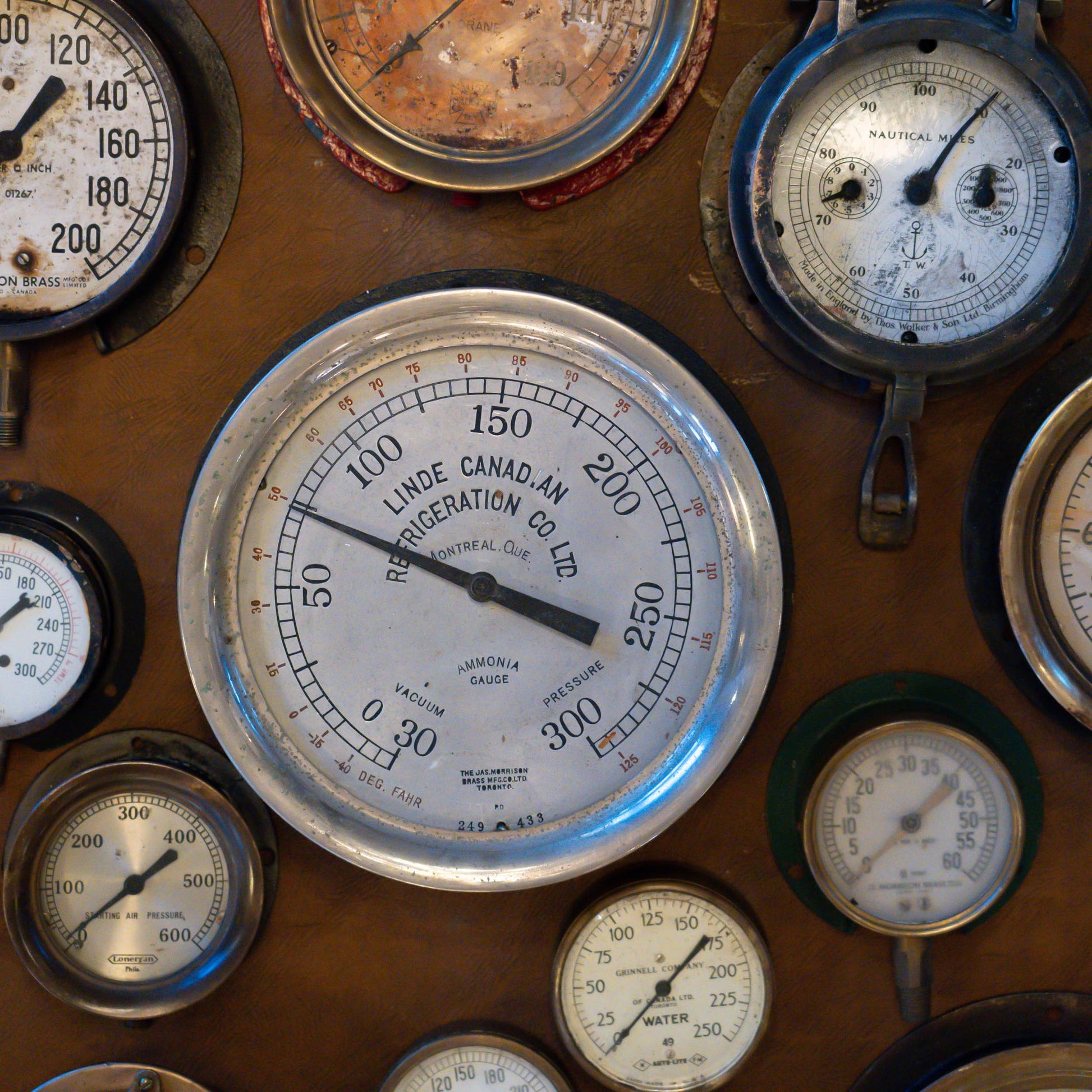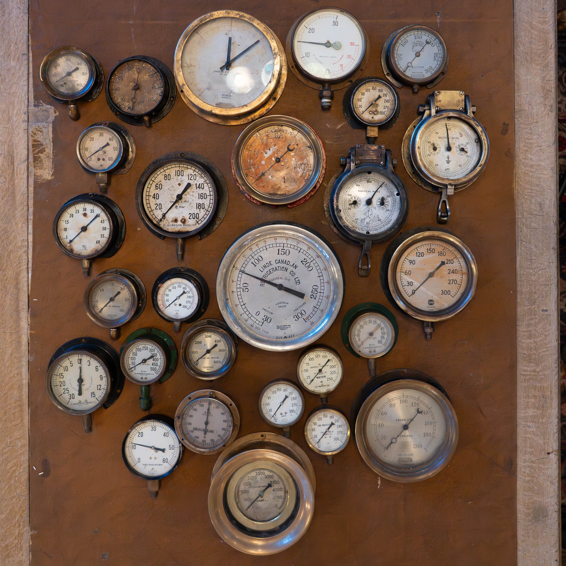 Various Nautical Dials and Gauges in Antique Brass and Copper