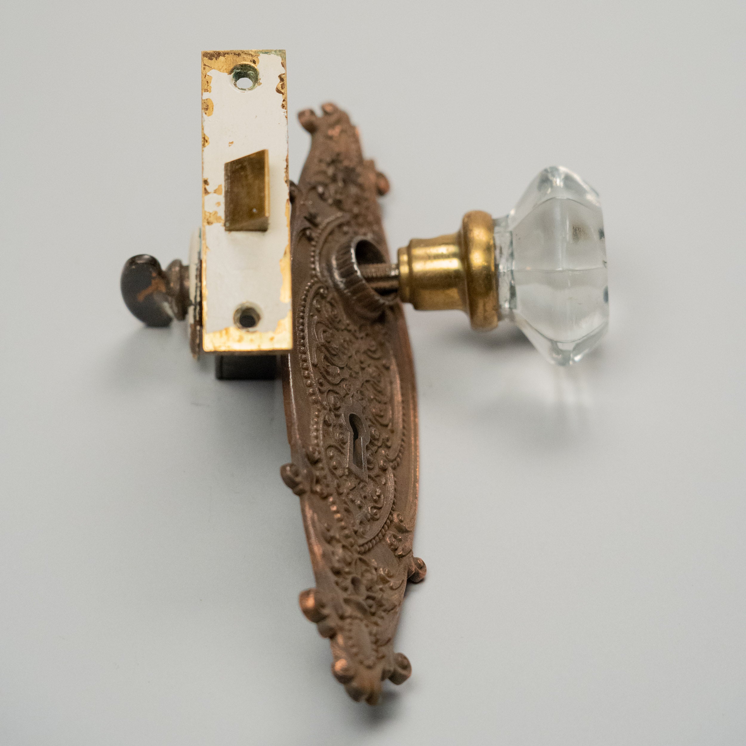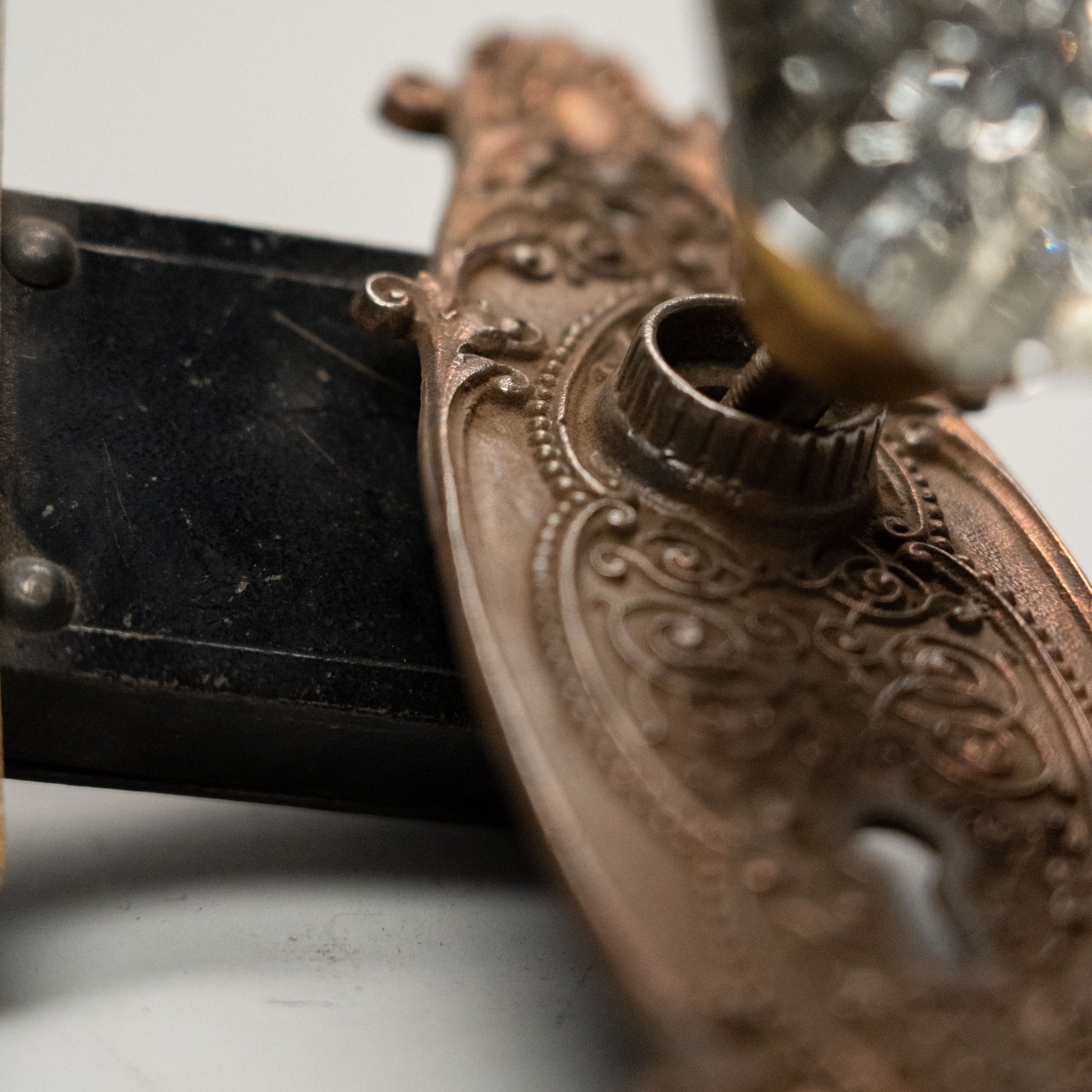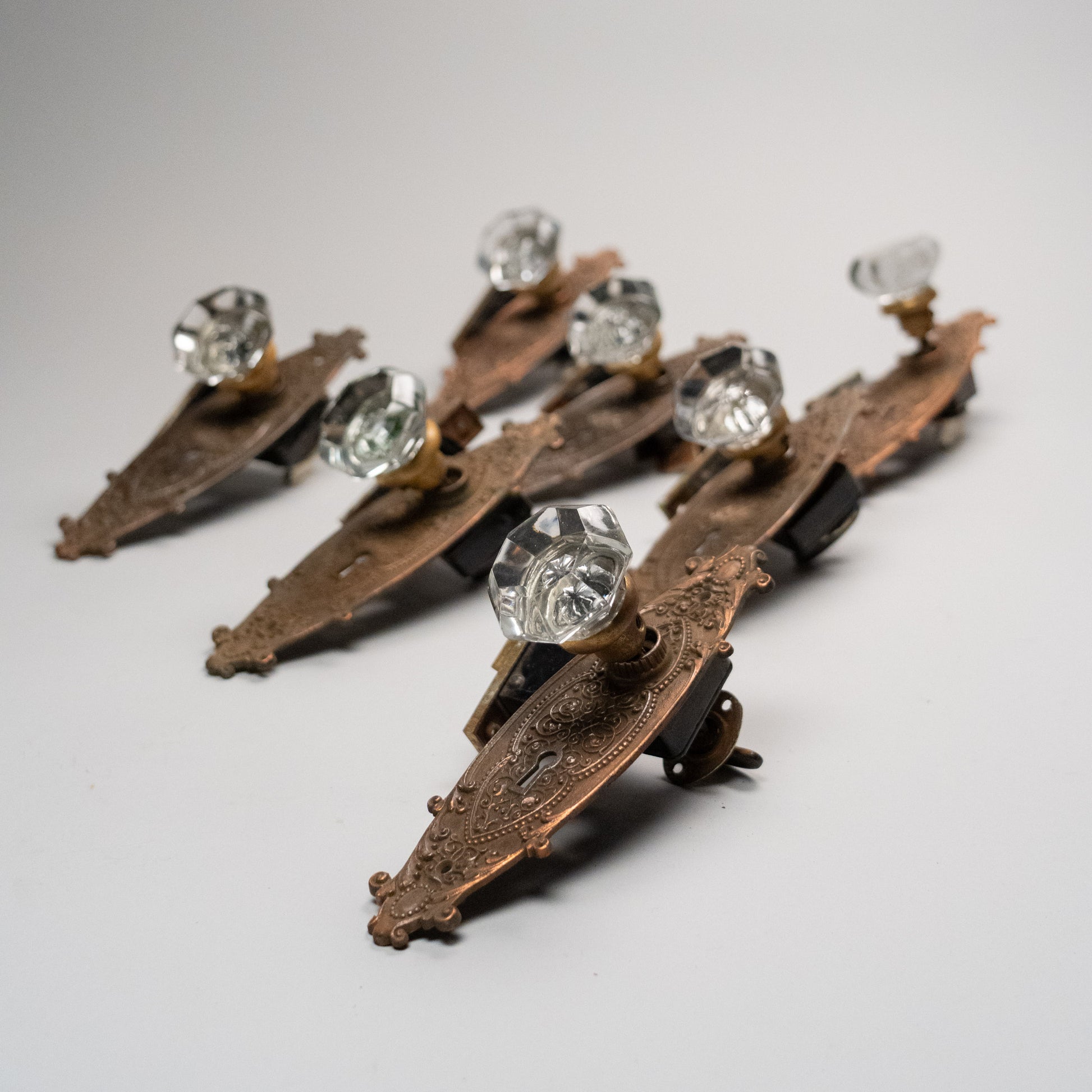 Set of 7 1910 Decorative Brass and Crystal Door Knobs
