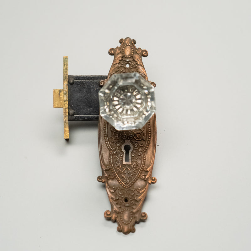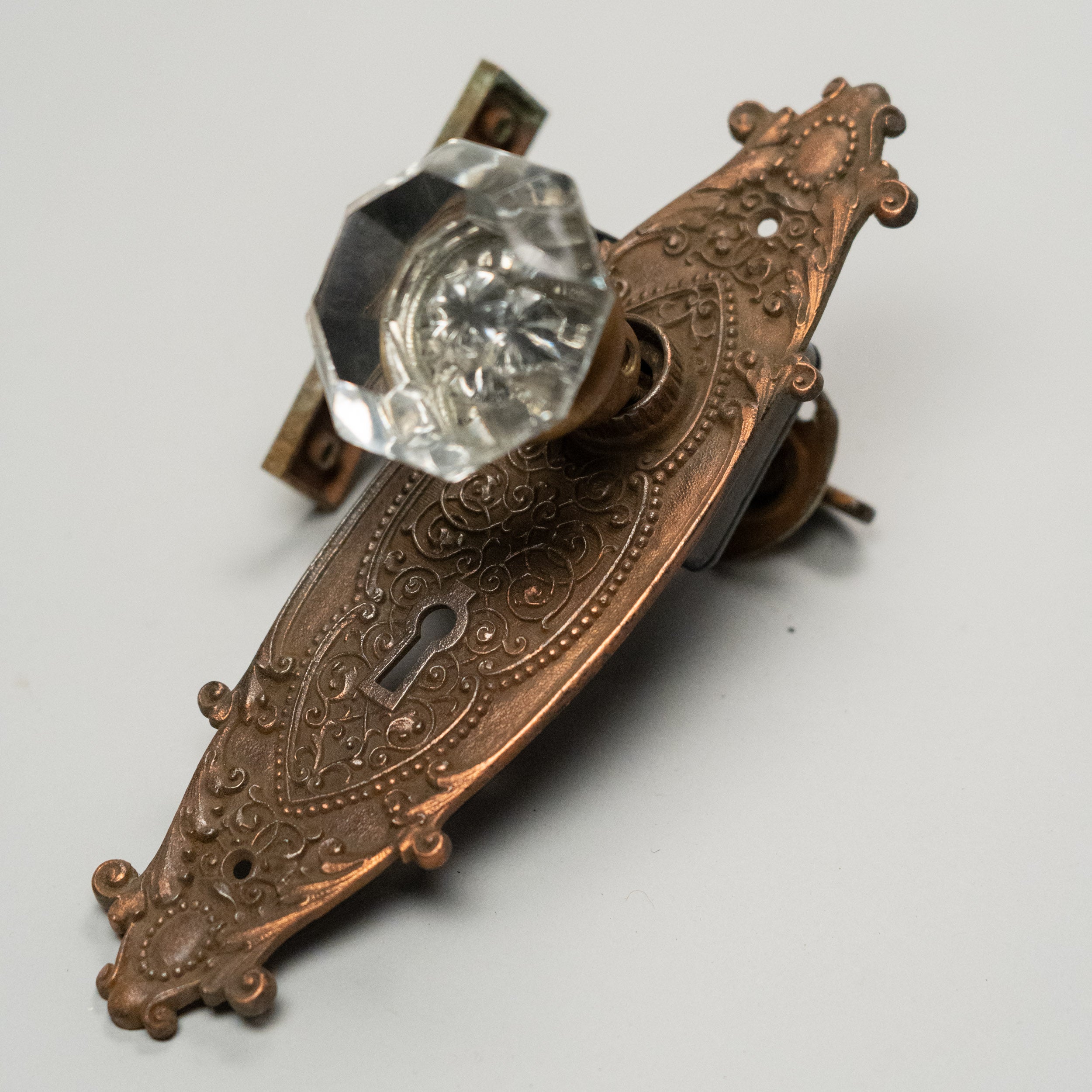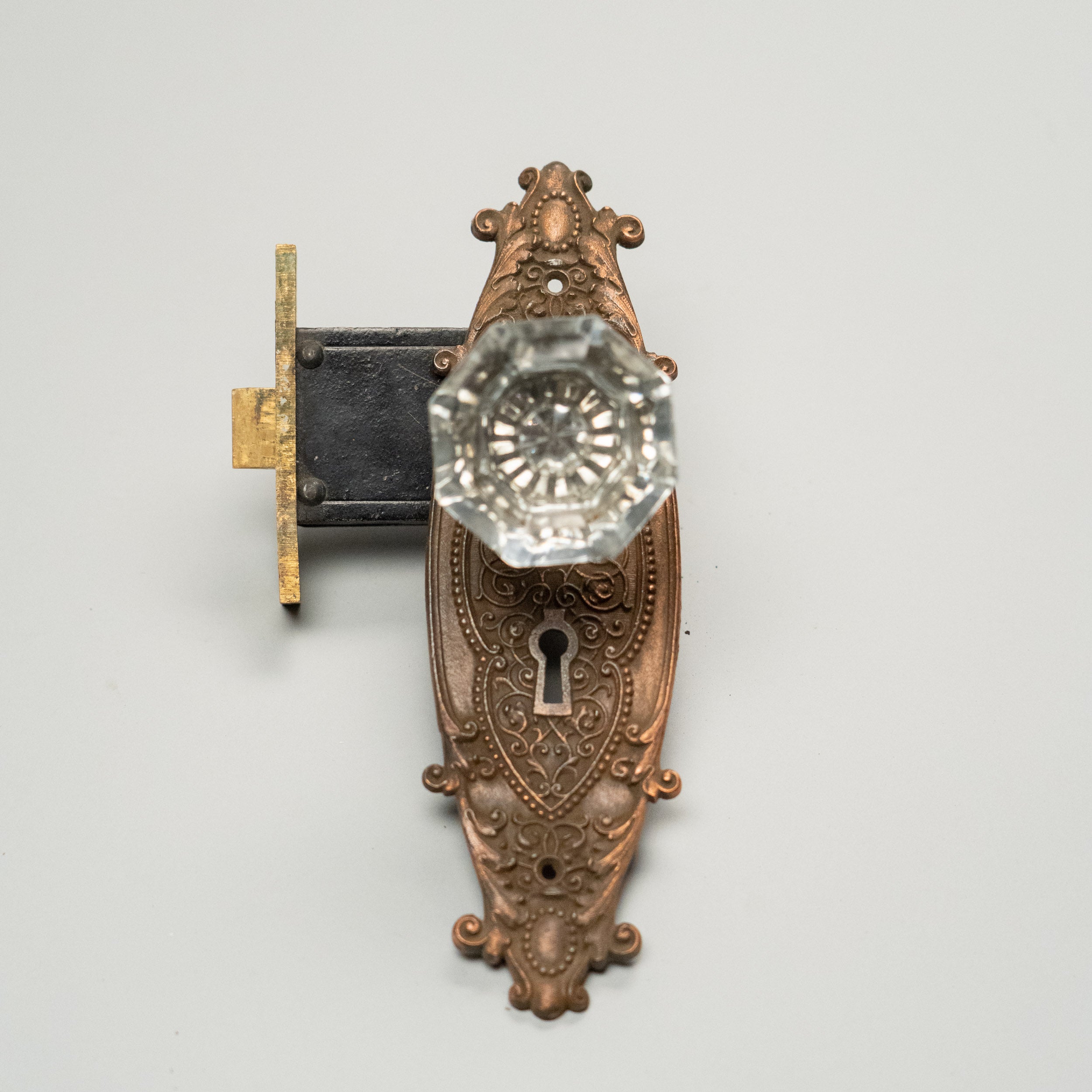 Set of 7 1910 Decorative Brass and Crystal Door Knobs