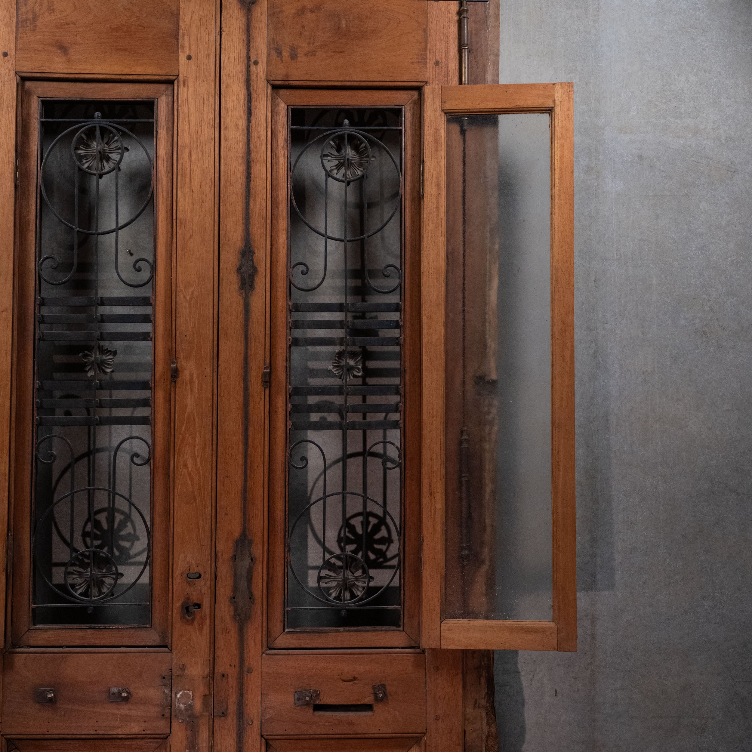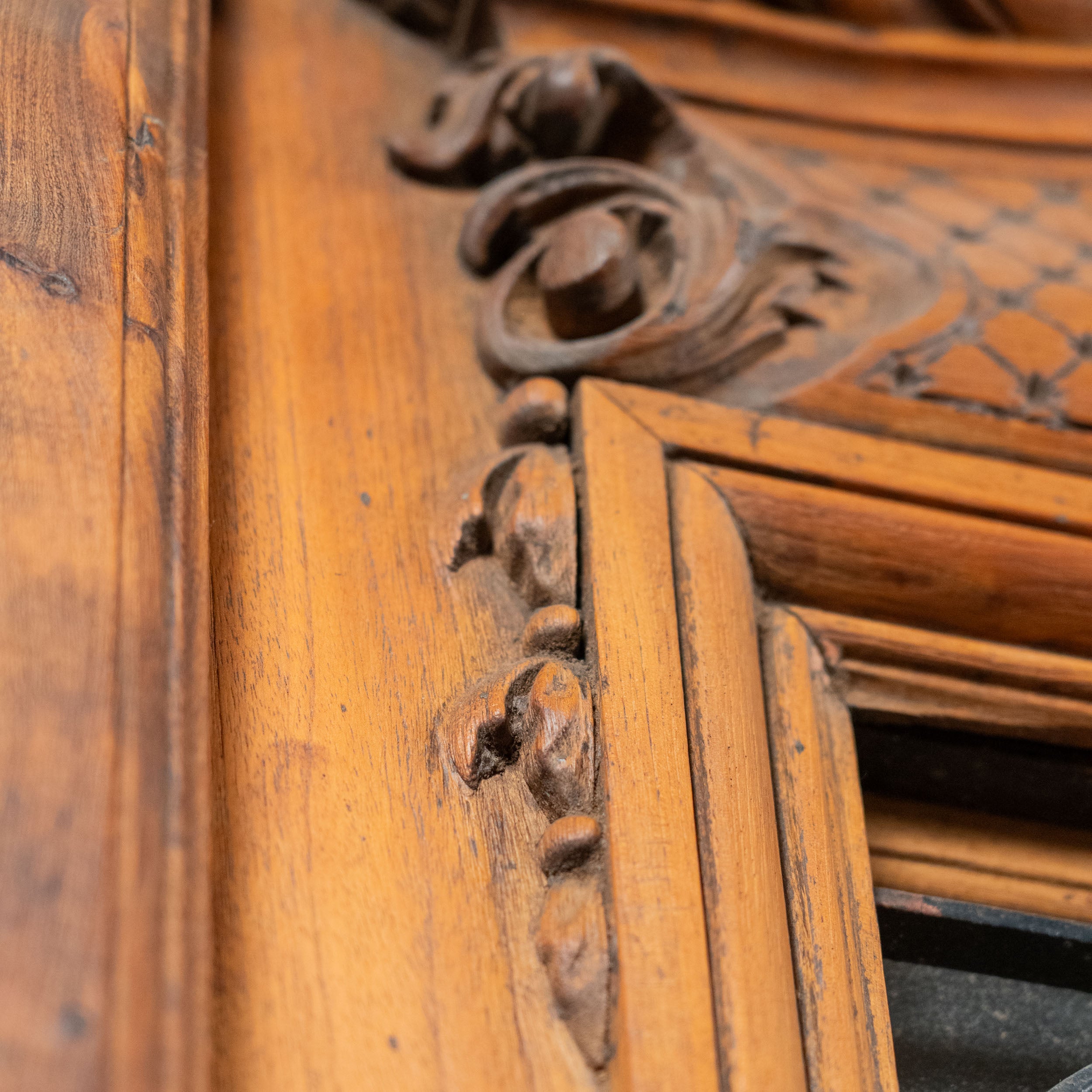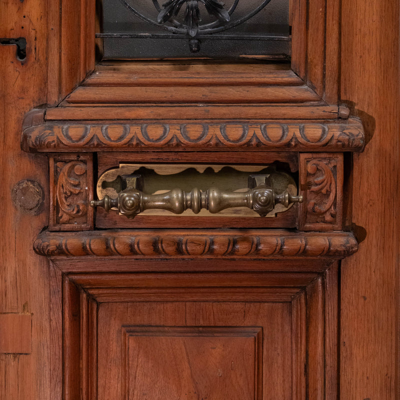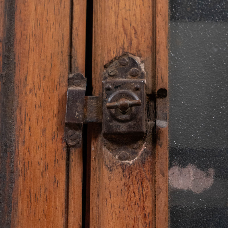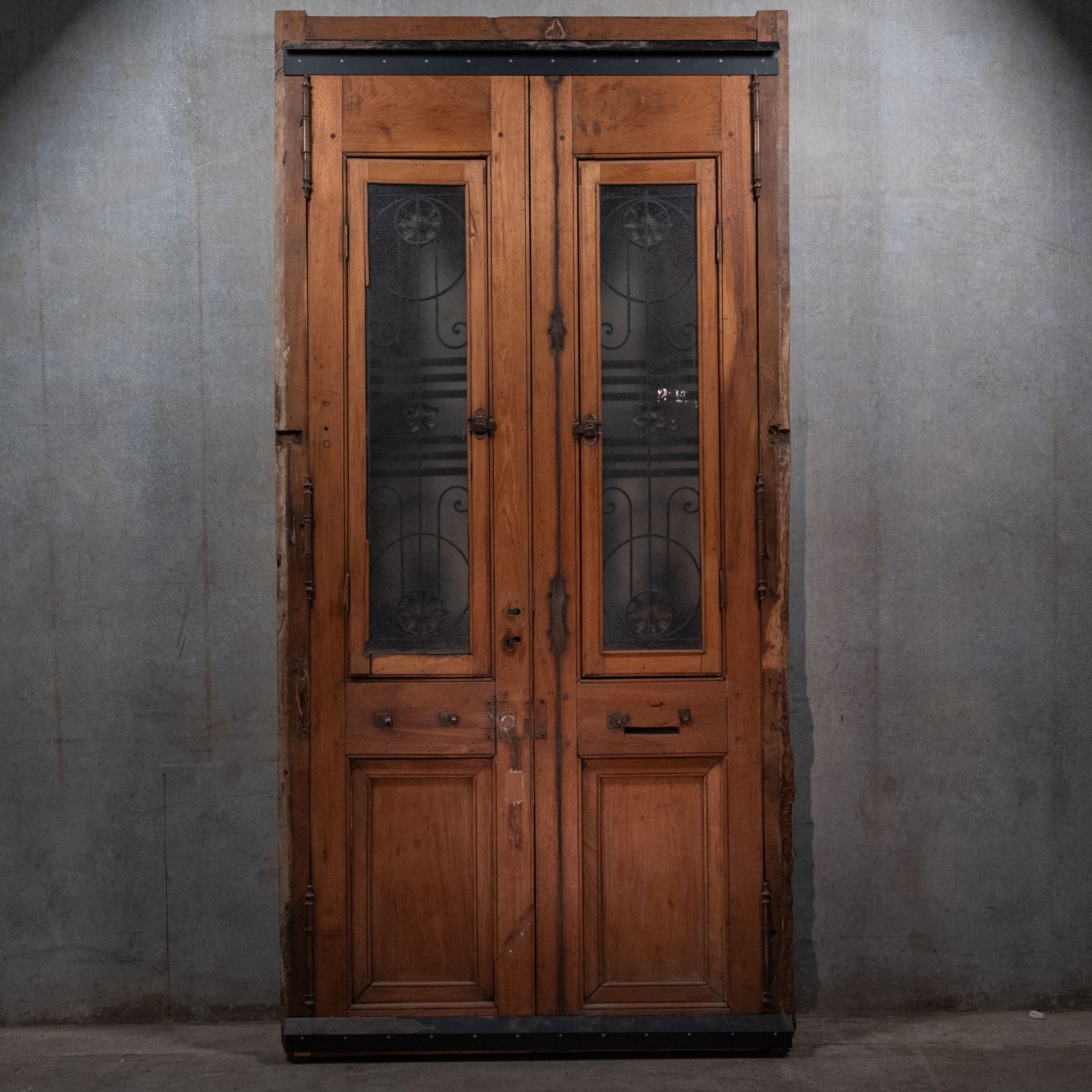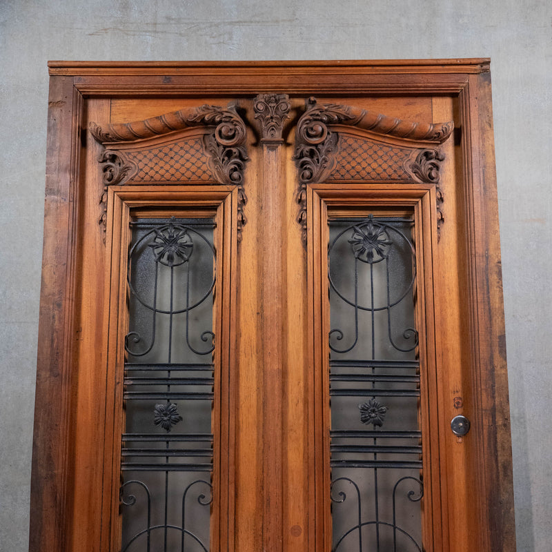 An incredible set of walnut manor or chateau doors from France. The doors rest in their original frame. Its carved details, opening window panes and original brass hinges are all in fantastic patina. A very rare find on Canadian soil.