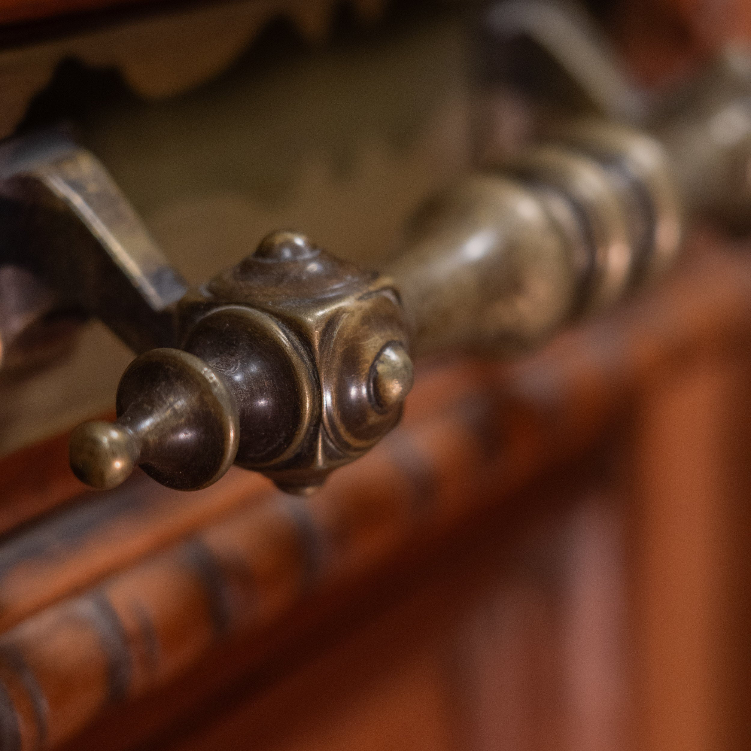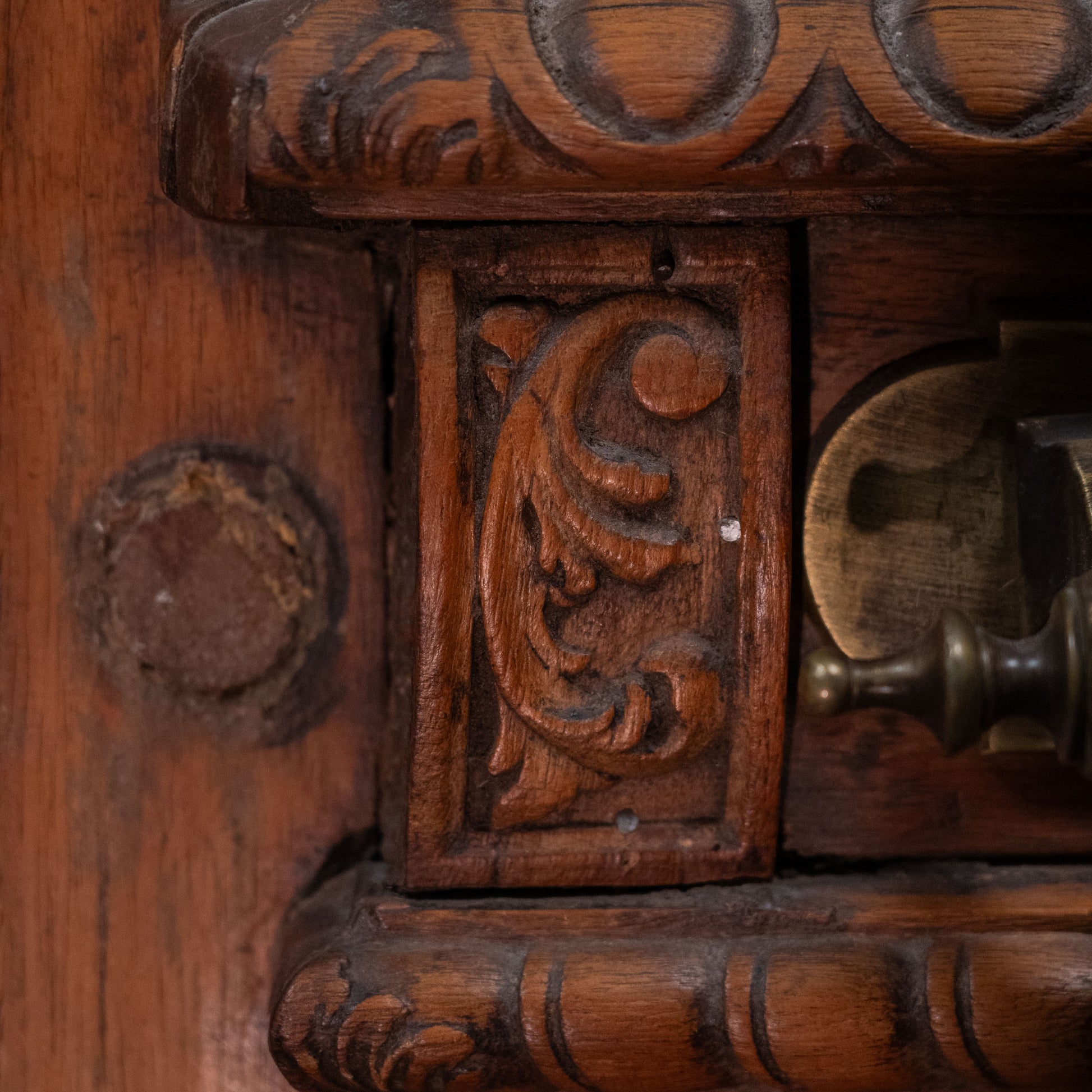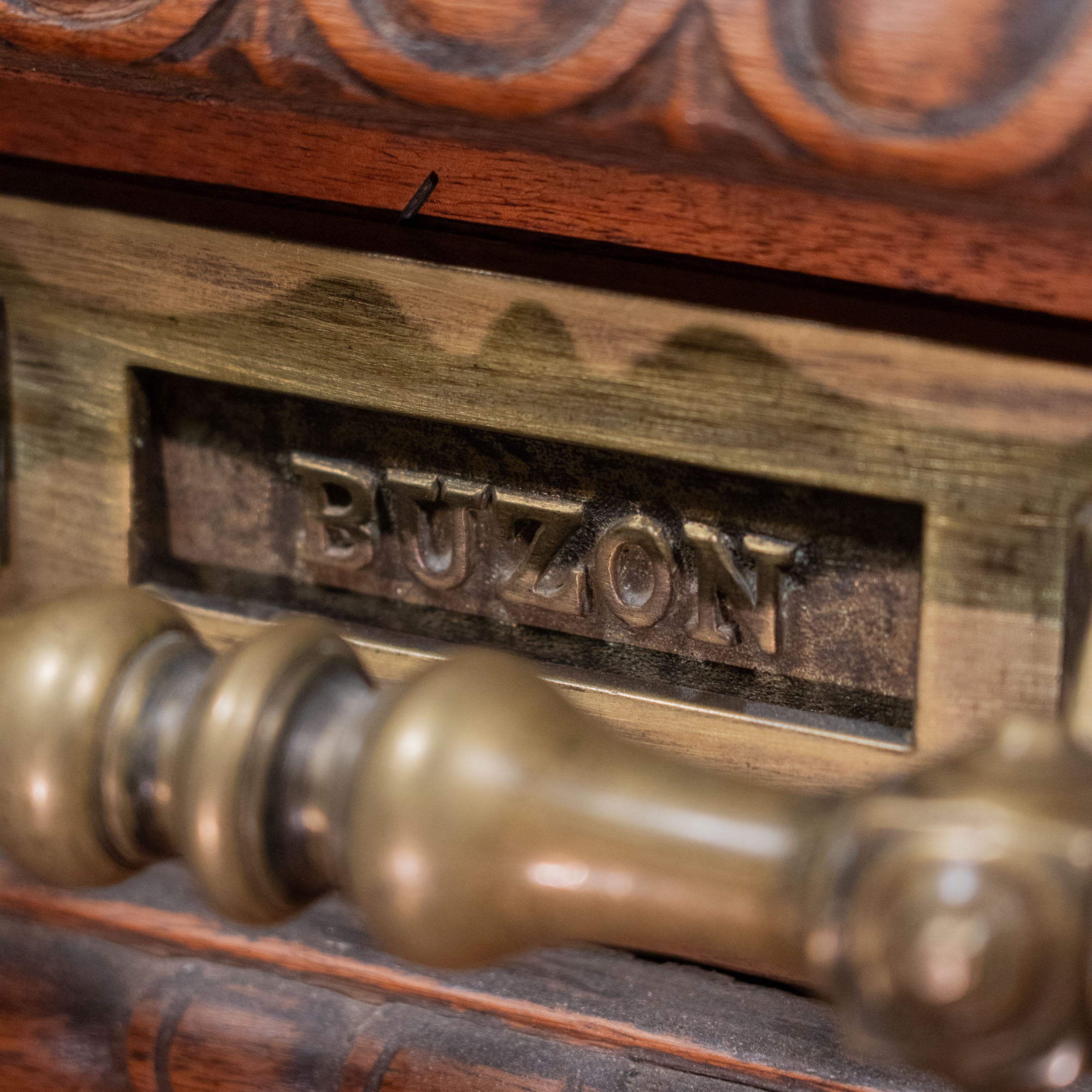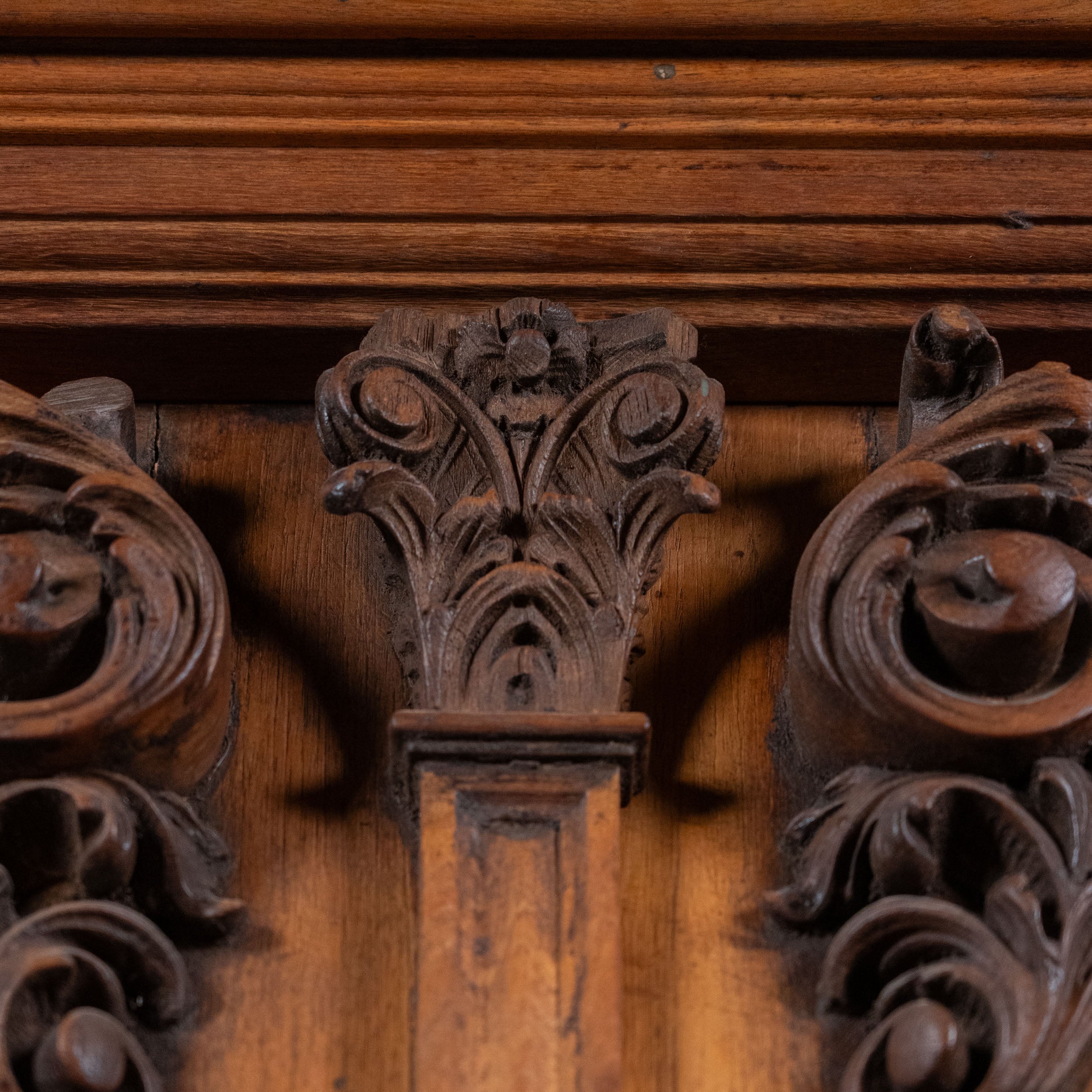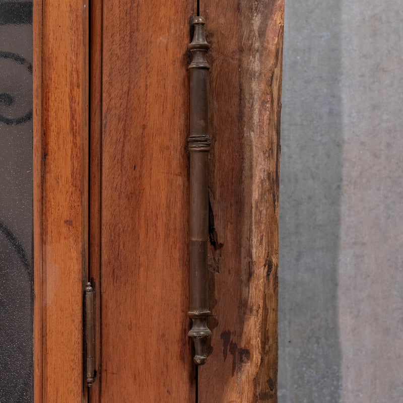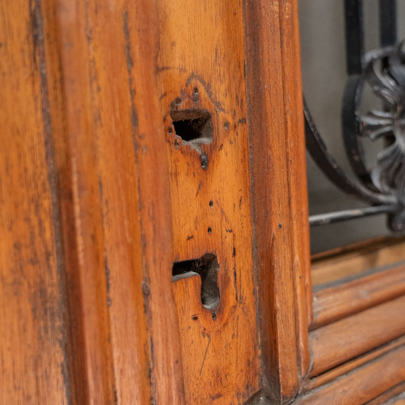 An incredible set of walnut manor or chateau doors from France. The doors rest in their original frame. Its carved details, opening window panes and original brass hinges are all in fantastic patina. A very rare find on Canadian soil.