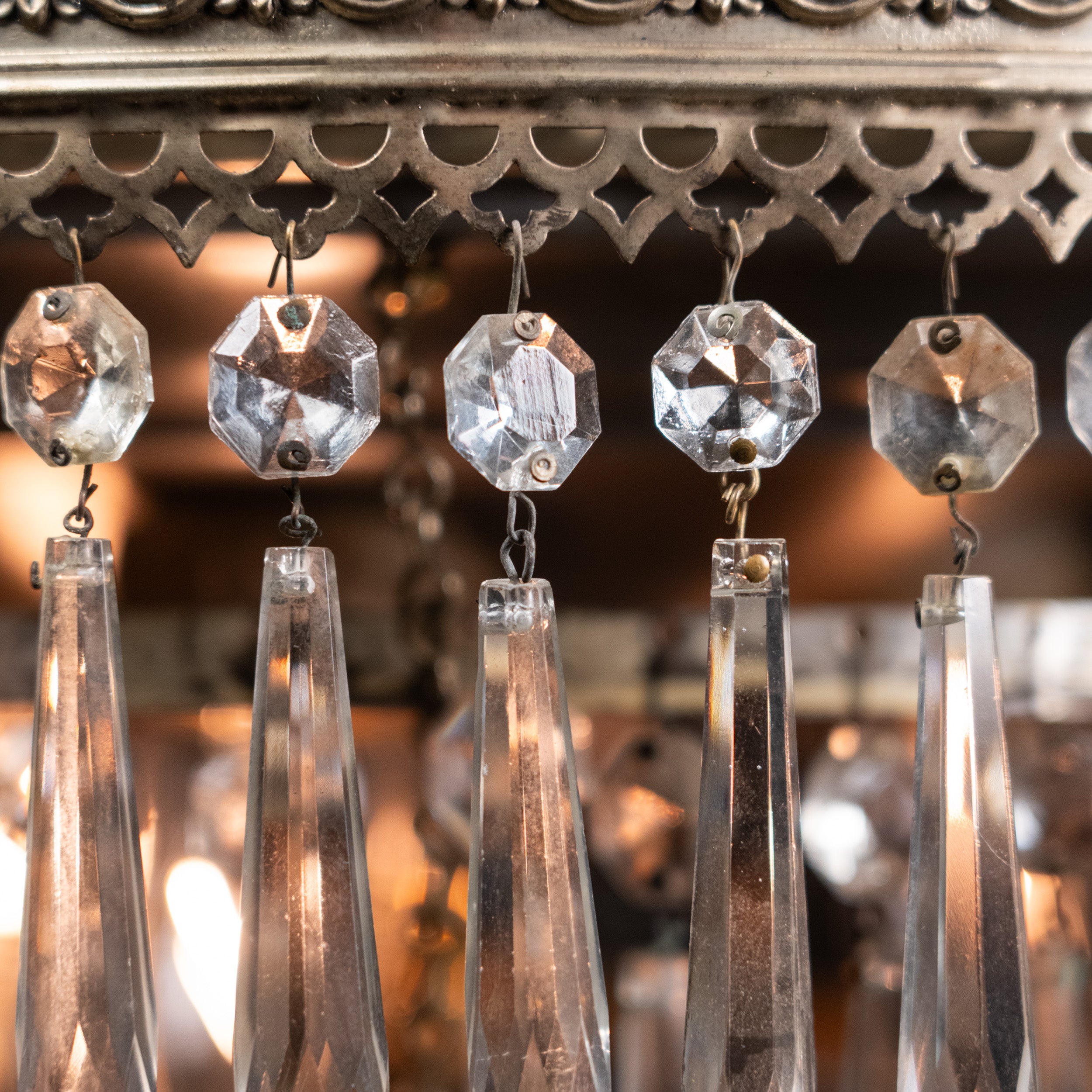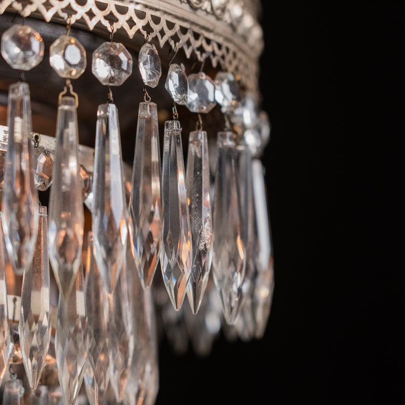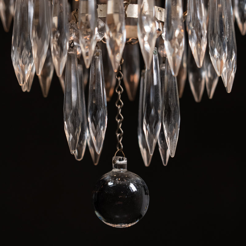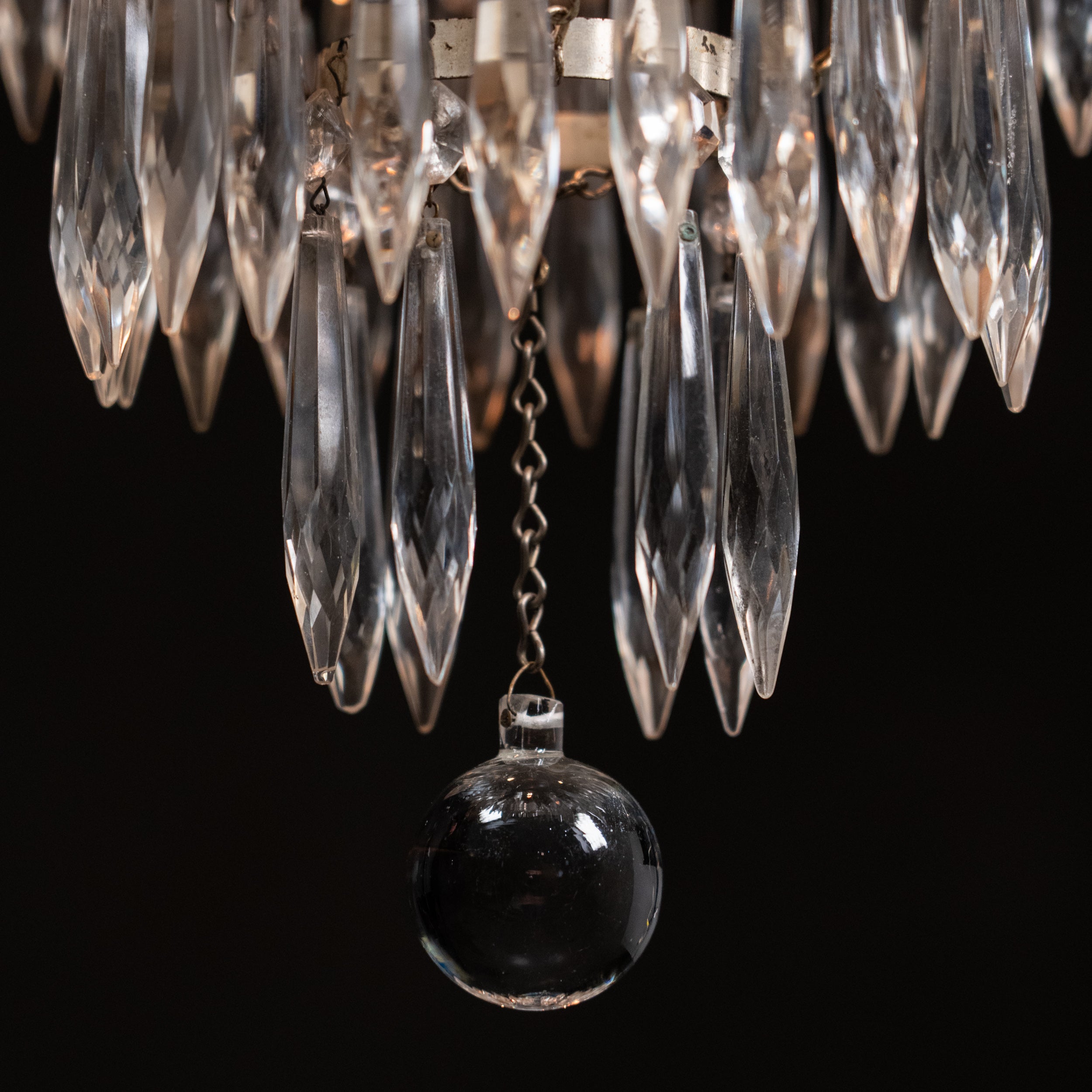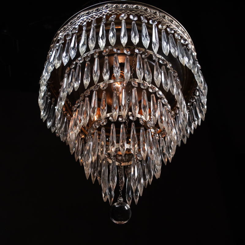 Vintage French Wedding Cake Crystal Basket Chandelier with Spear Prisms, Circa 1950 flush mount