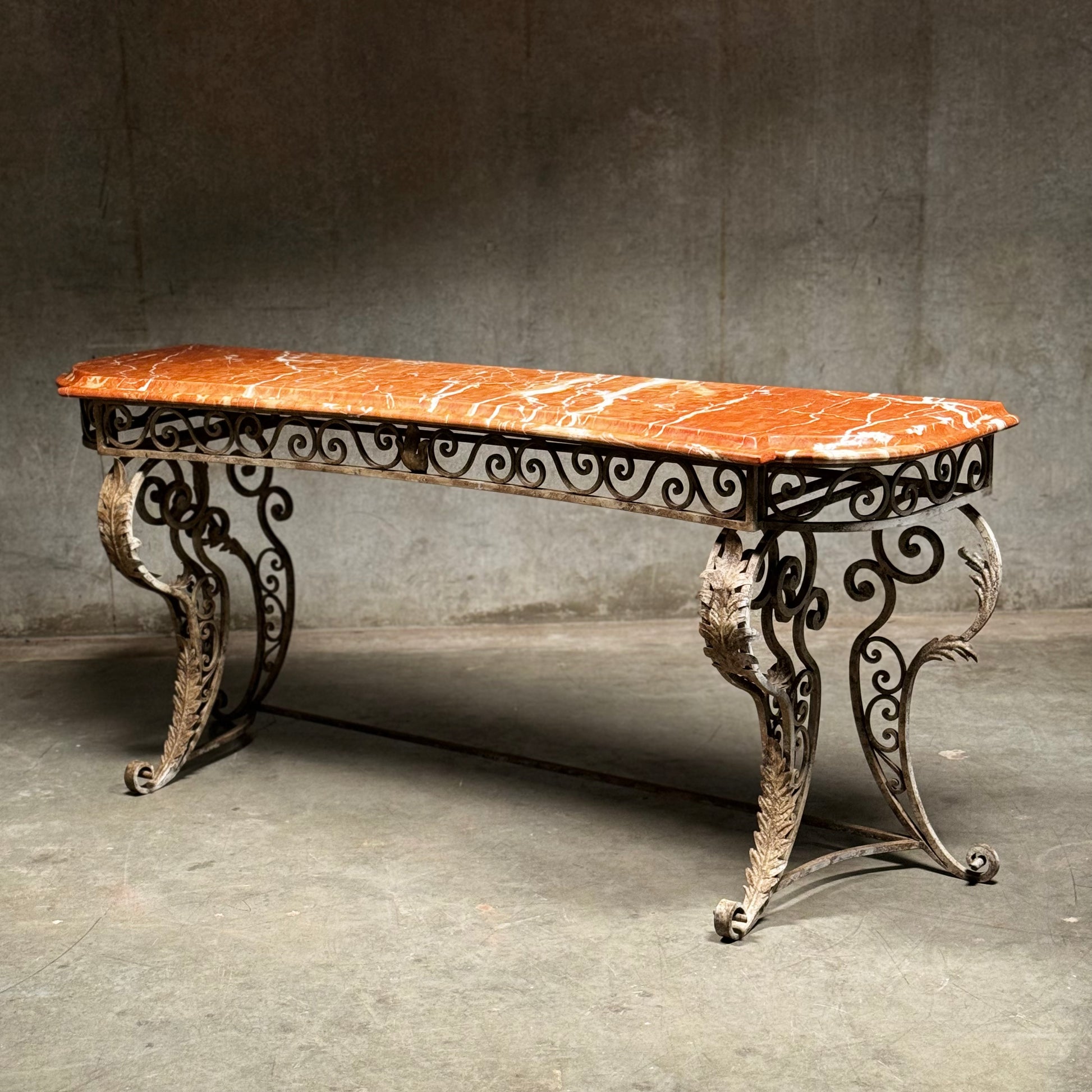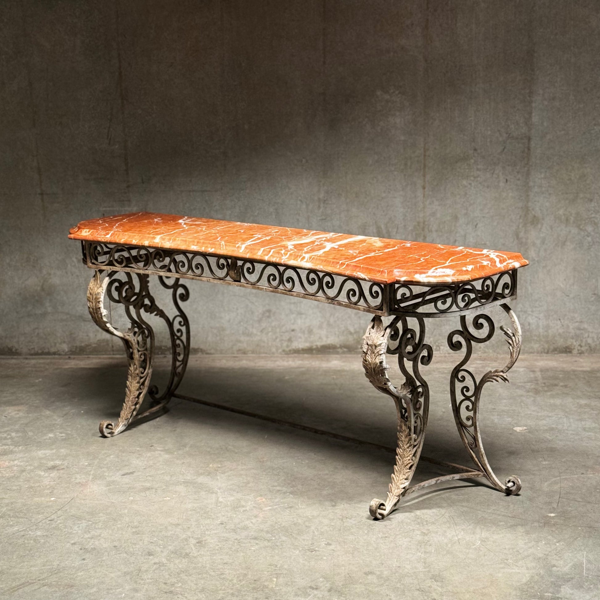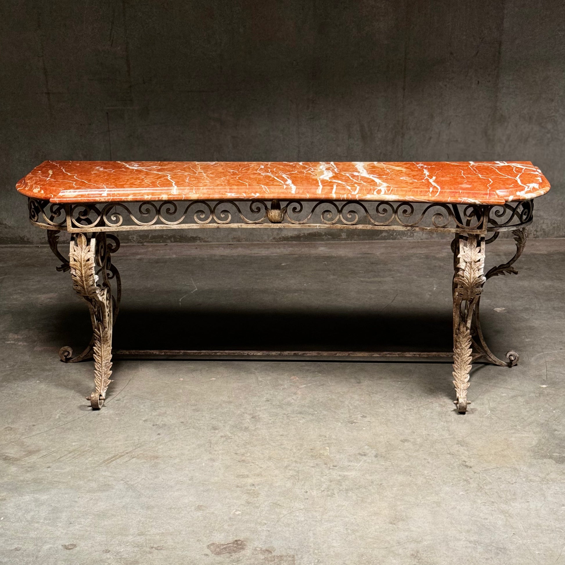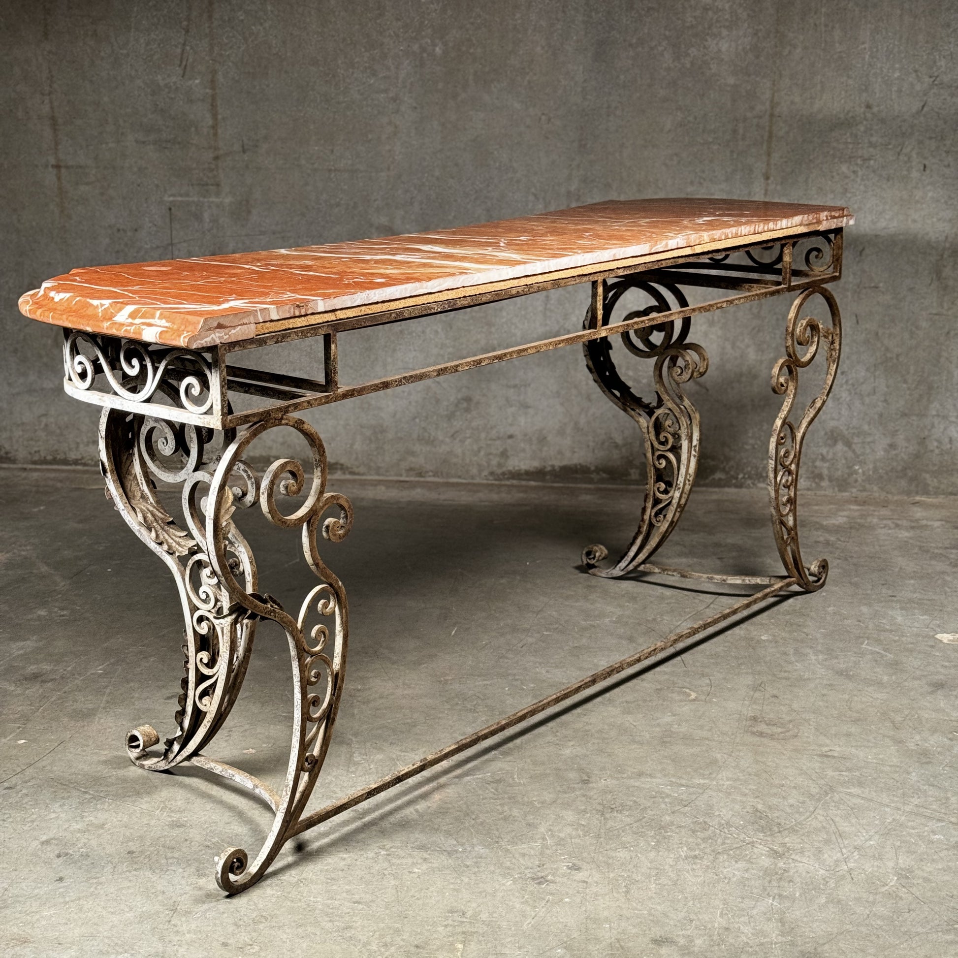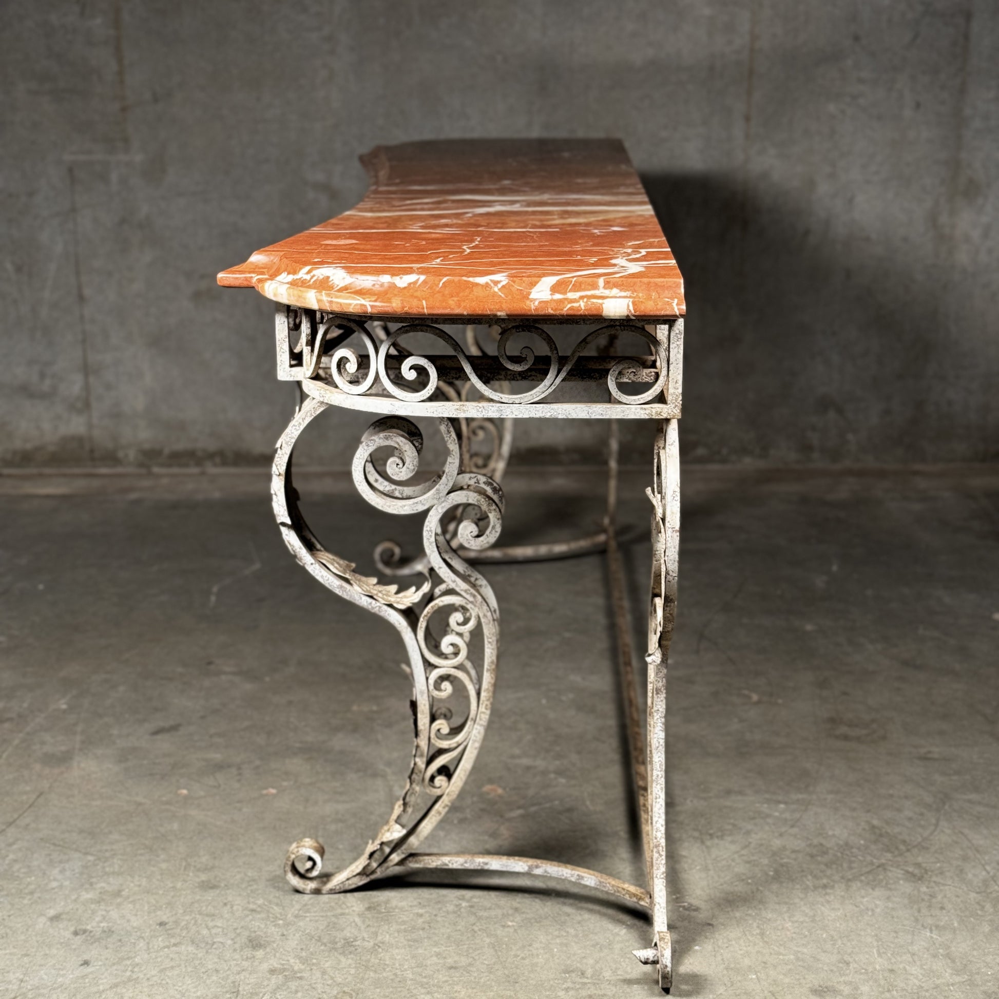 20th C French Marble Wrought Iron Console Table