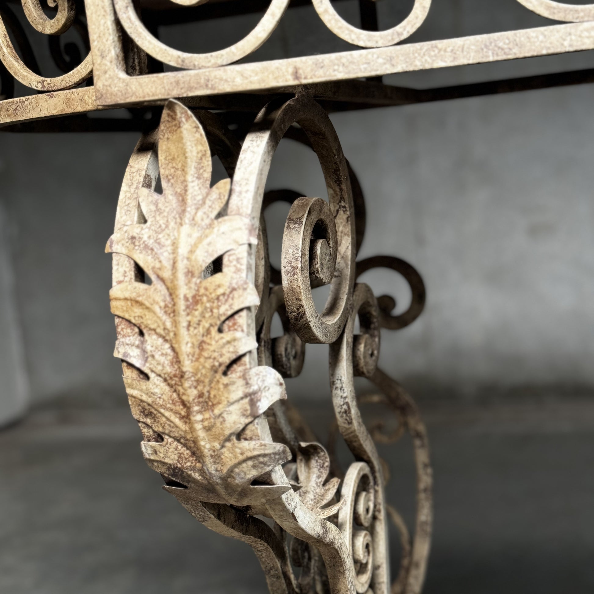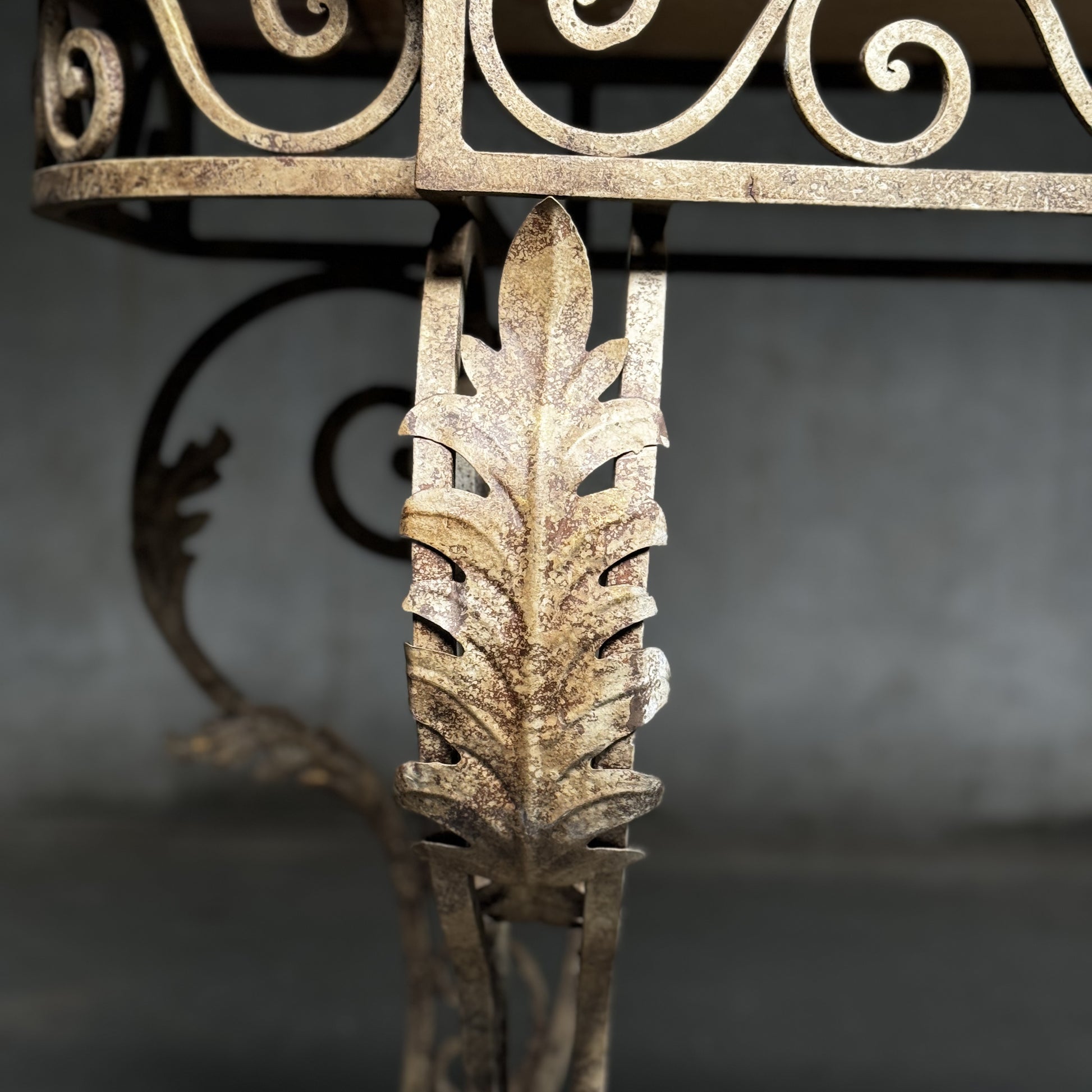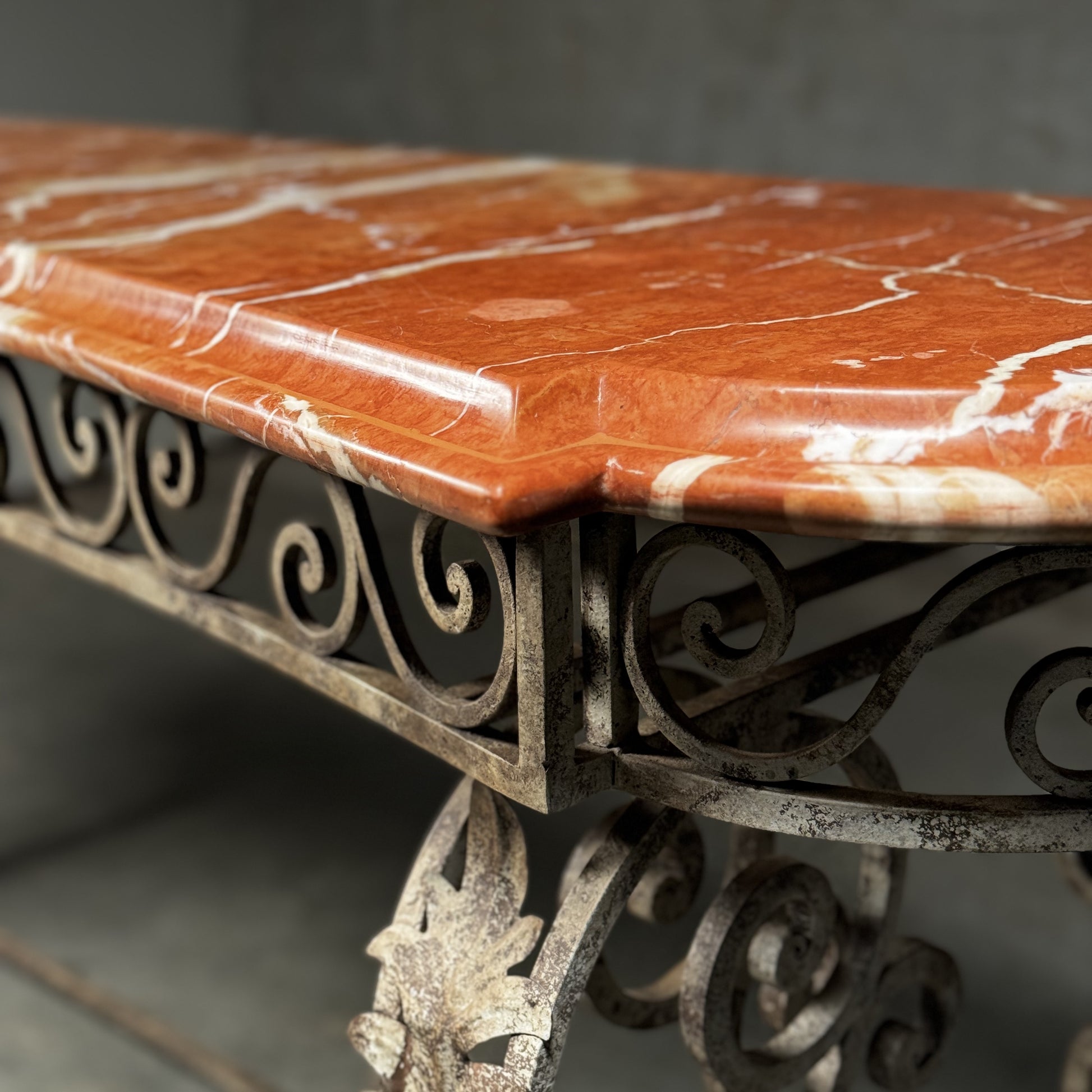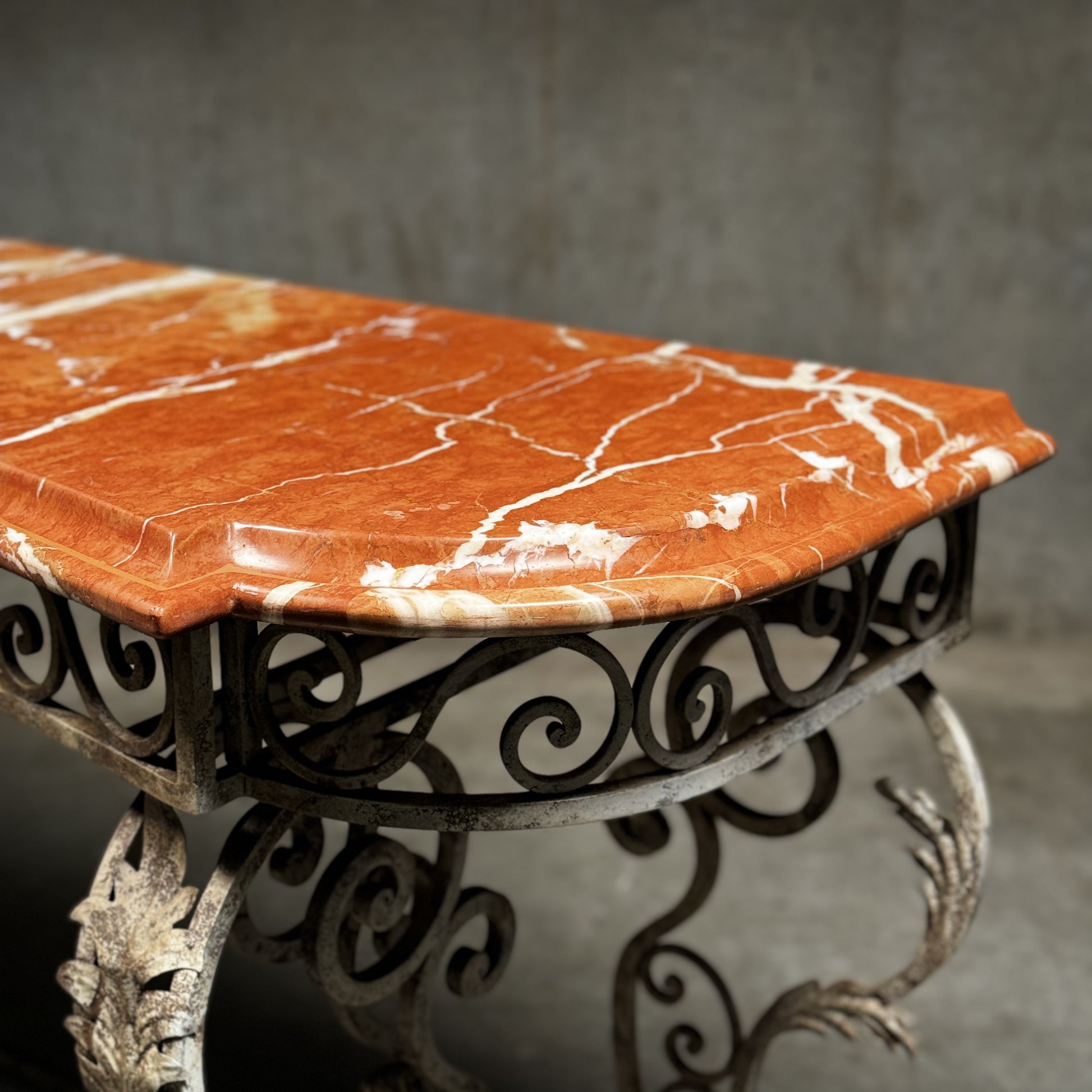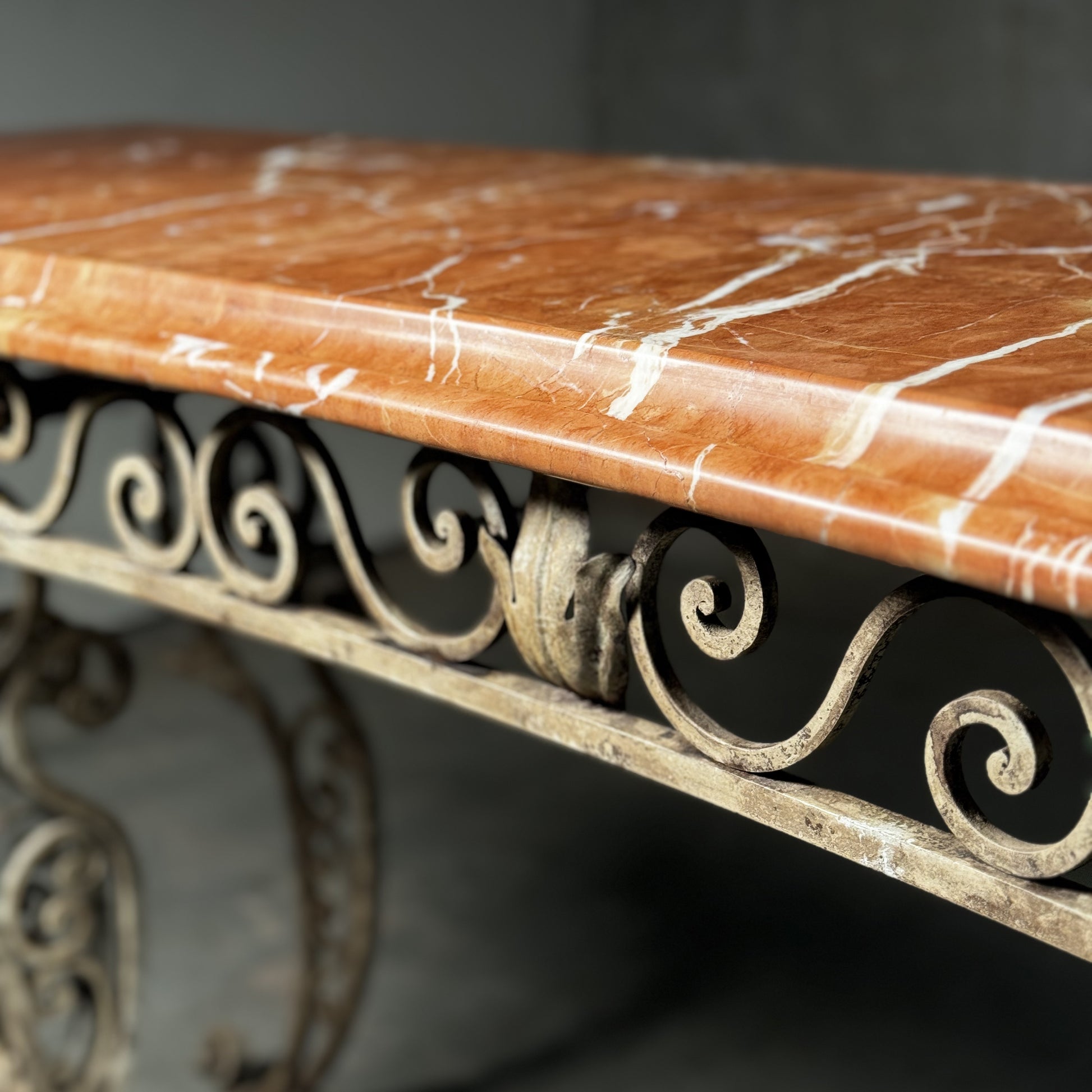 20th C French Marble Wrought Iron Console Table