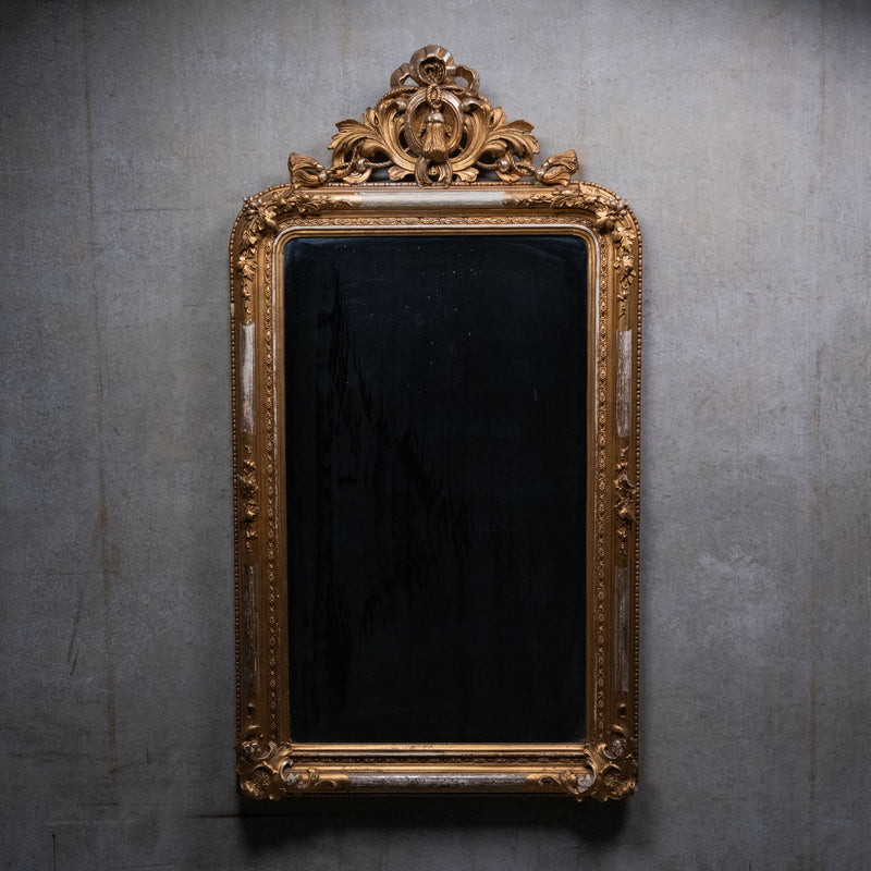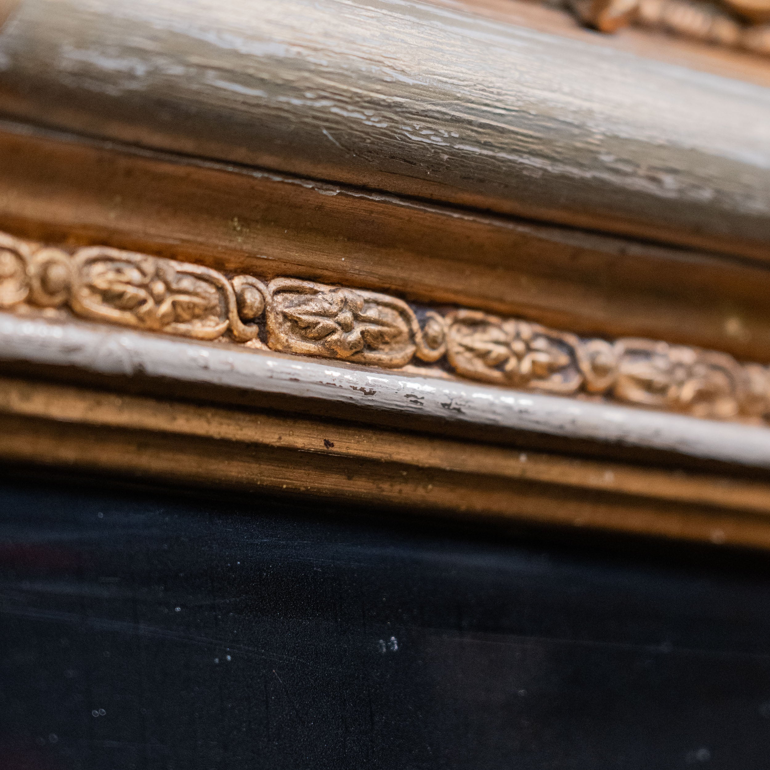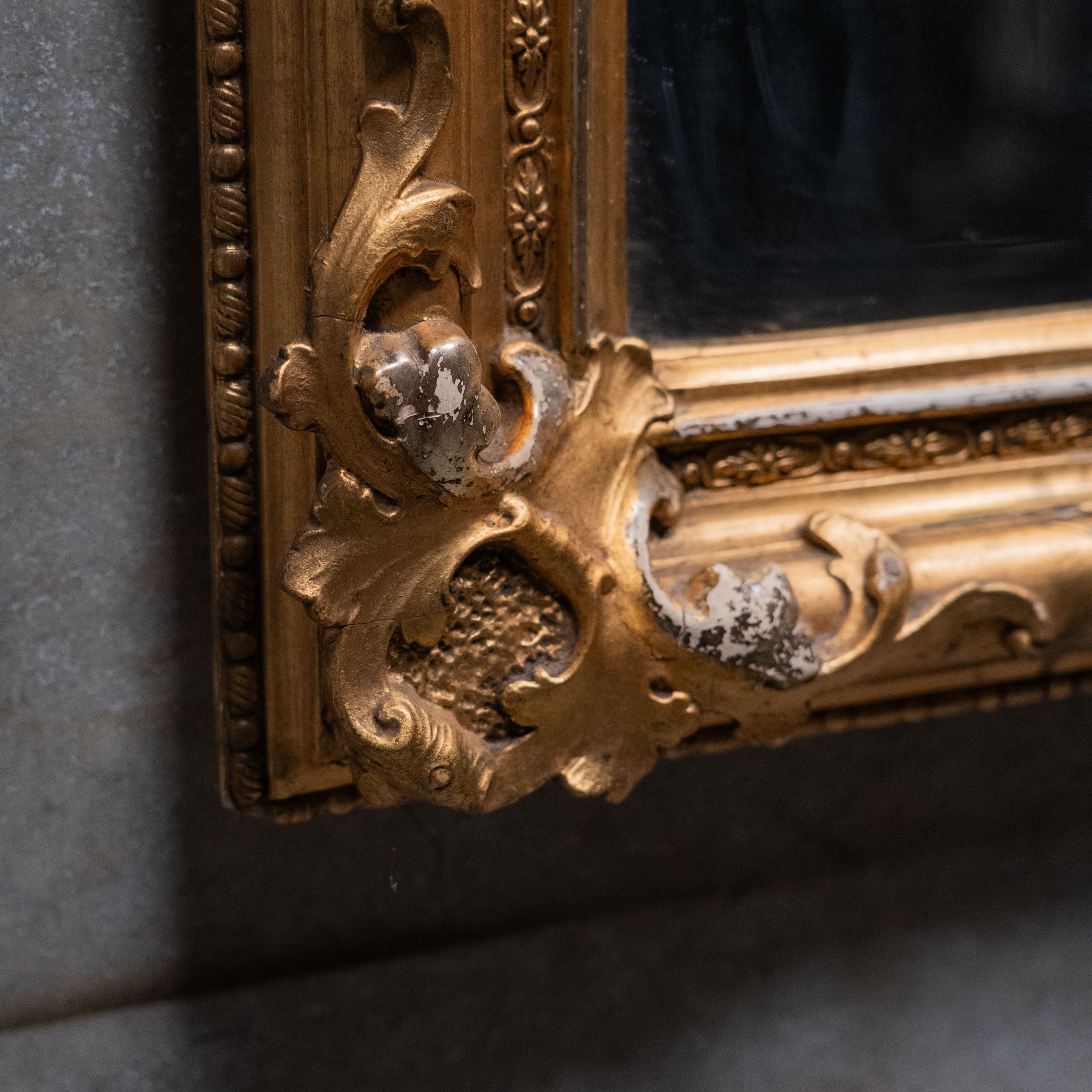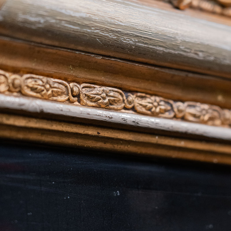 A beautiful two tone gilded mirror found in Italy. This carved example has its original bevelled mirror and solid gold and silver gild.