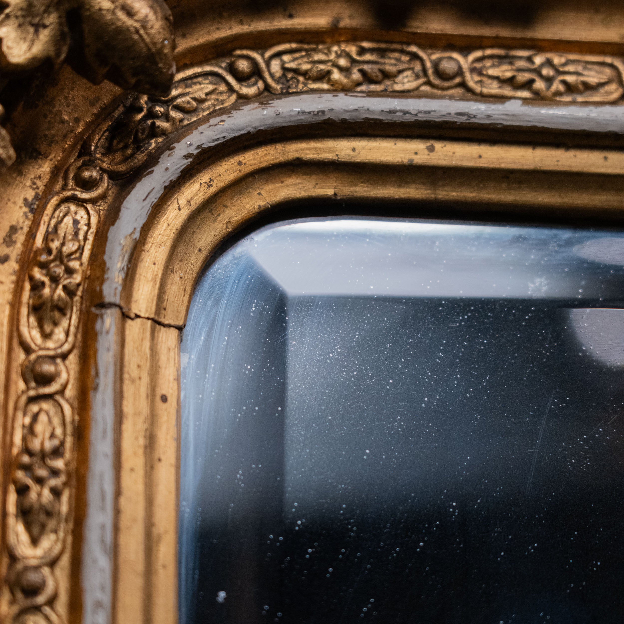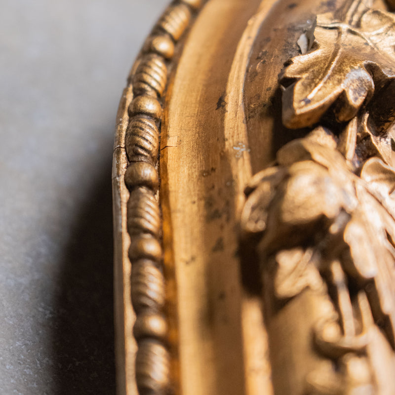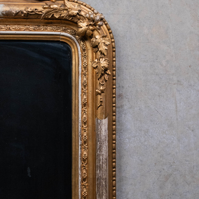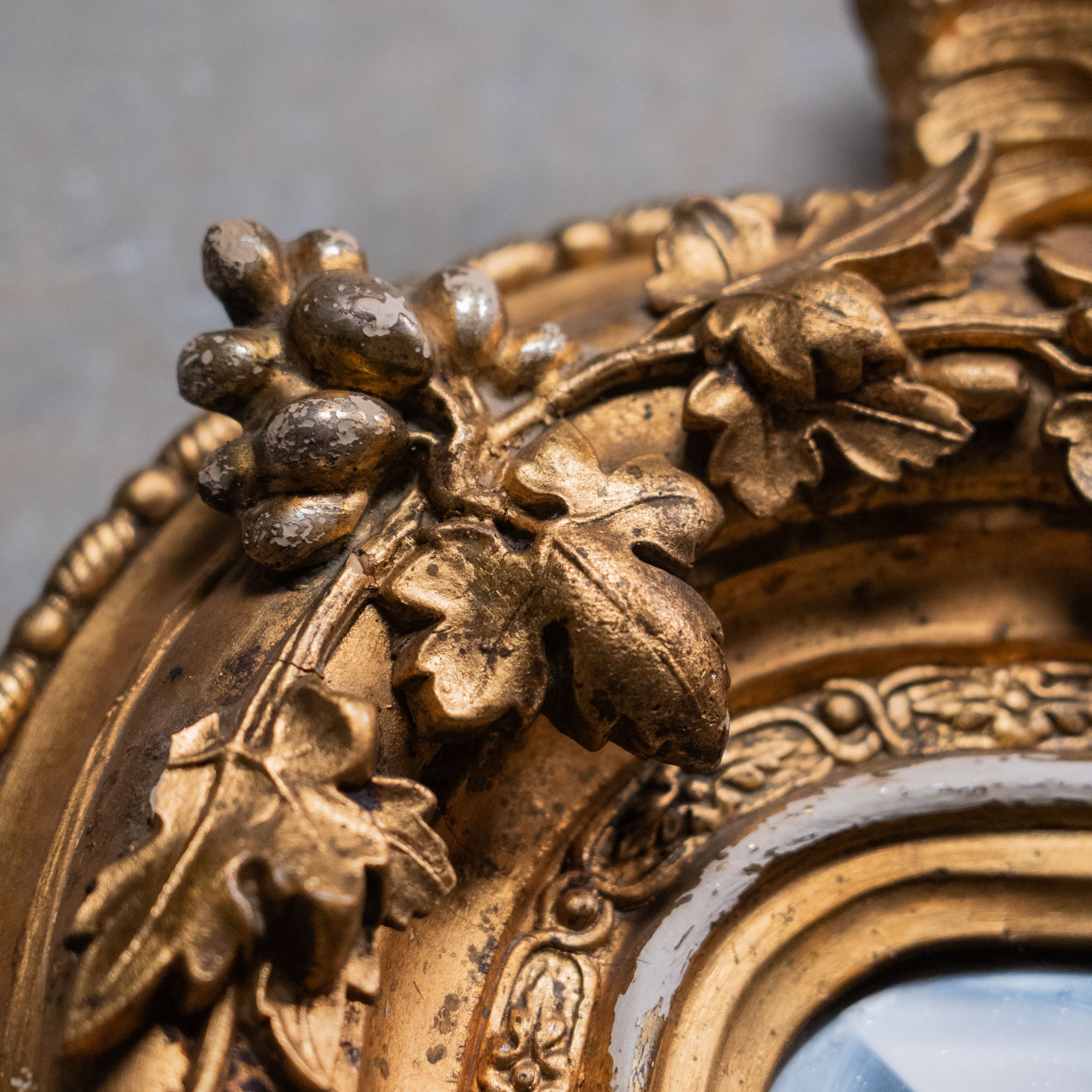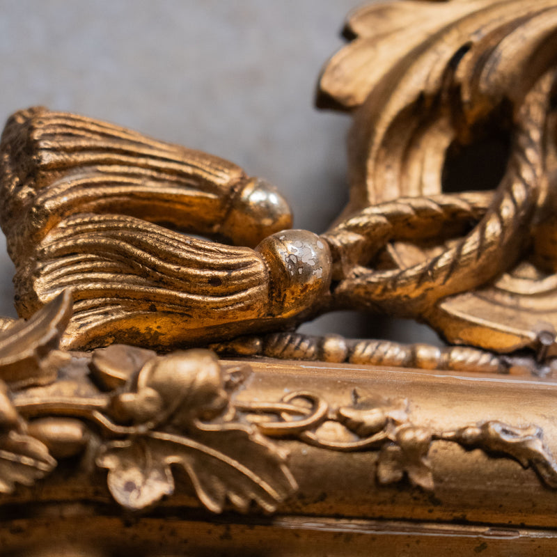 A beautiful two tone gilded mirror found in Italy. This carved example has its original bevelled mirror and solid gold and silver gild.