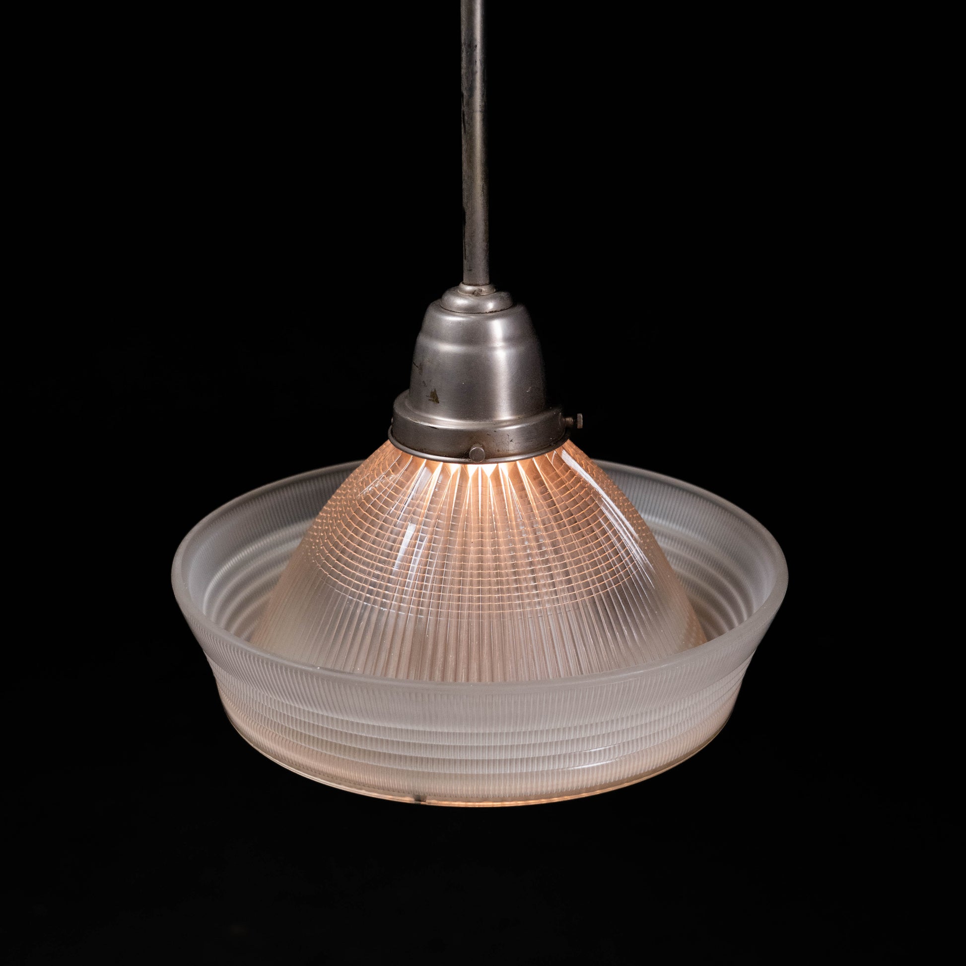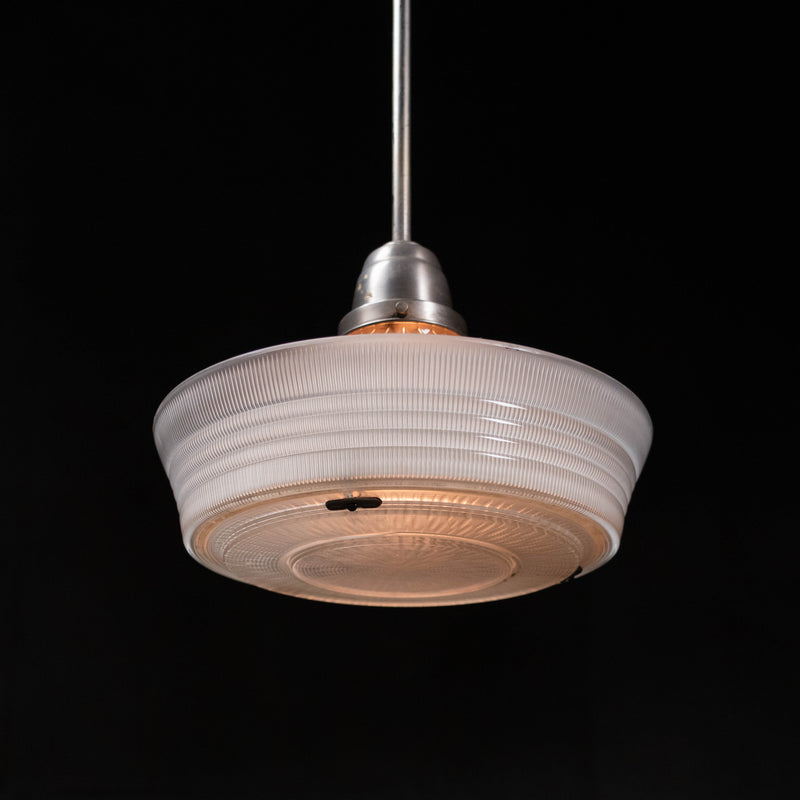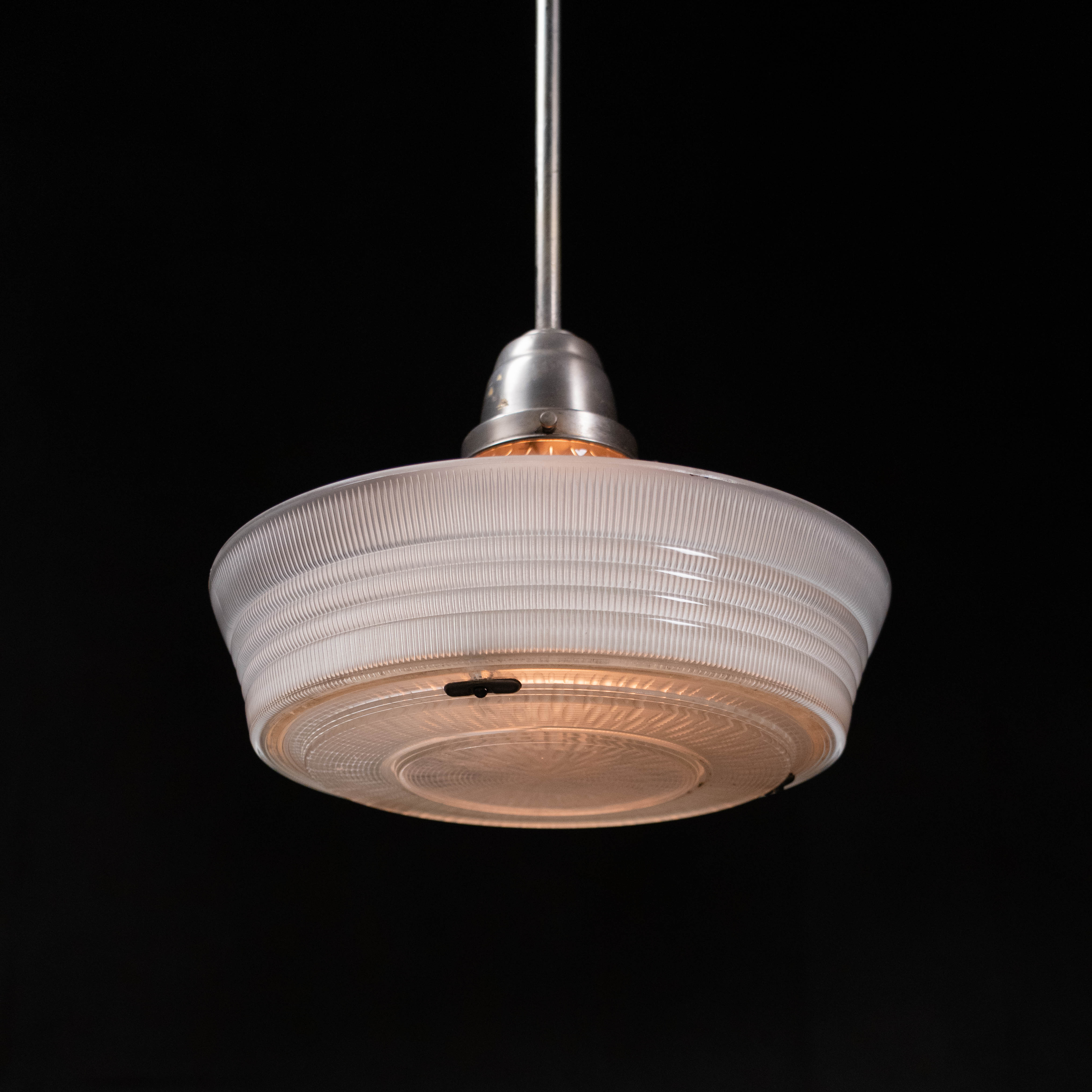 Vintage Holophane-Style Prismatic Glass Pendant Light – Two-Part Industrial Refractor