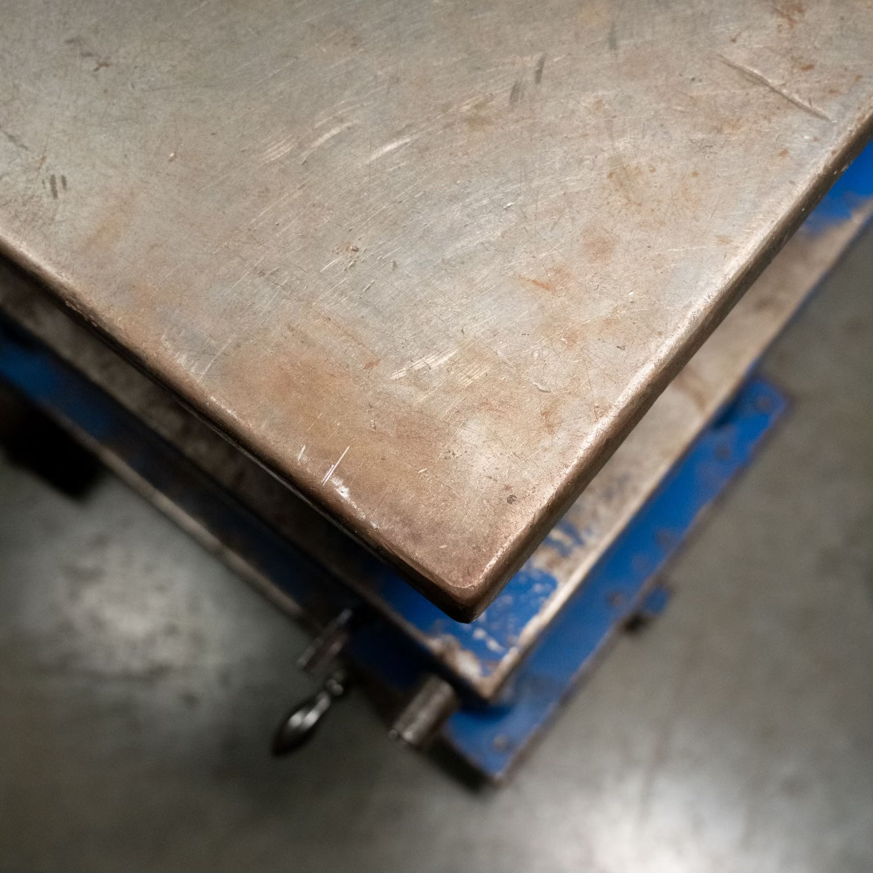 Salvaged from a factory in CHICAGO, this is a solid steel adjustable height crank table by Hamilton industries OHIO.
