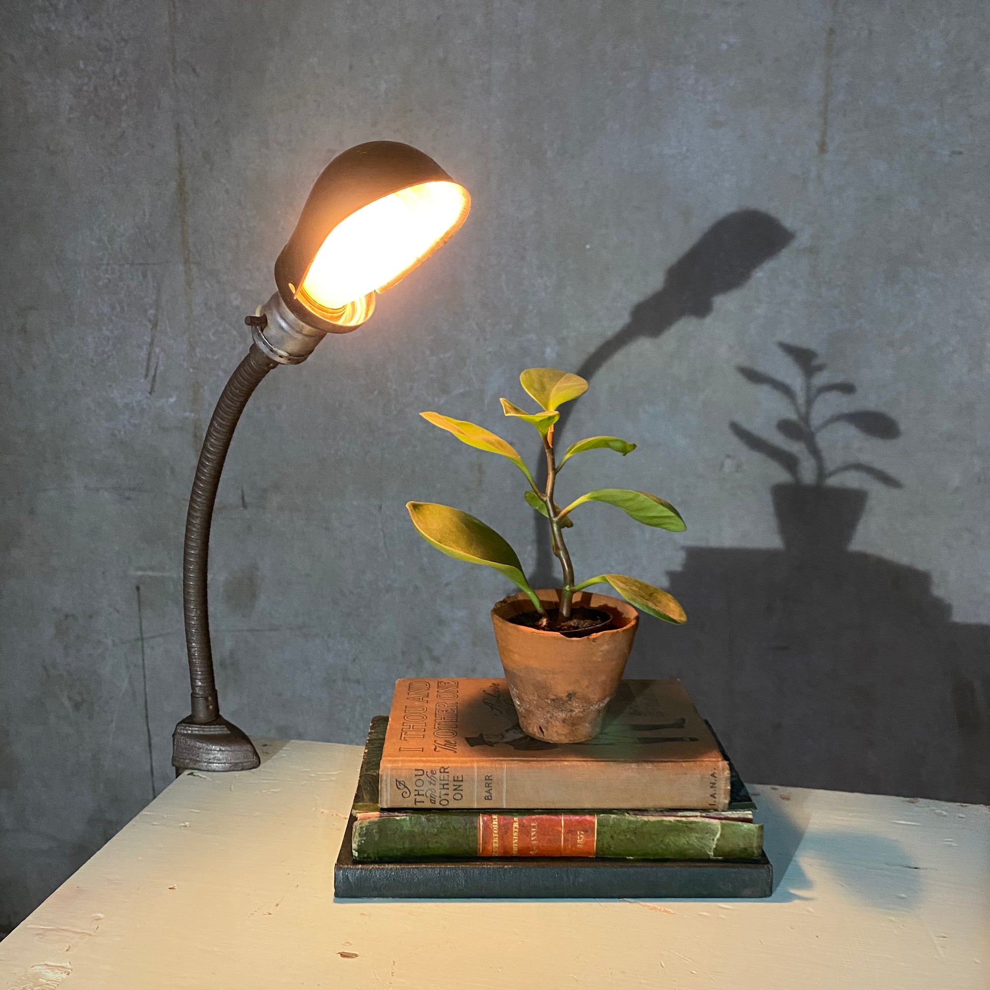 Deco style clip on light with movable coiled arm for light direction. Rewired and tested