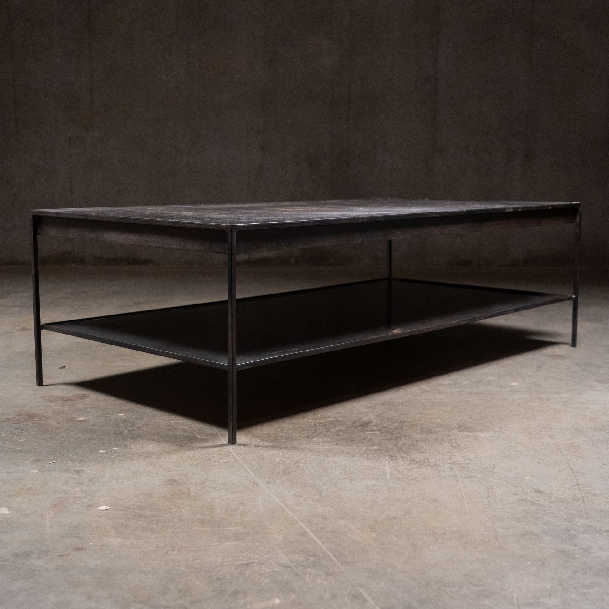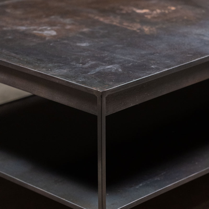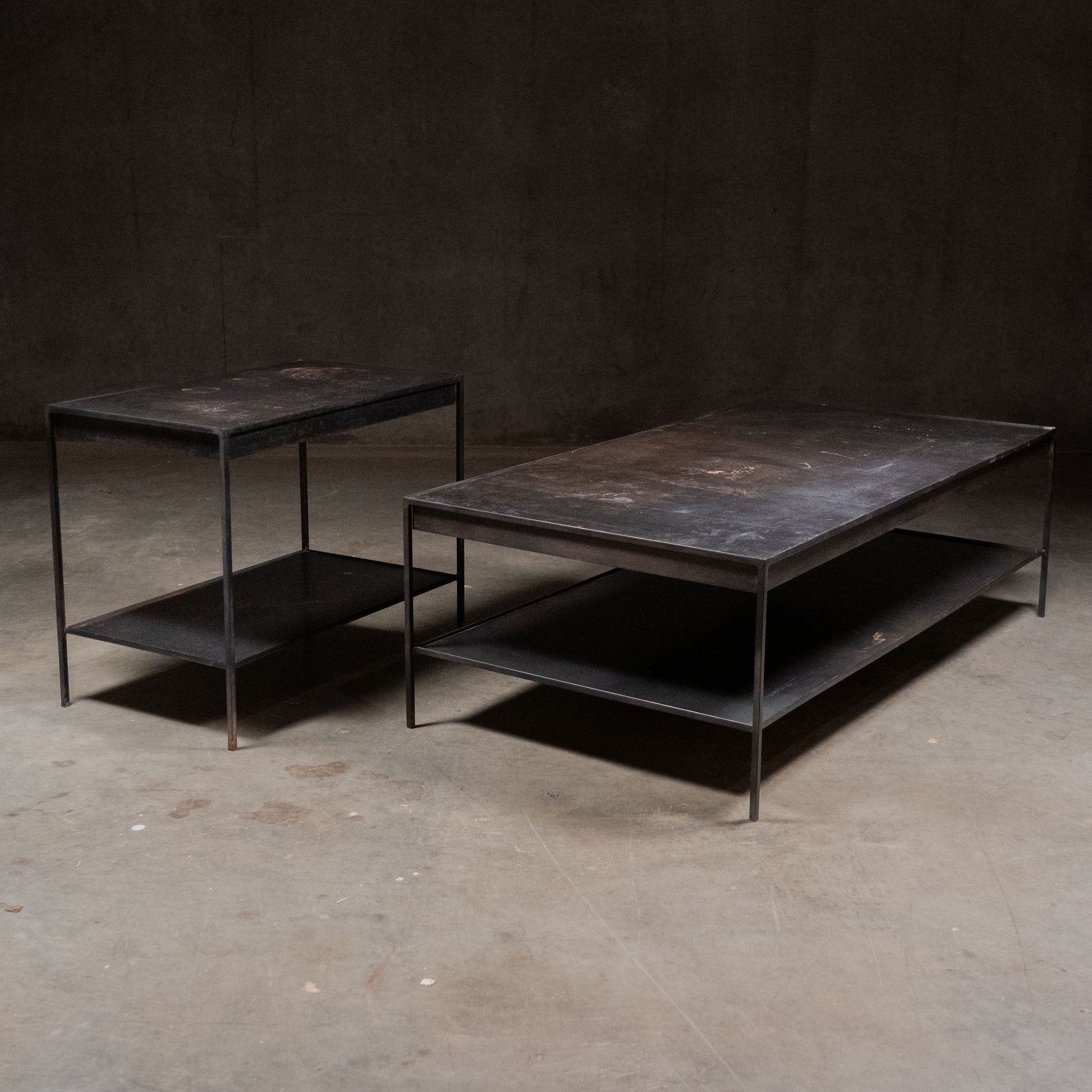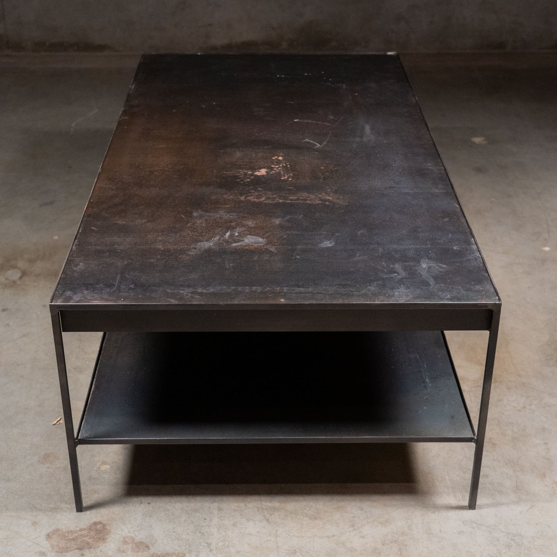 A fine bespoke one of a kind hand made sleek all steel table. We are currently working on blackened finish to remove any stain in the steel.