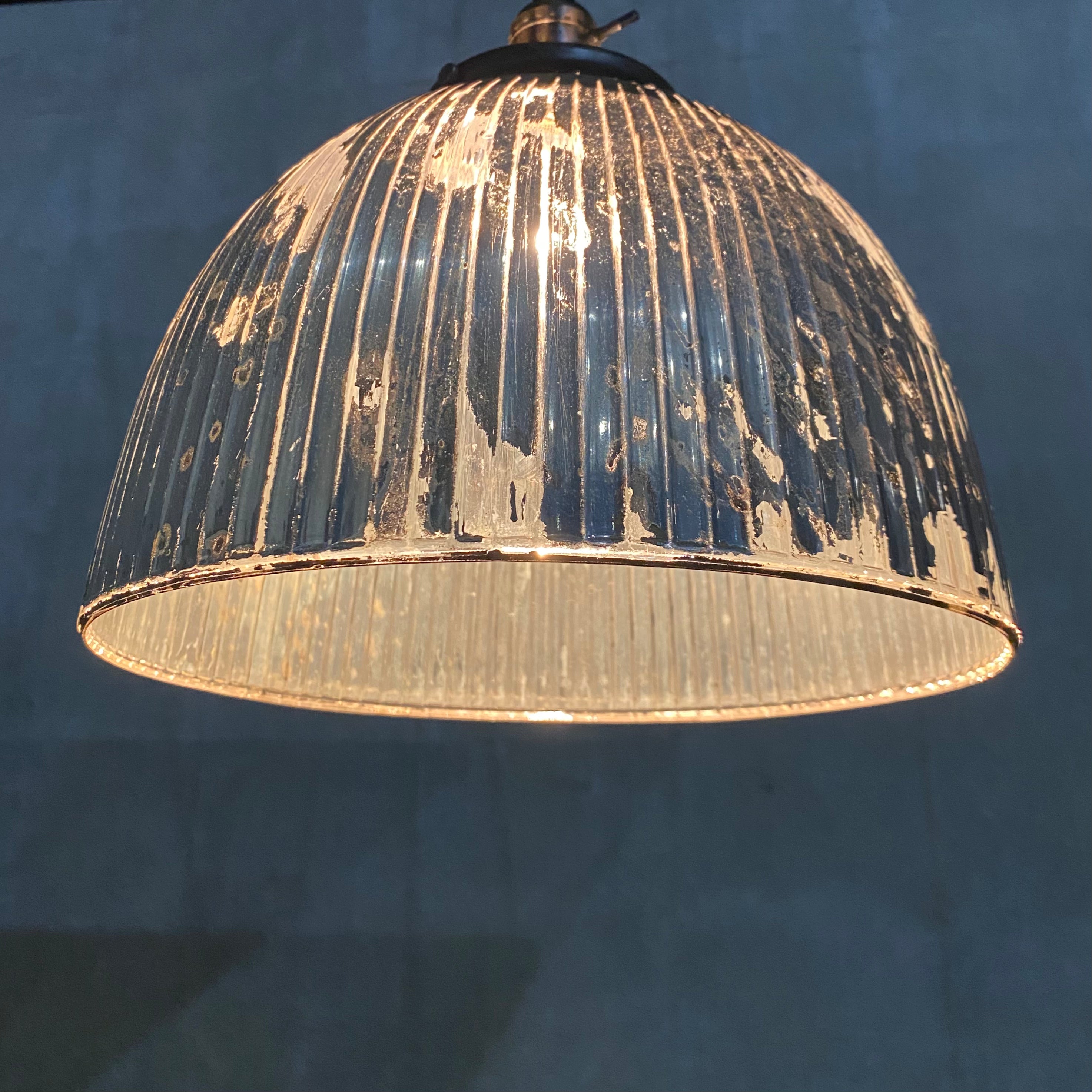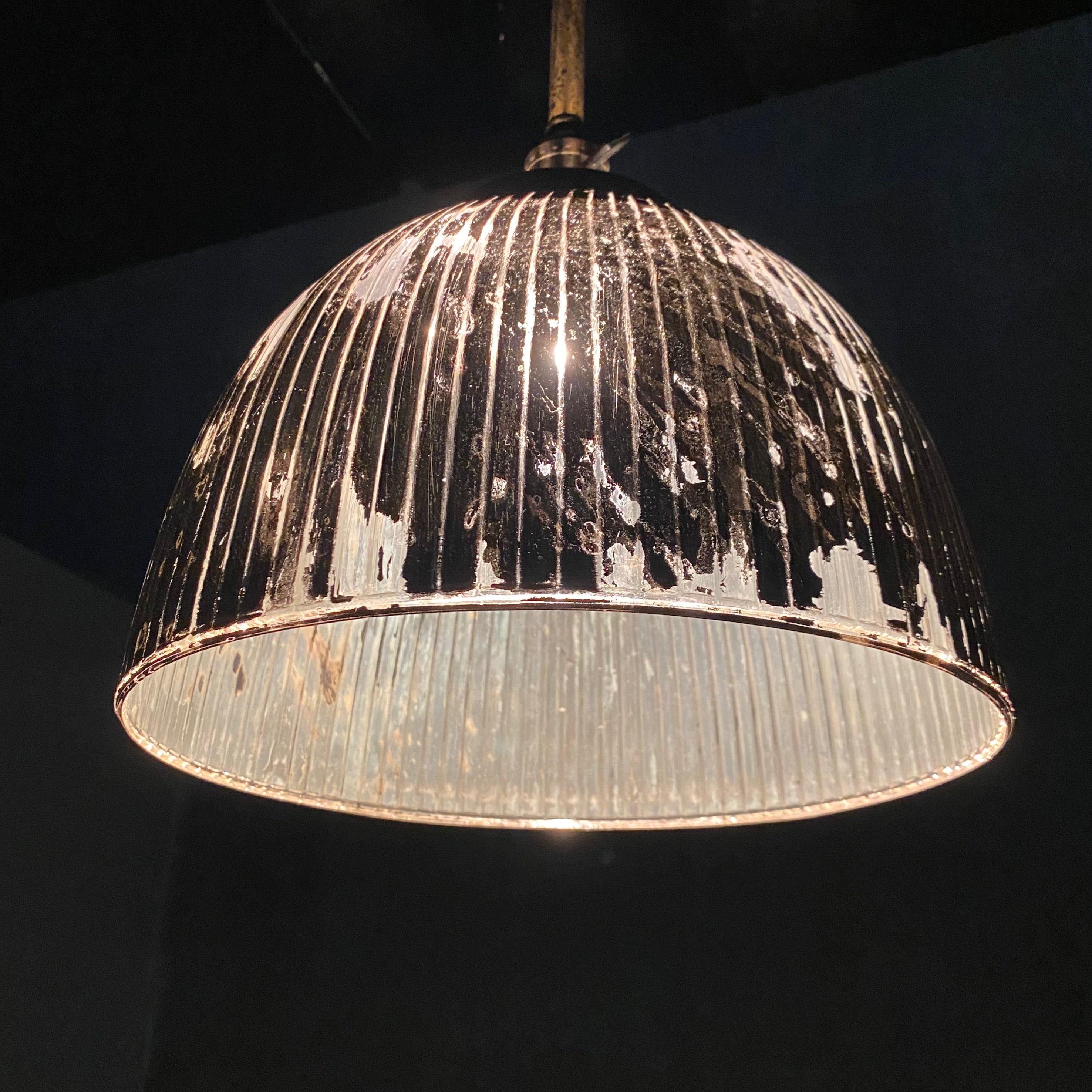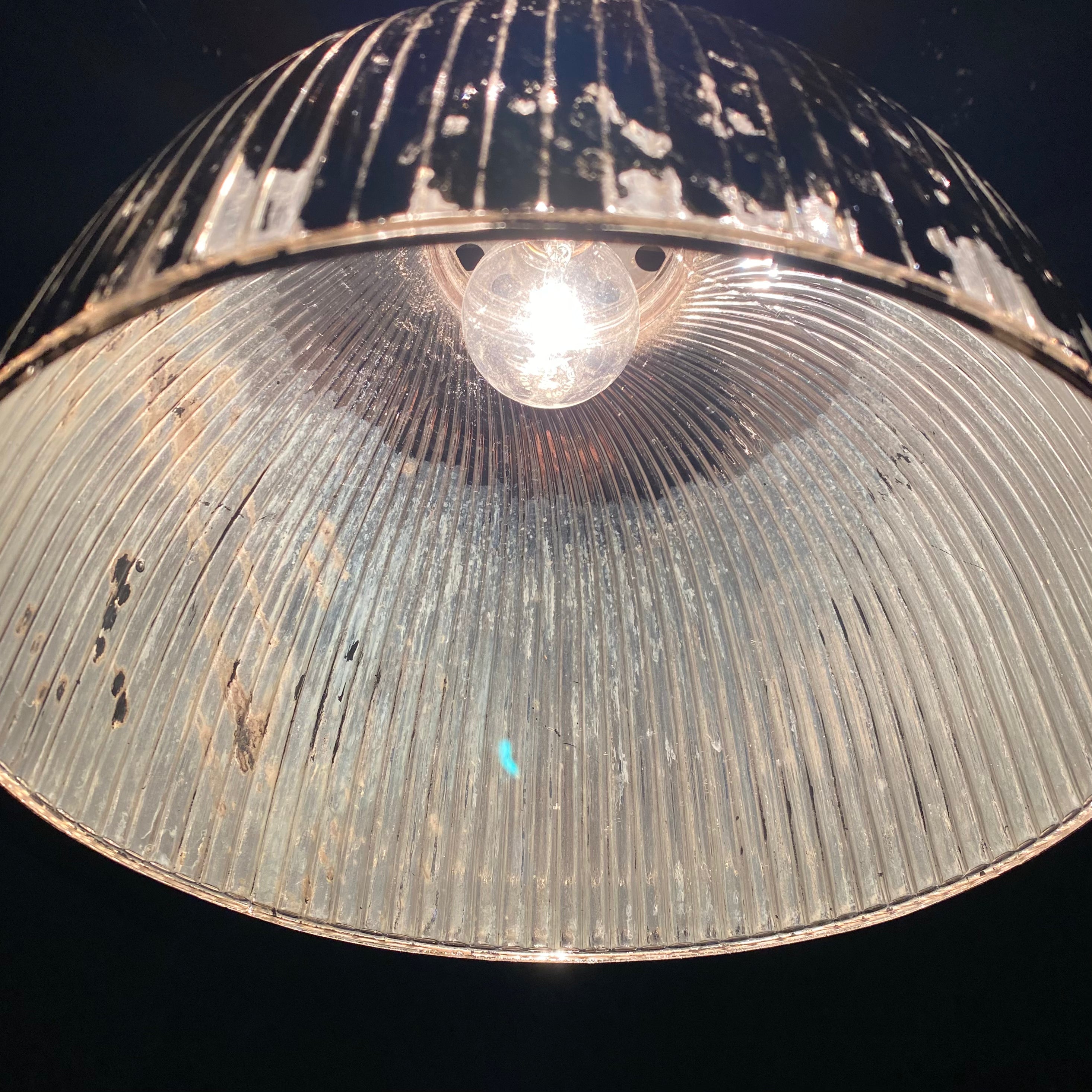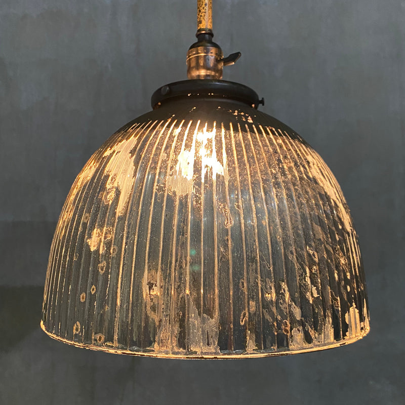 This is a rare large light on brass fitter and stem . The first examples of industrial lighting created at the turn of the century.by CURTIS REFLECTOR CO.