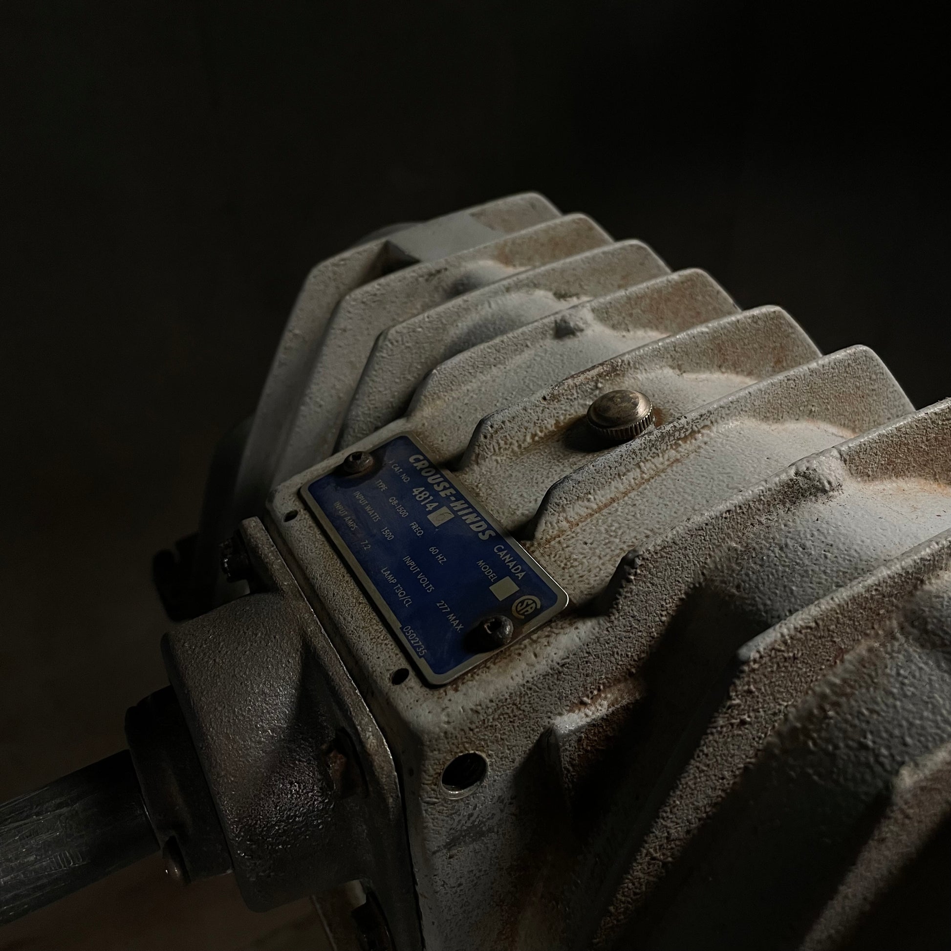 A group of fixtures by Crouse hinds salvaged from a crane on the Vancouver docks. We have retrofitted these to accept a simple light with easy mounting capabilities for wall sconces for uplight or down light … we have 10 in stock.