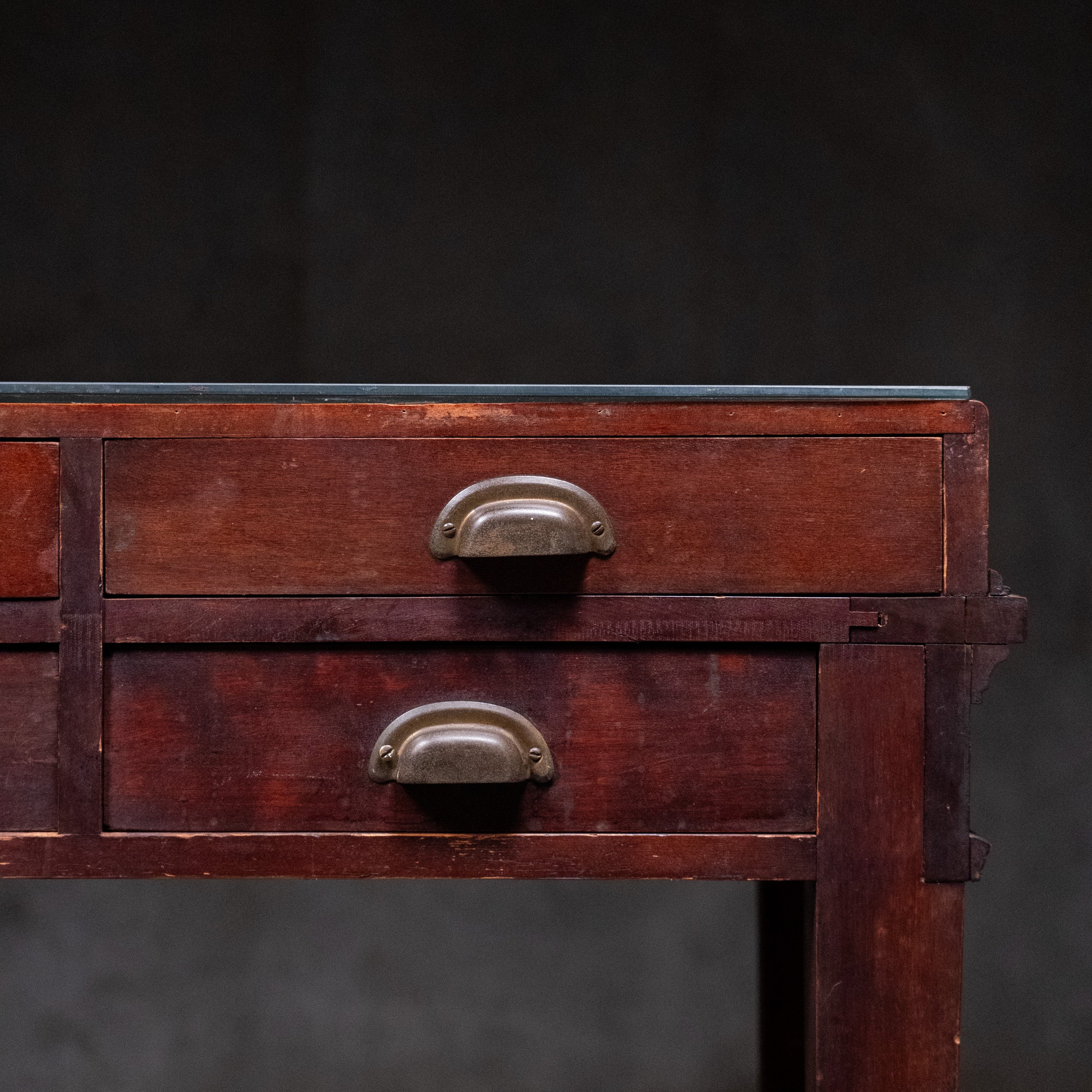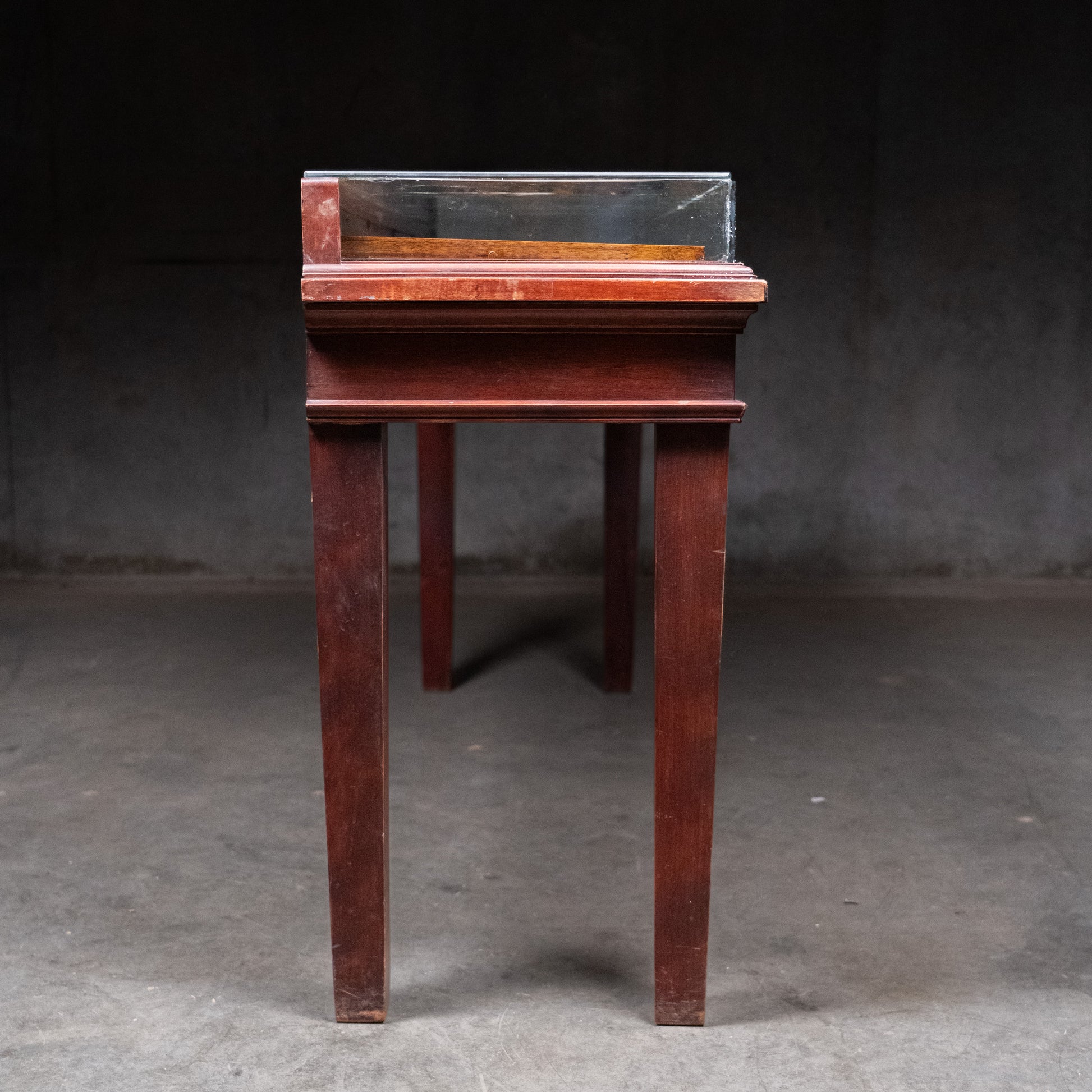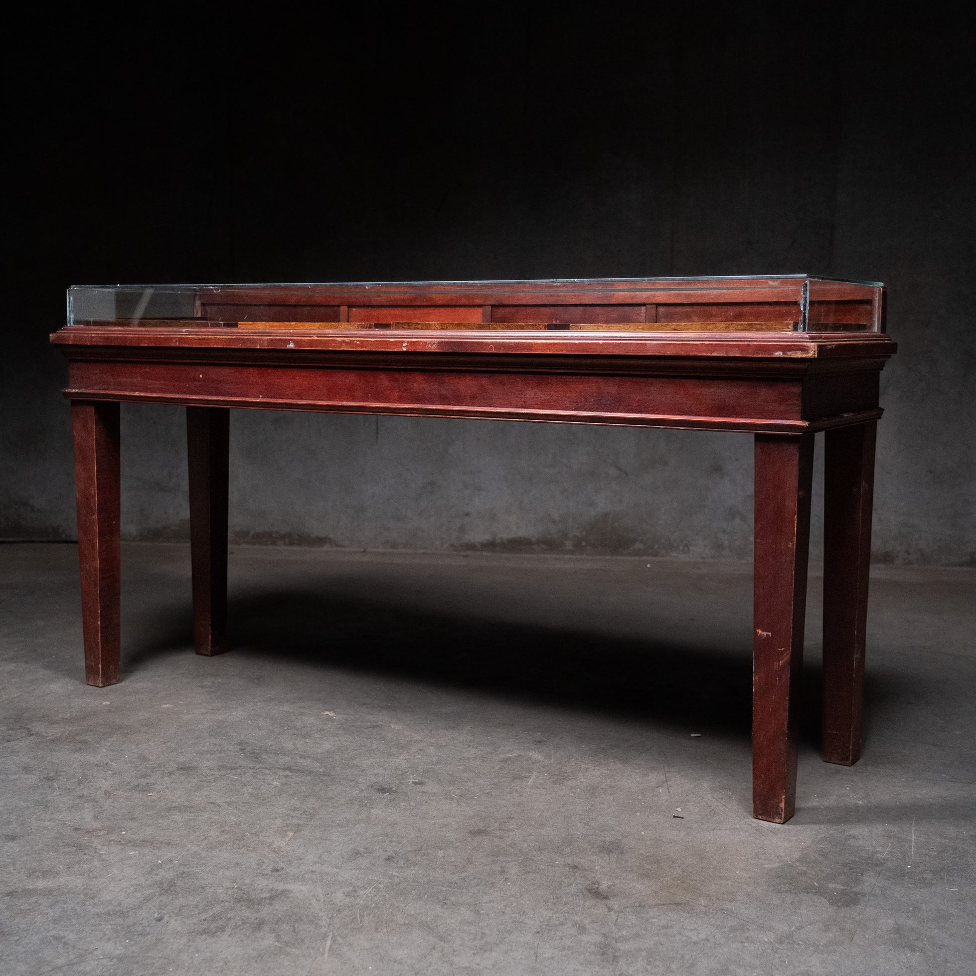 A country counter / console multi drawer fdisplay case. Retains old finish.
