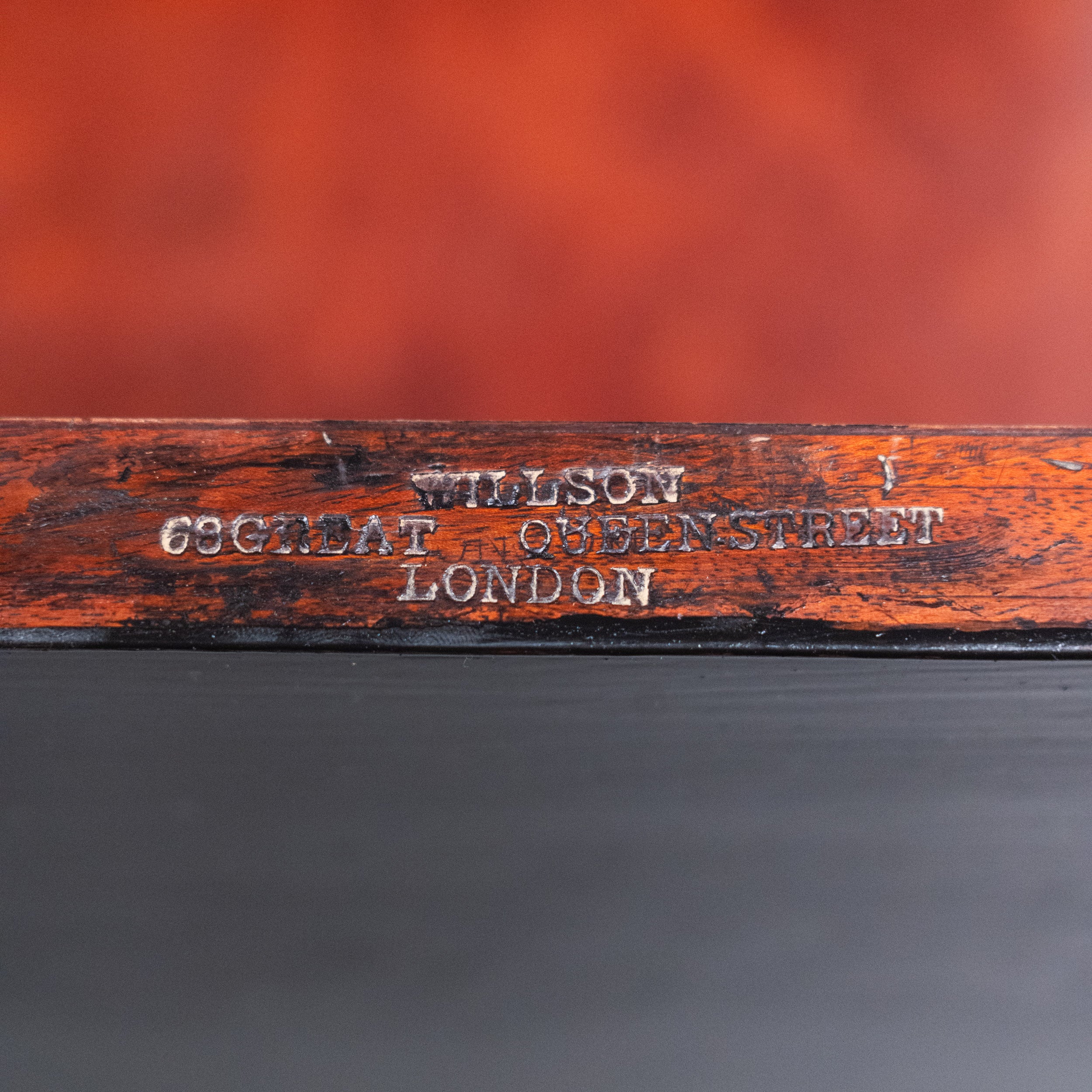 An exceptional antique English ebonized secretary bookcase desk, London made circa 1900 and retaining the original cabinetmaker’s stamp for Wilson, 68 Great Queen Street.