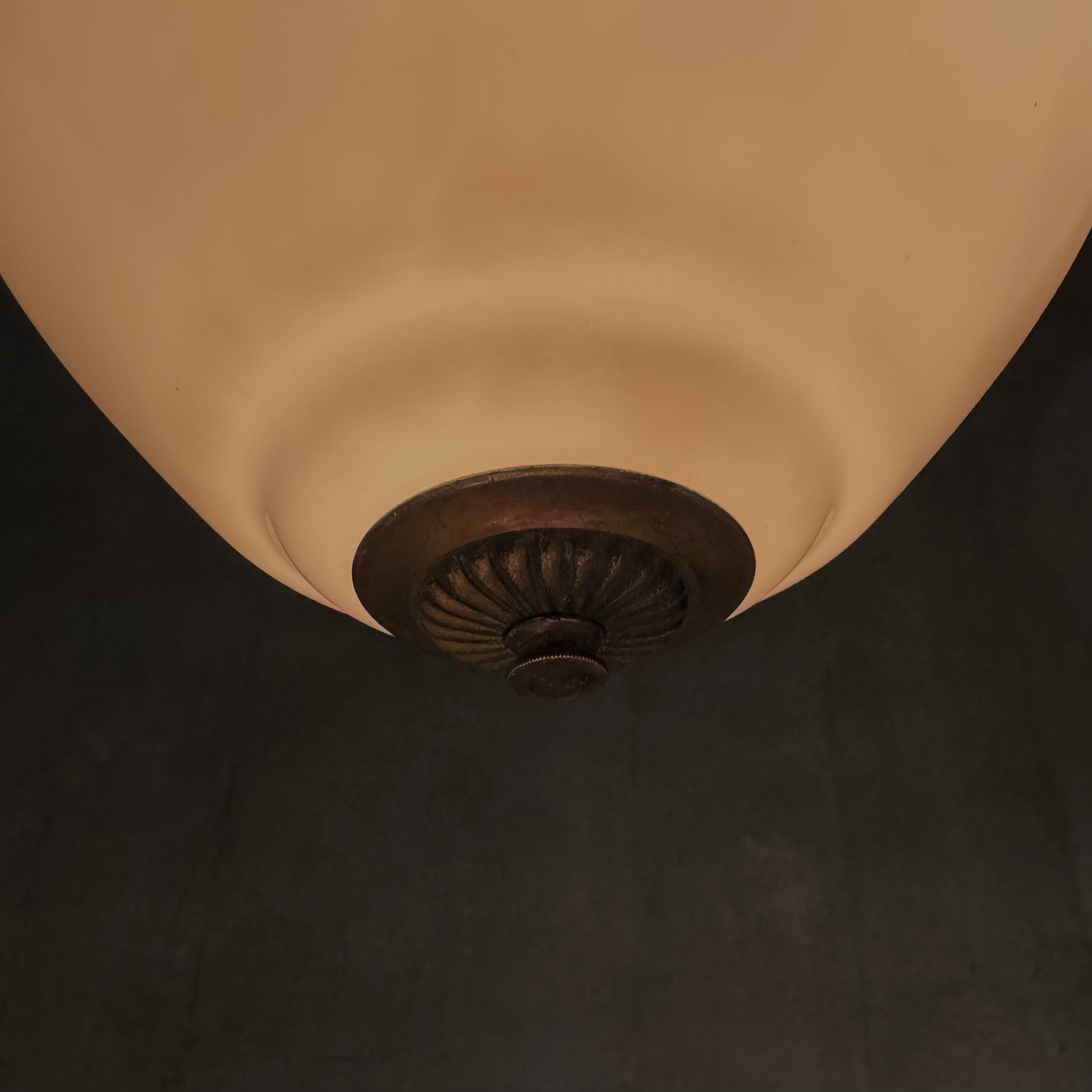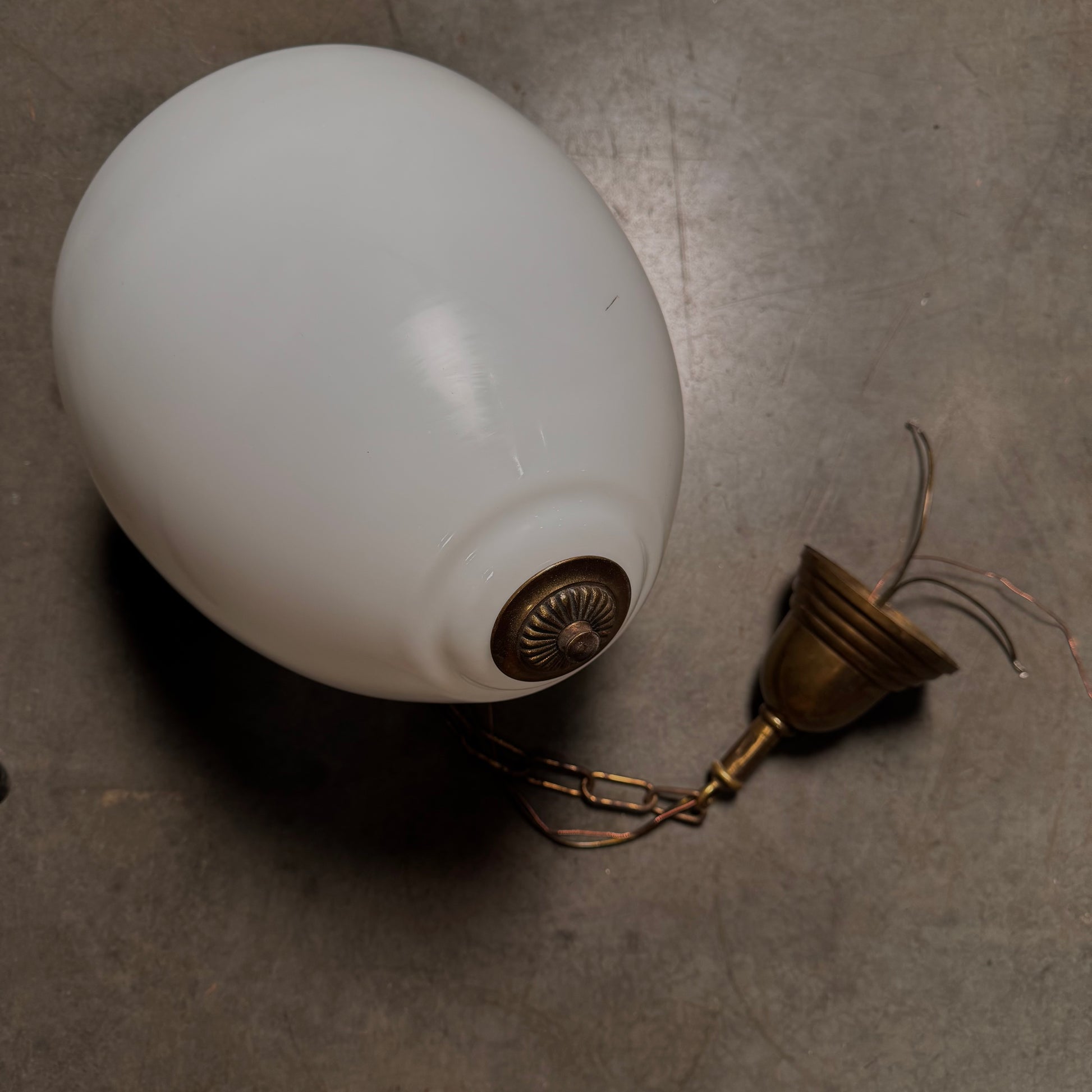 Large milk glass acorn style pendant light, oversized style suggests likely from an entry way.
