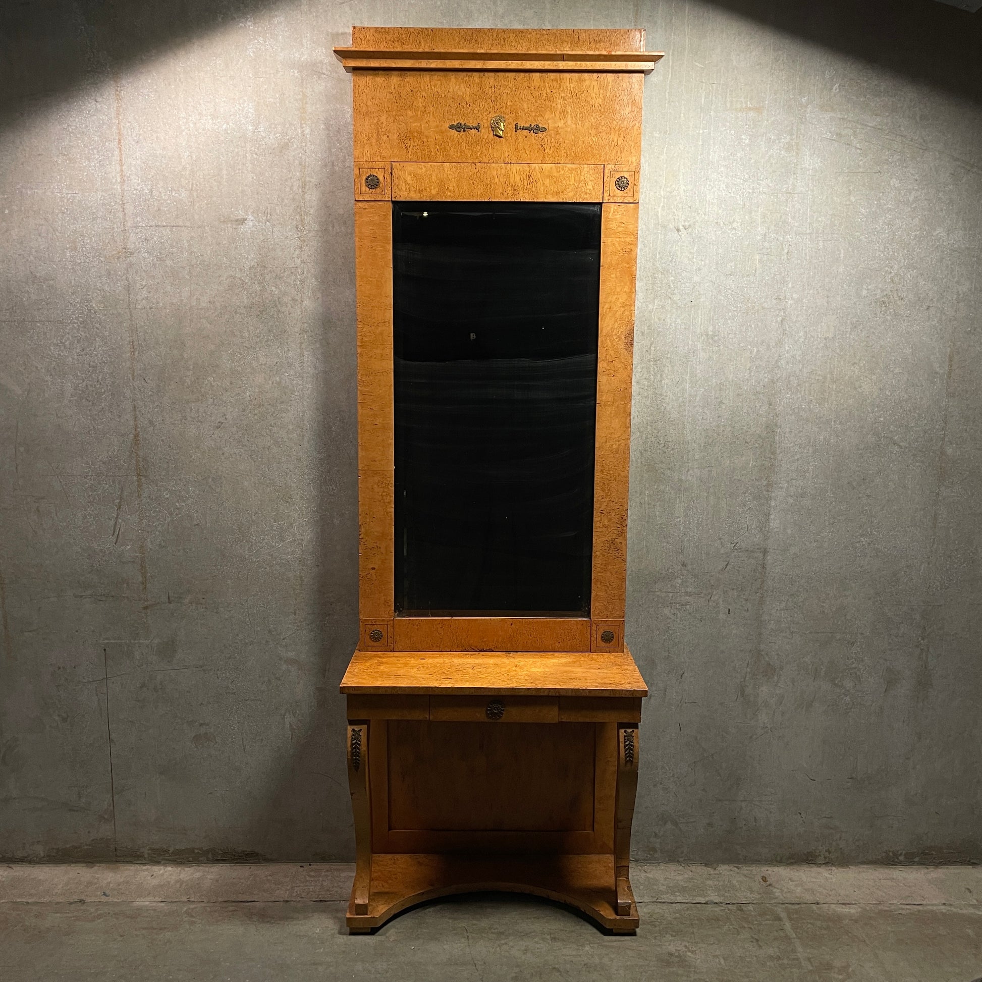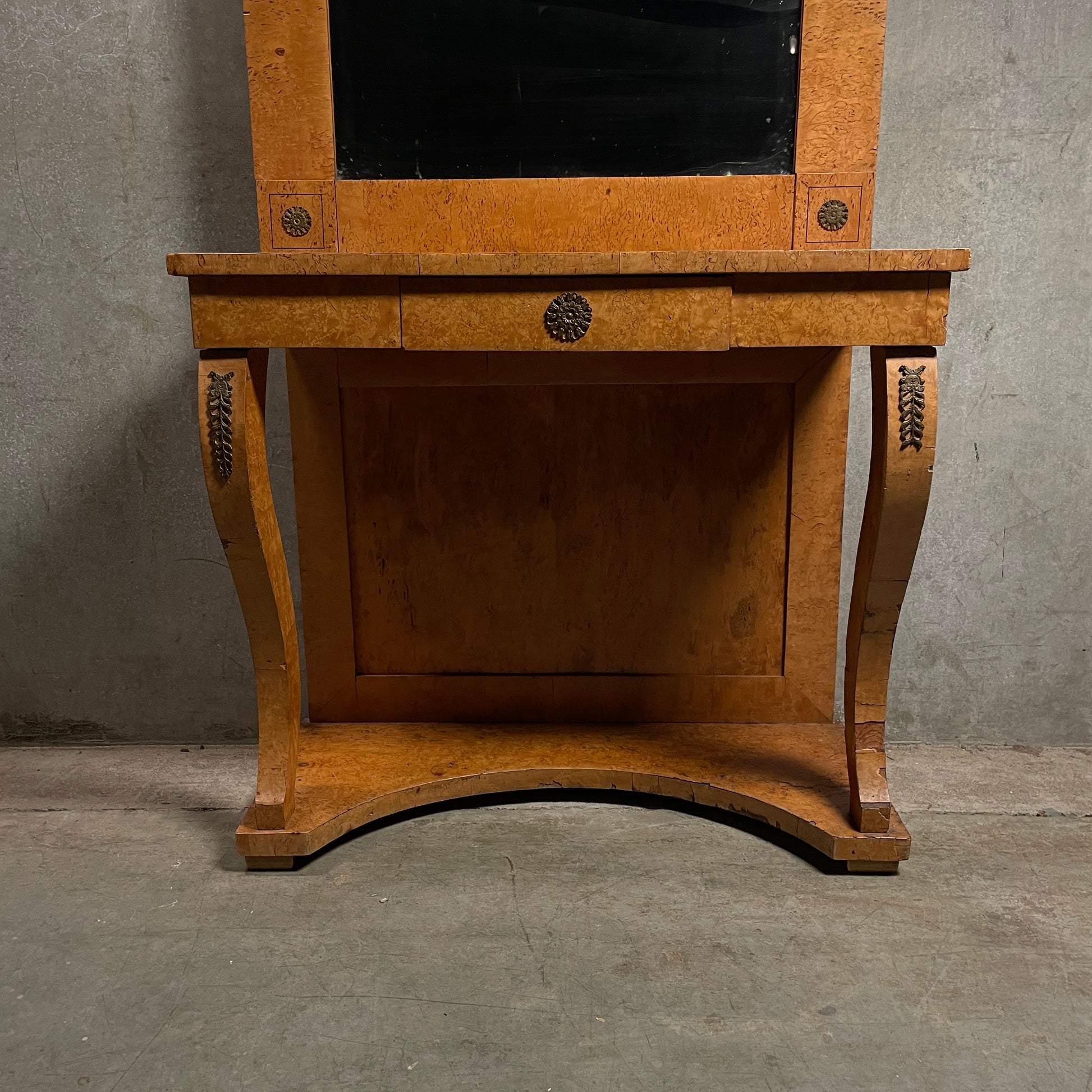 C1910 Biedermeier Bird Eye Maple Console Mirror Table