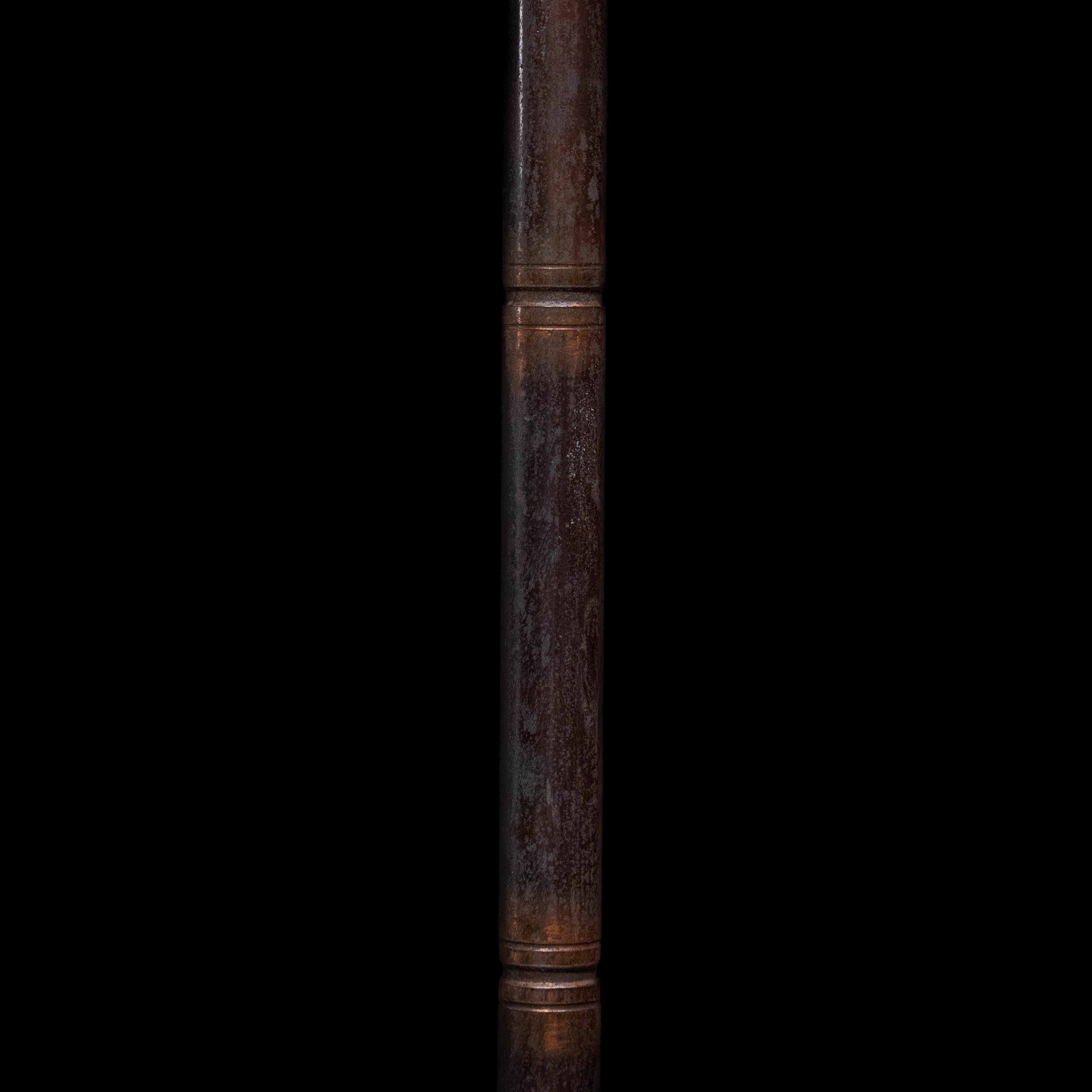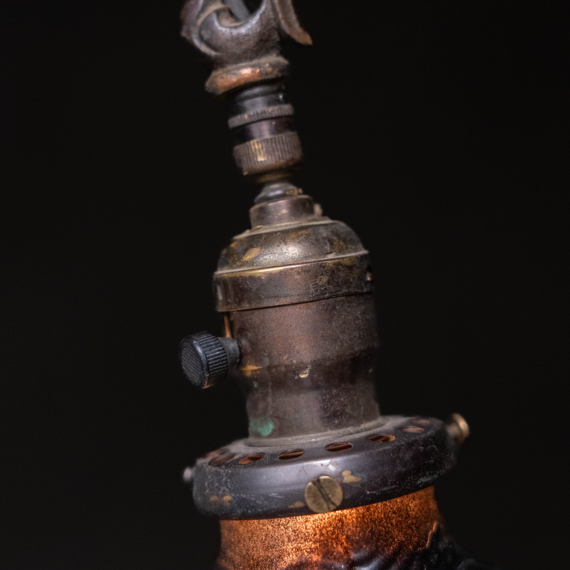 A real interesting floor lamp with japaned finish , high pedestal details and a black mercury shade to finish it off.