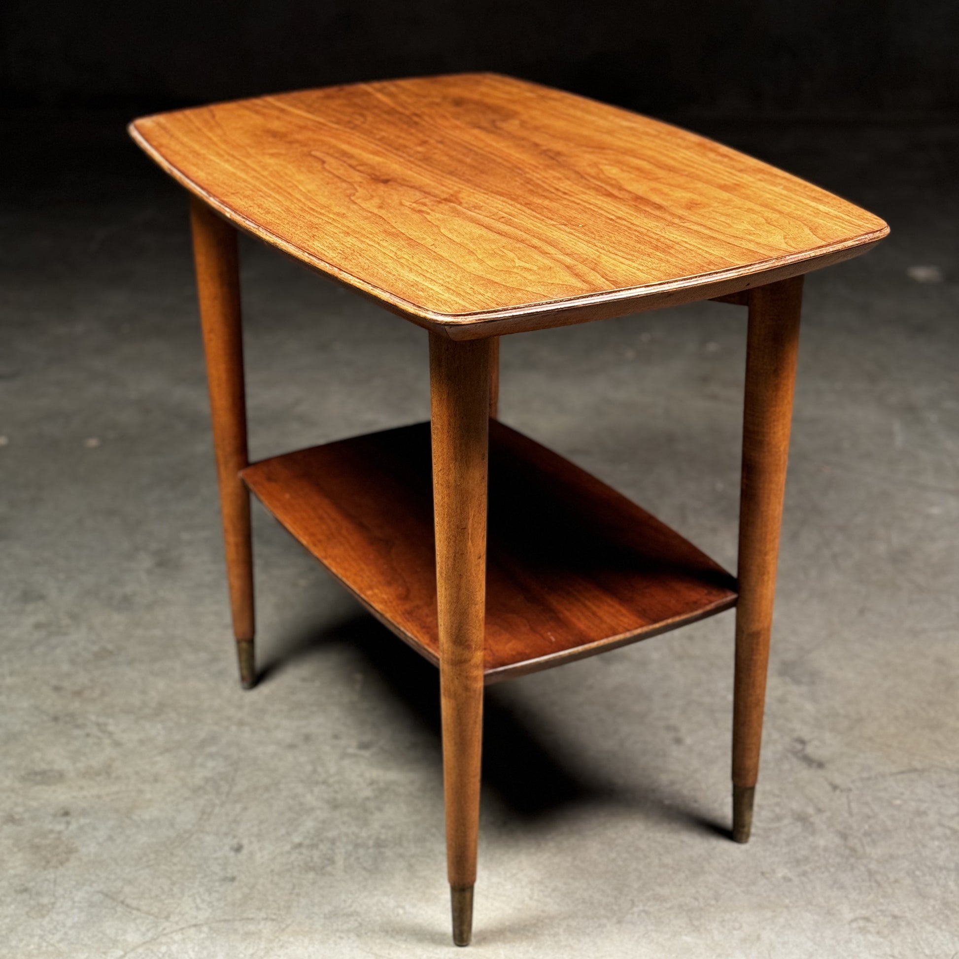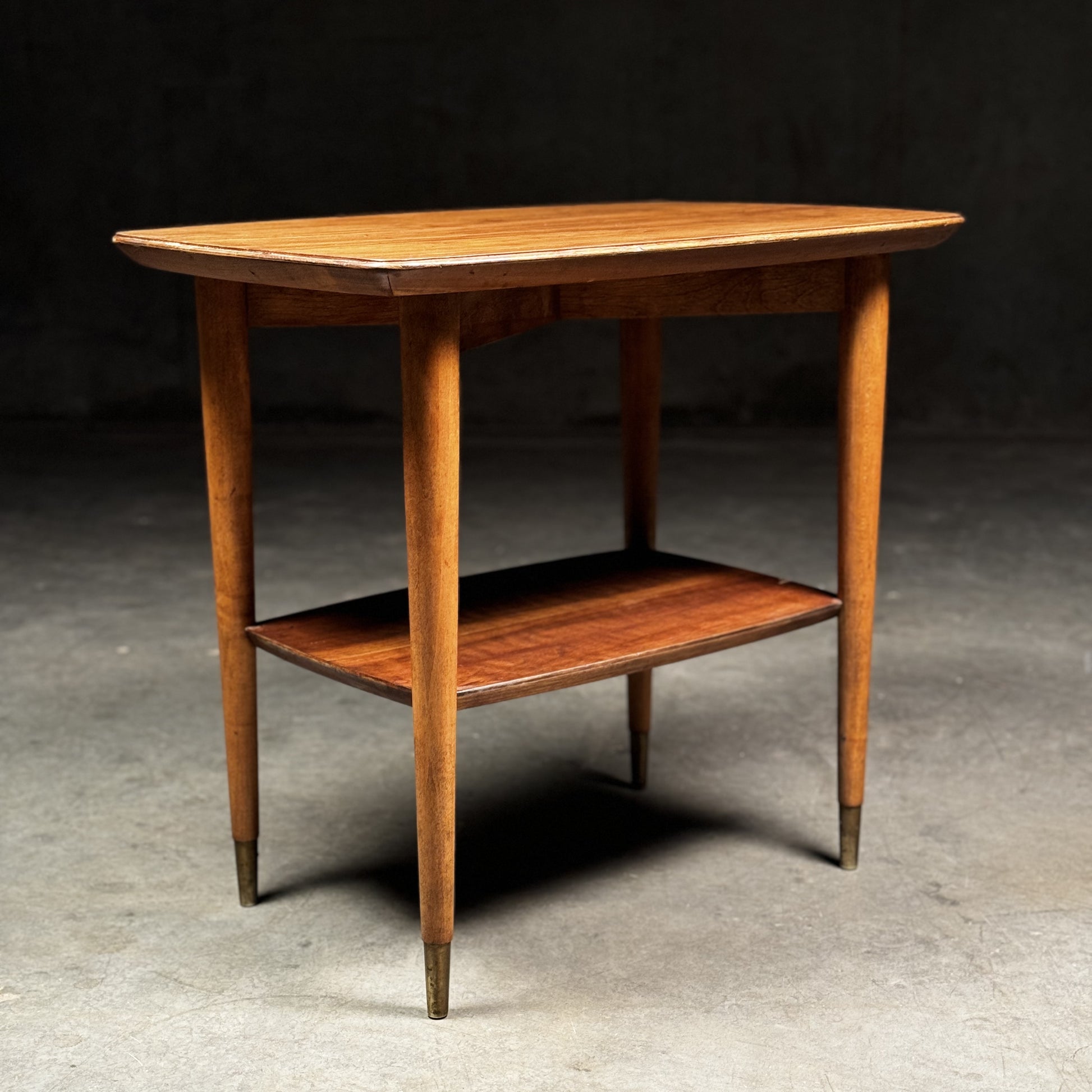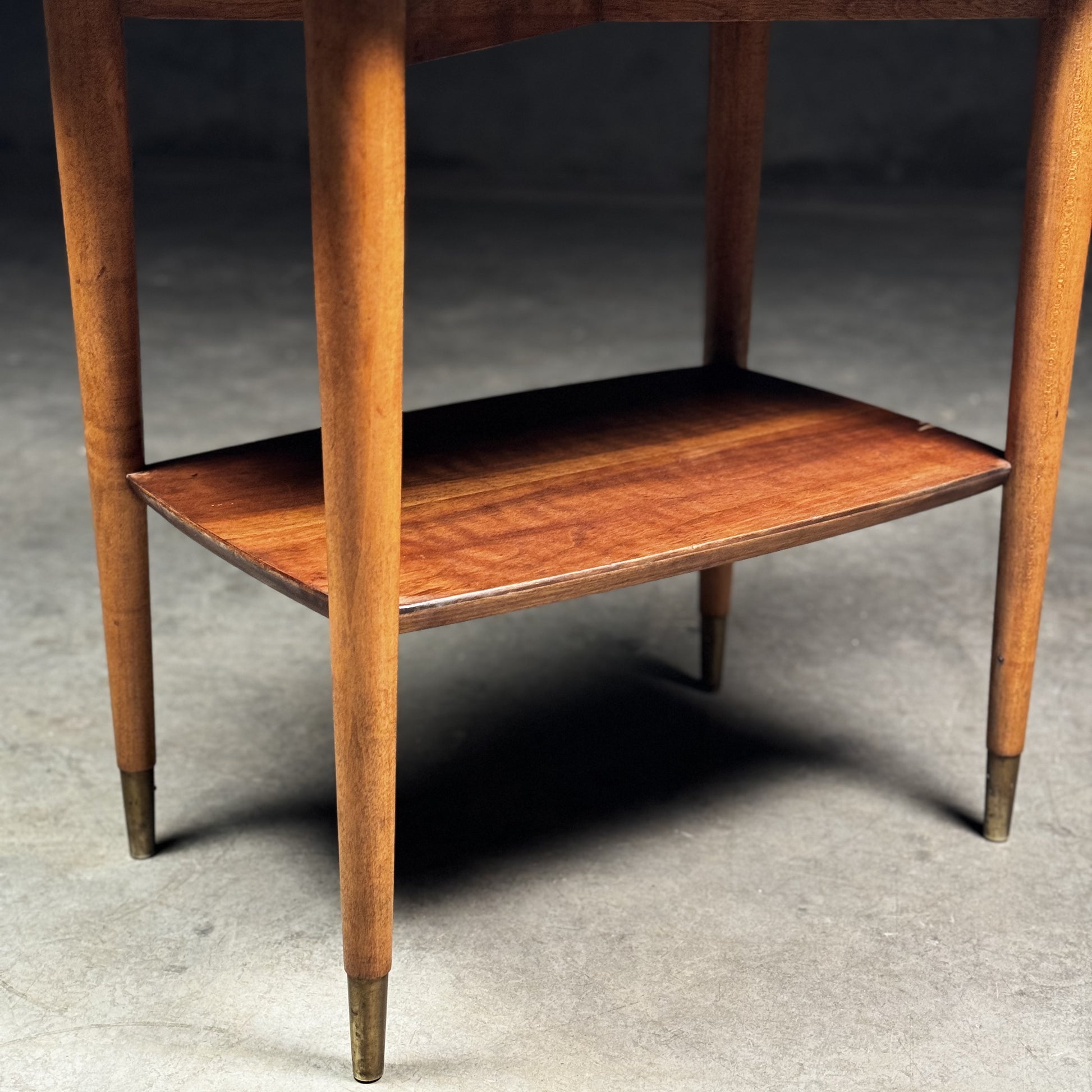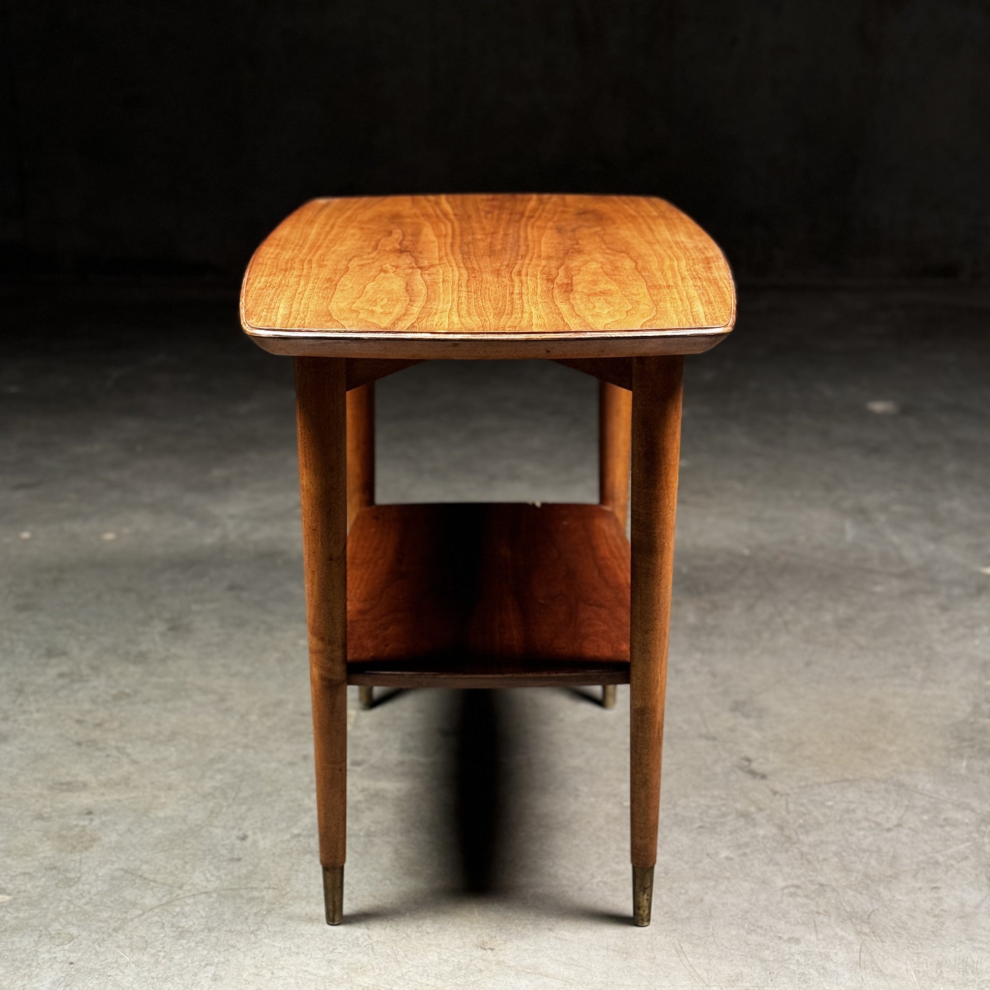Here’s a fantastic find—a beautifully crafted walnut table featuring elegant brass-tipped legs, all of which retain their original, aged finish. With its clean lines and attention to detail, this piece is likely of Danish origin, known for its timeless design and quality craftsmanship. Its well-preserved condition and understated charm make it an excellent addition to any space.