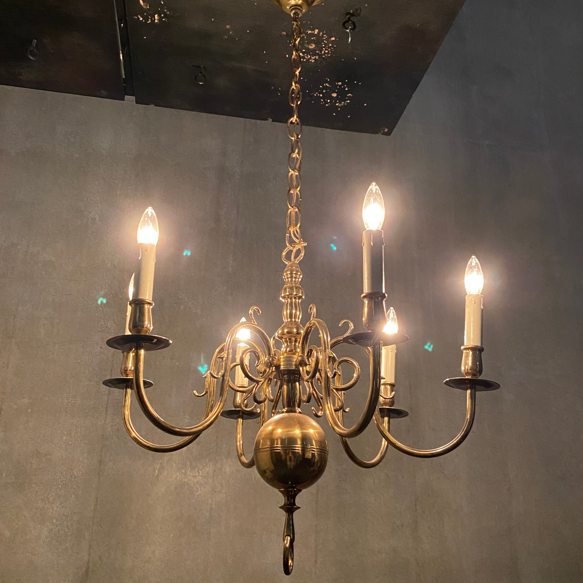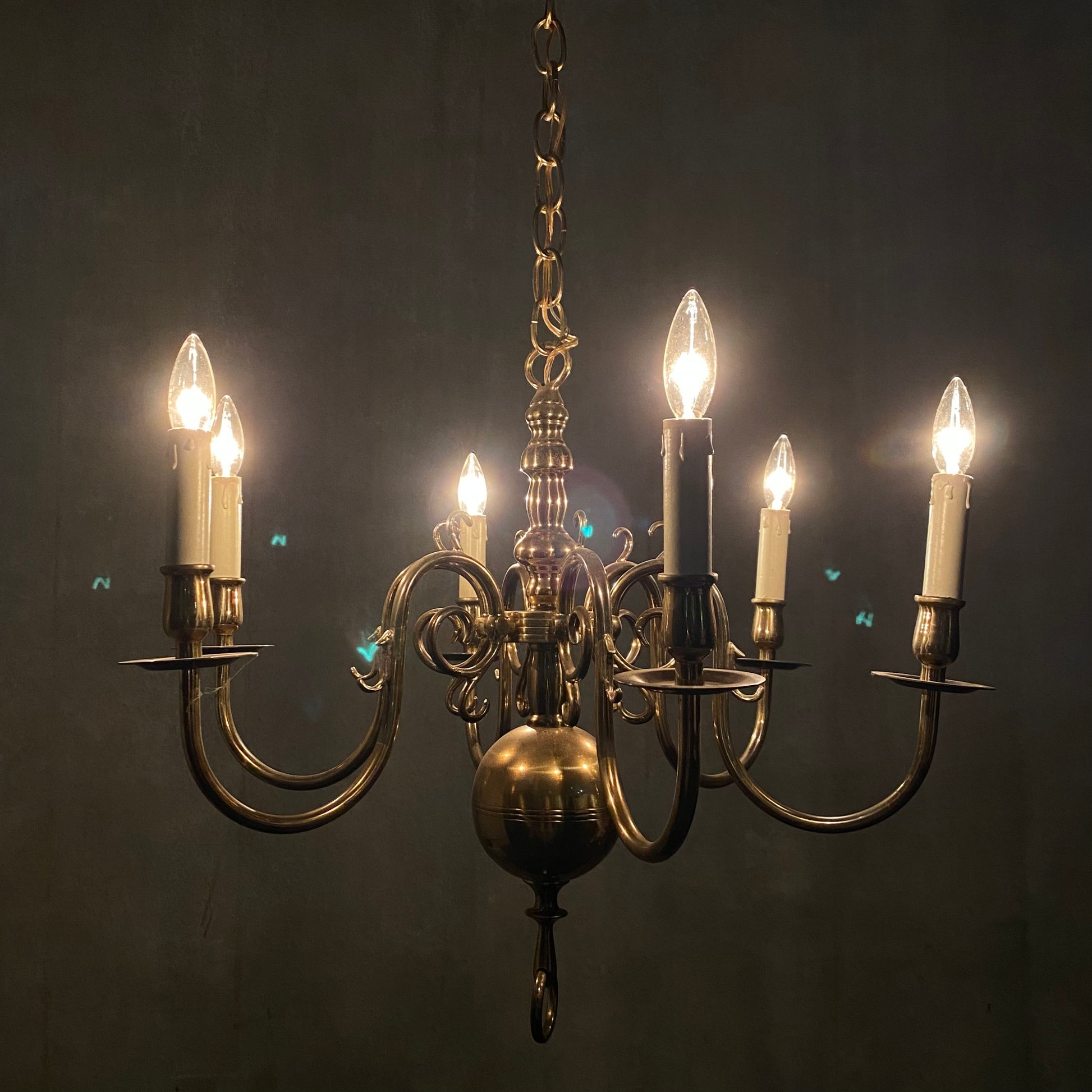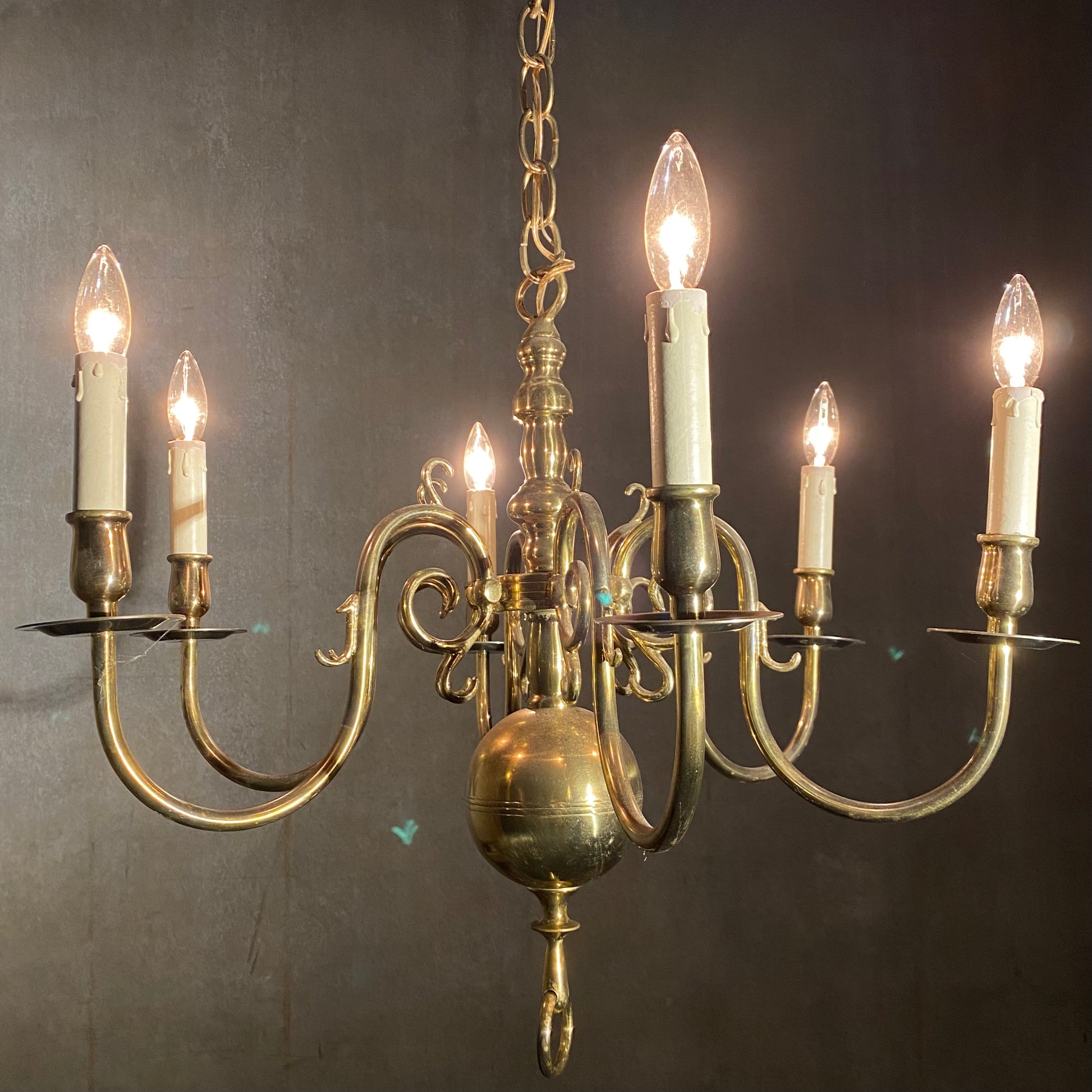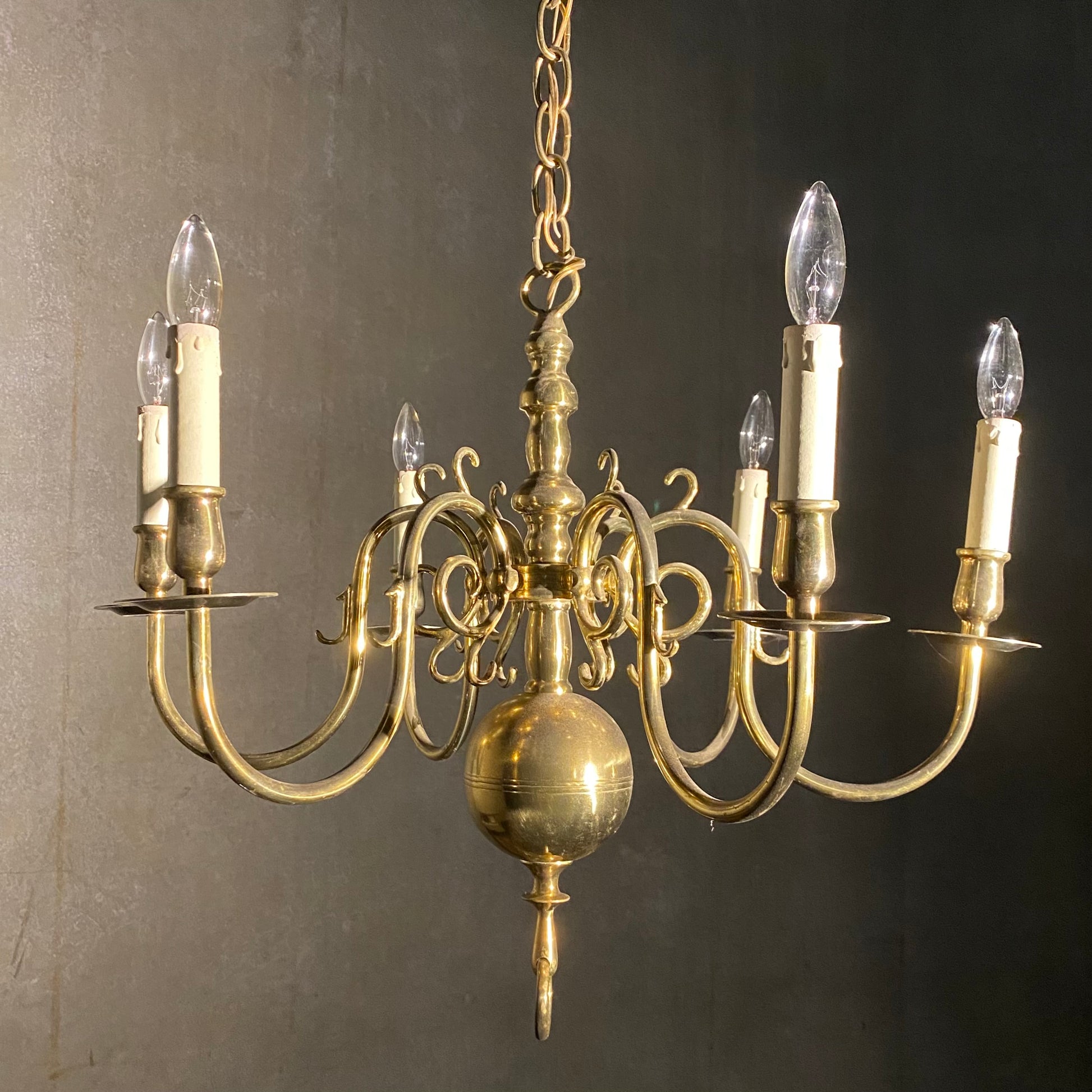 1940 New England Style Full Brass Chandelier