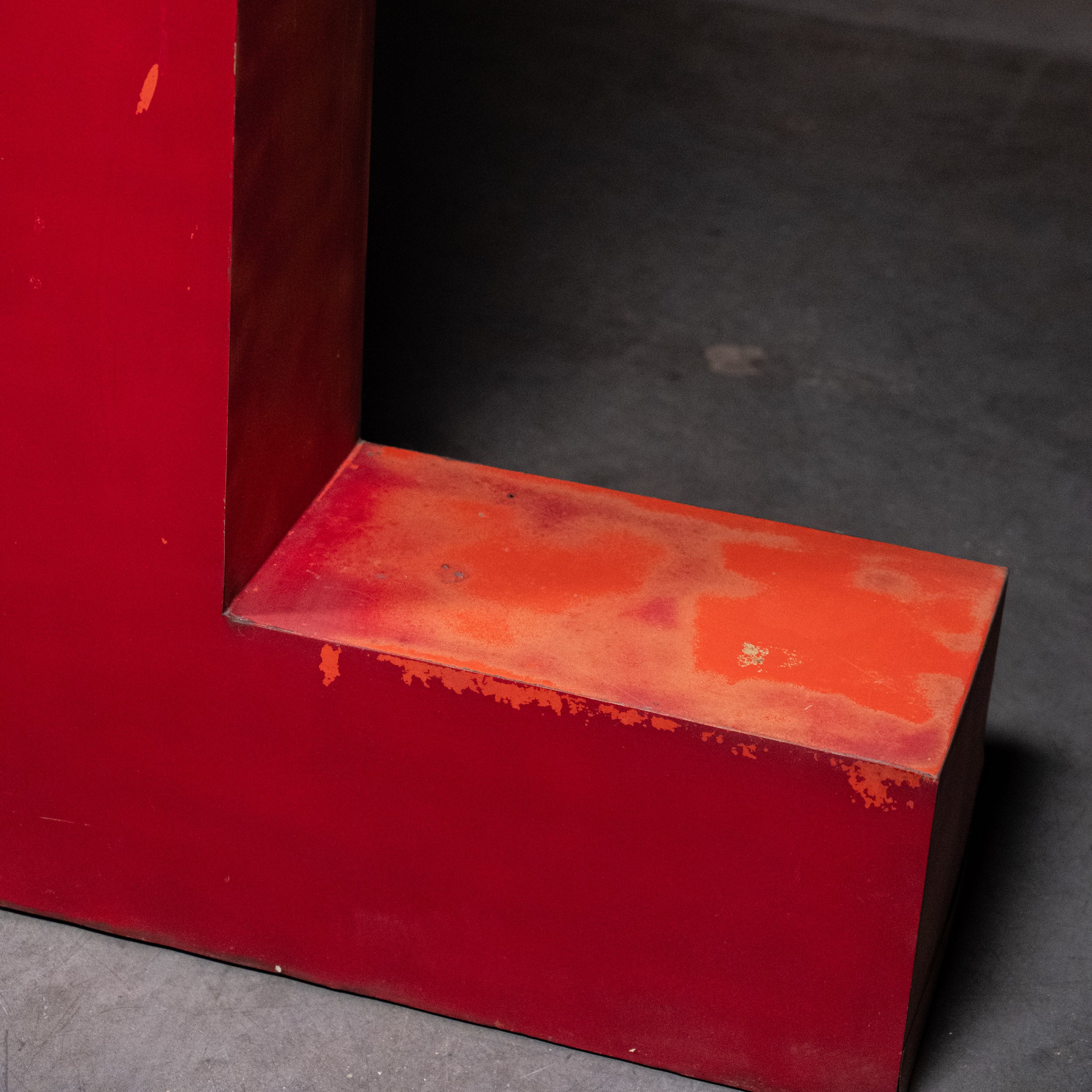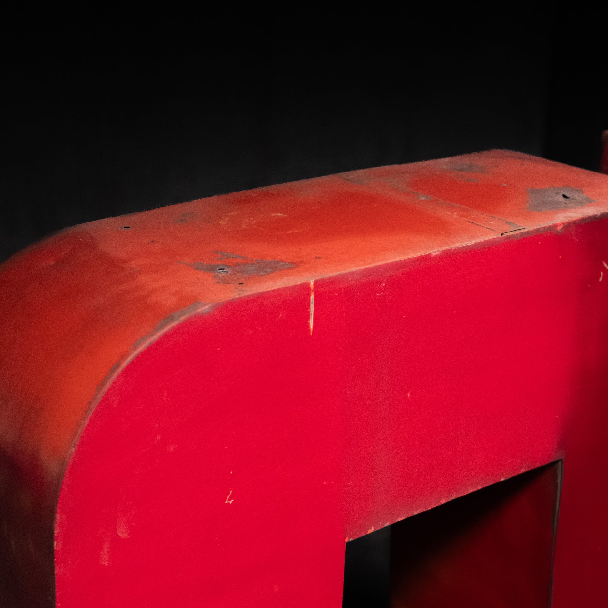 A rare group of salvaged advertising letters from a building in Vancouver. Showing old red colour on heavy gauge metal.