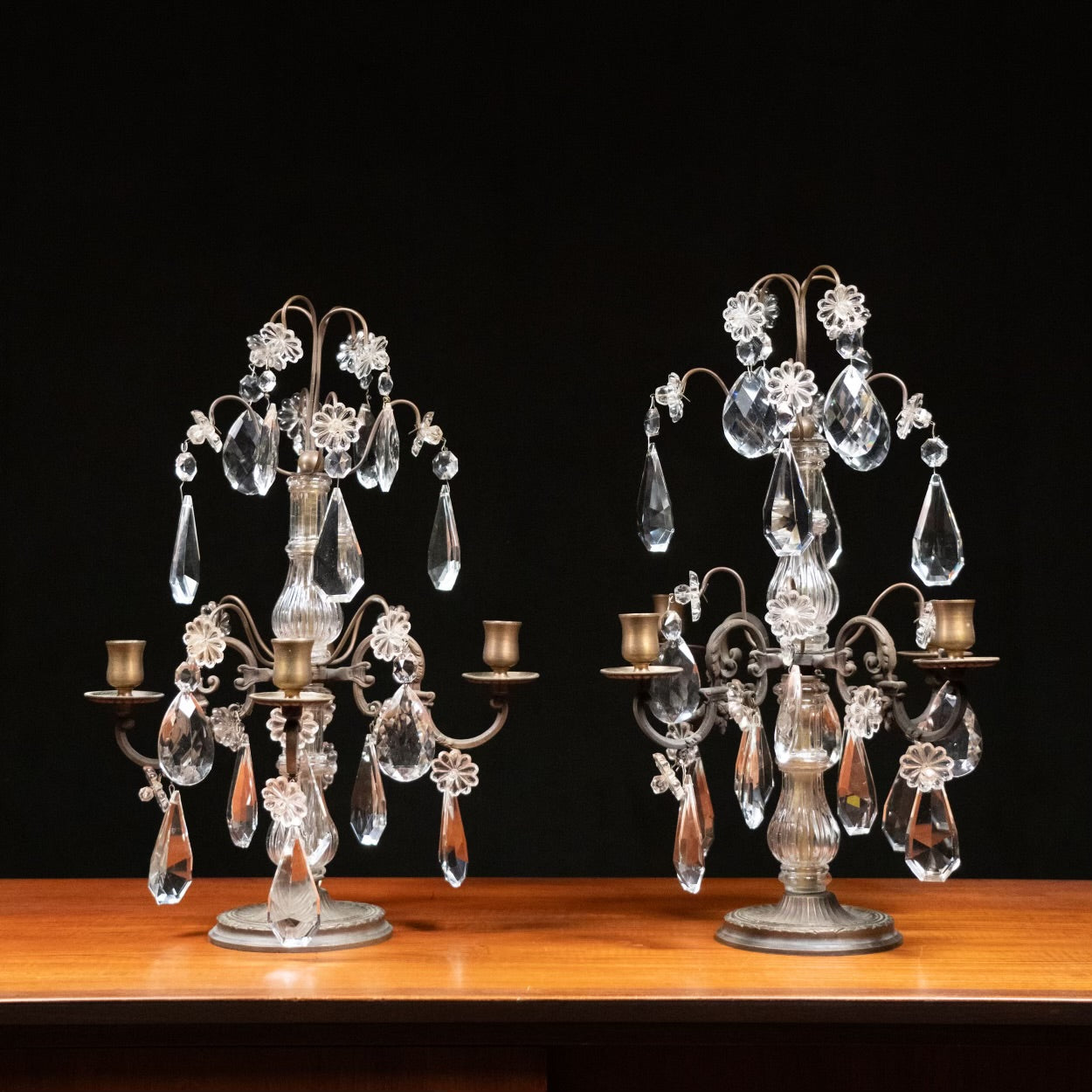 Sold as a pair , featuring nice size good patina and original from France. Cleaned and solid. Just add candles . C1900-20 Found in MONTREAL