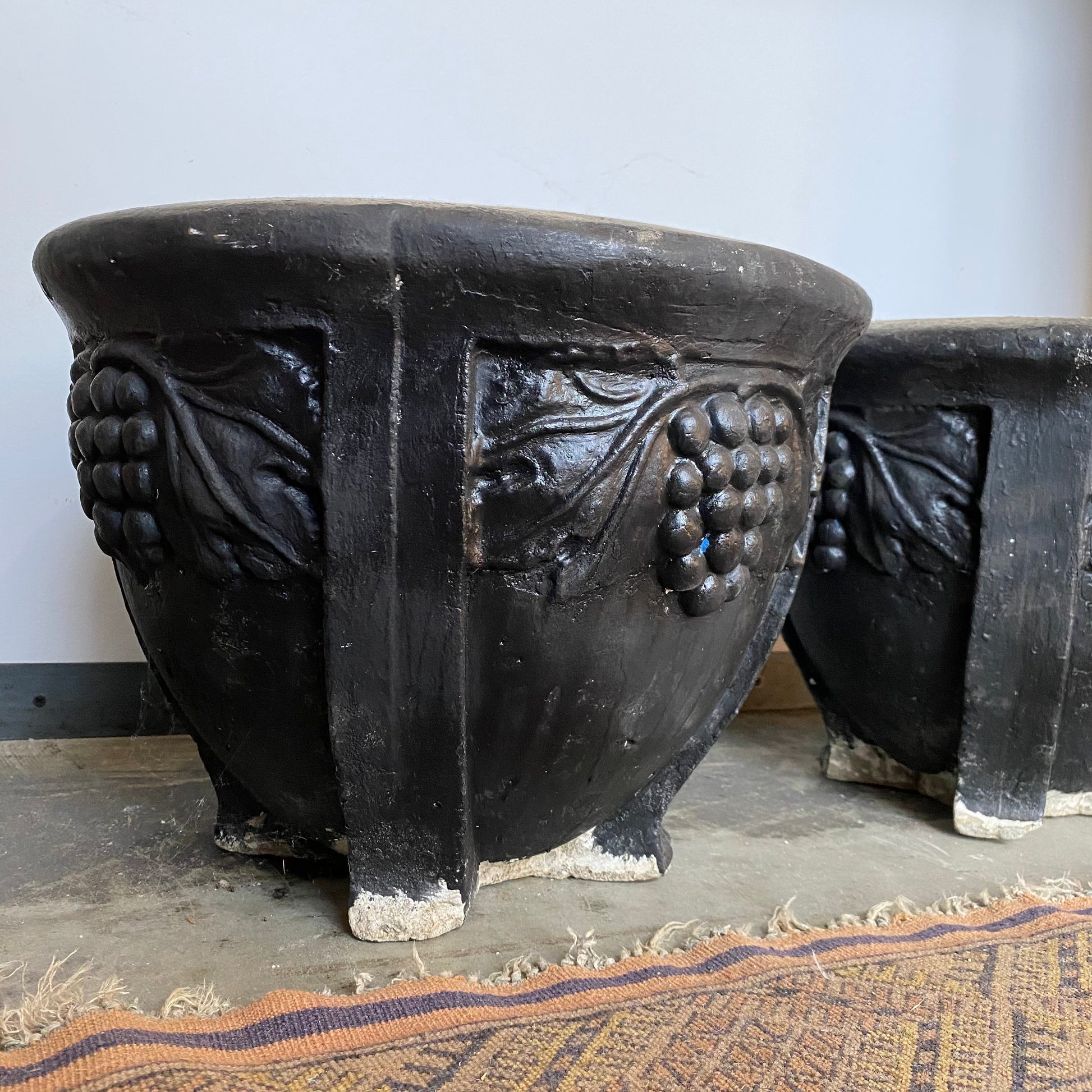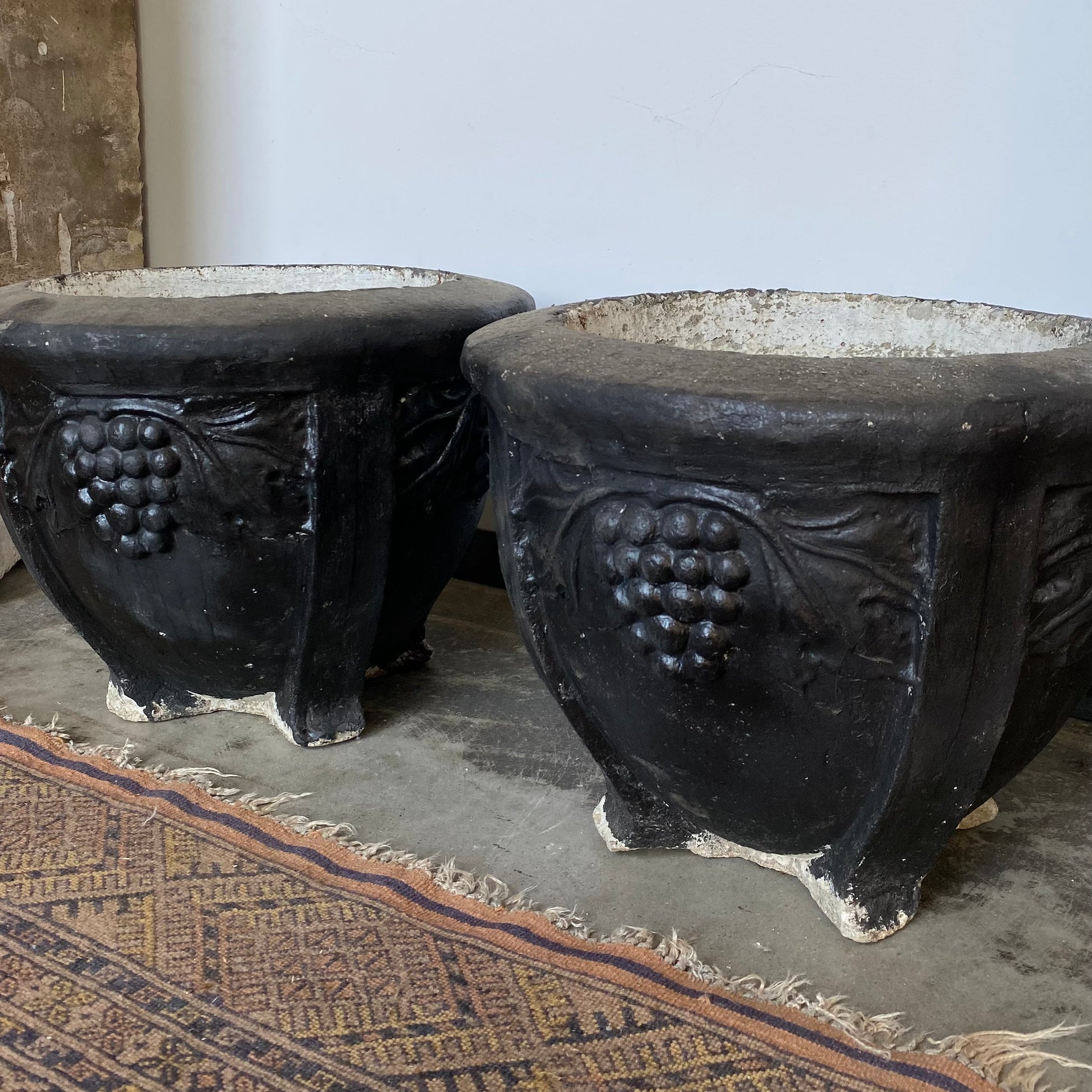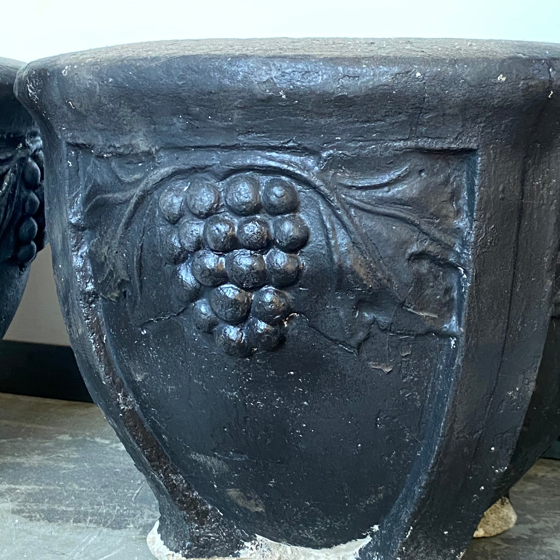 Pair of 1950-60 Black Cement Planters