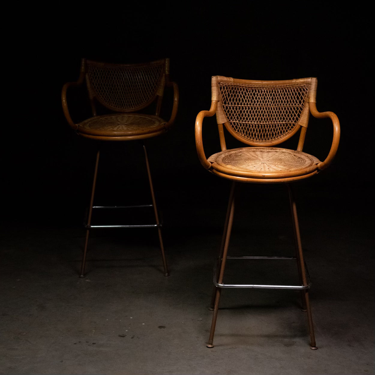 Sold as a set only. These original swivel seat bar stools are solid and fully functional . BTB Danny Ho Fung but no markings. Acquired from a private collection.