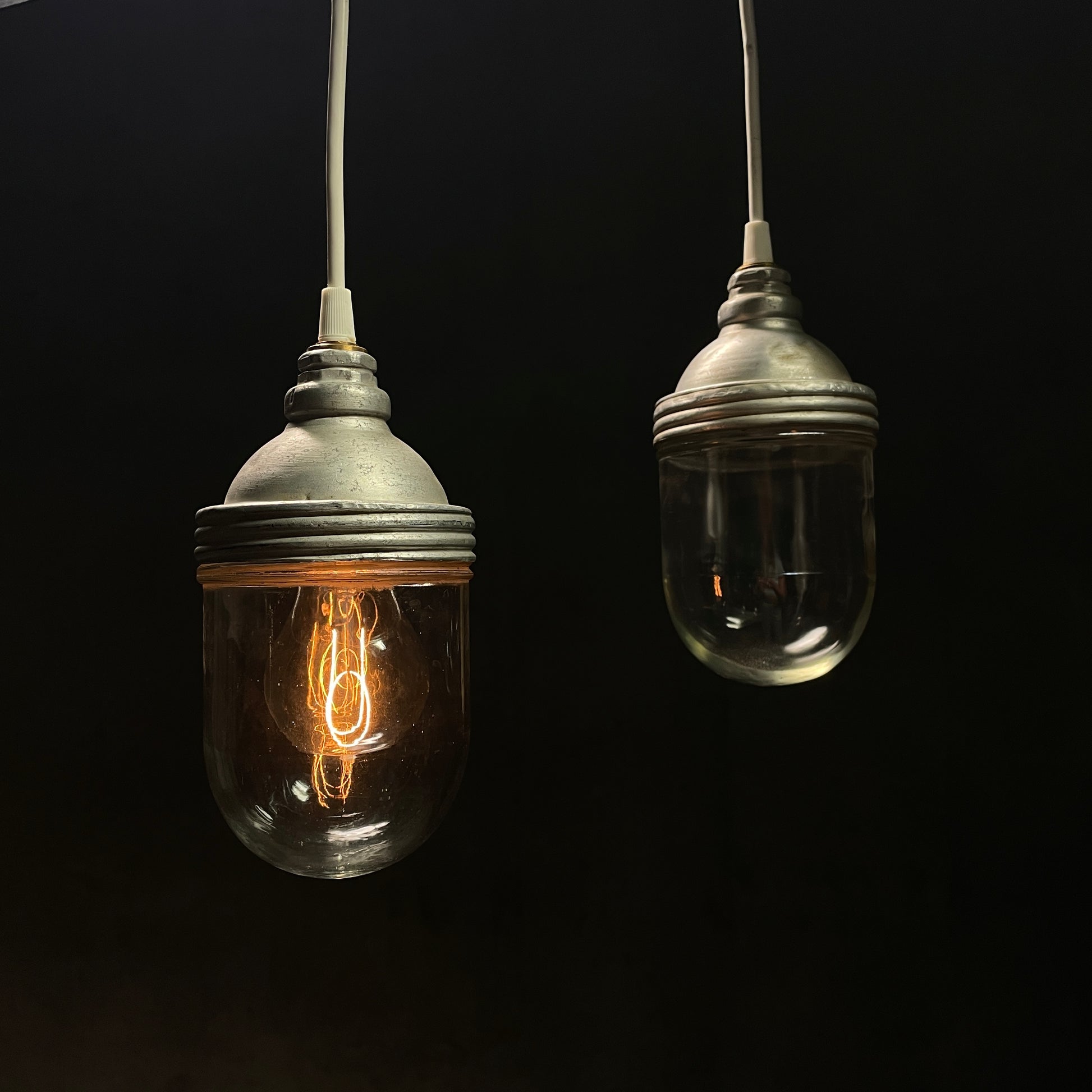 1920 Pair of Raw Metal Benjamin Pendant Lights