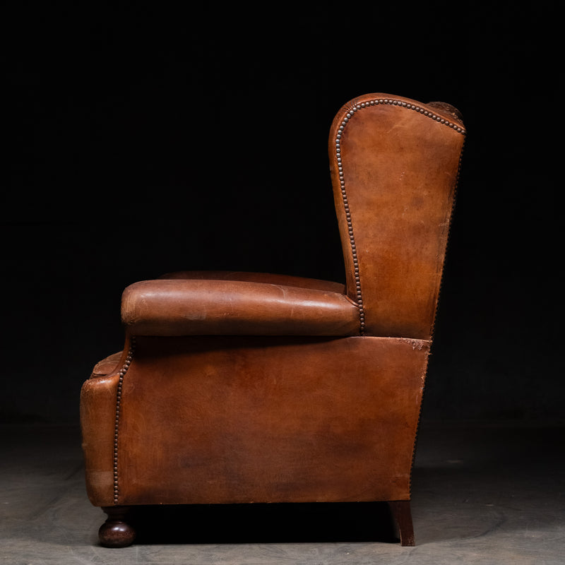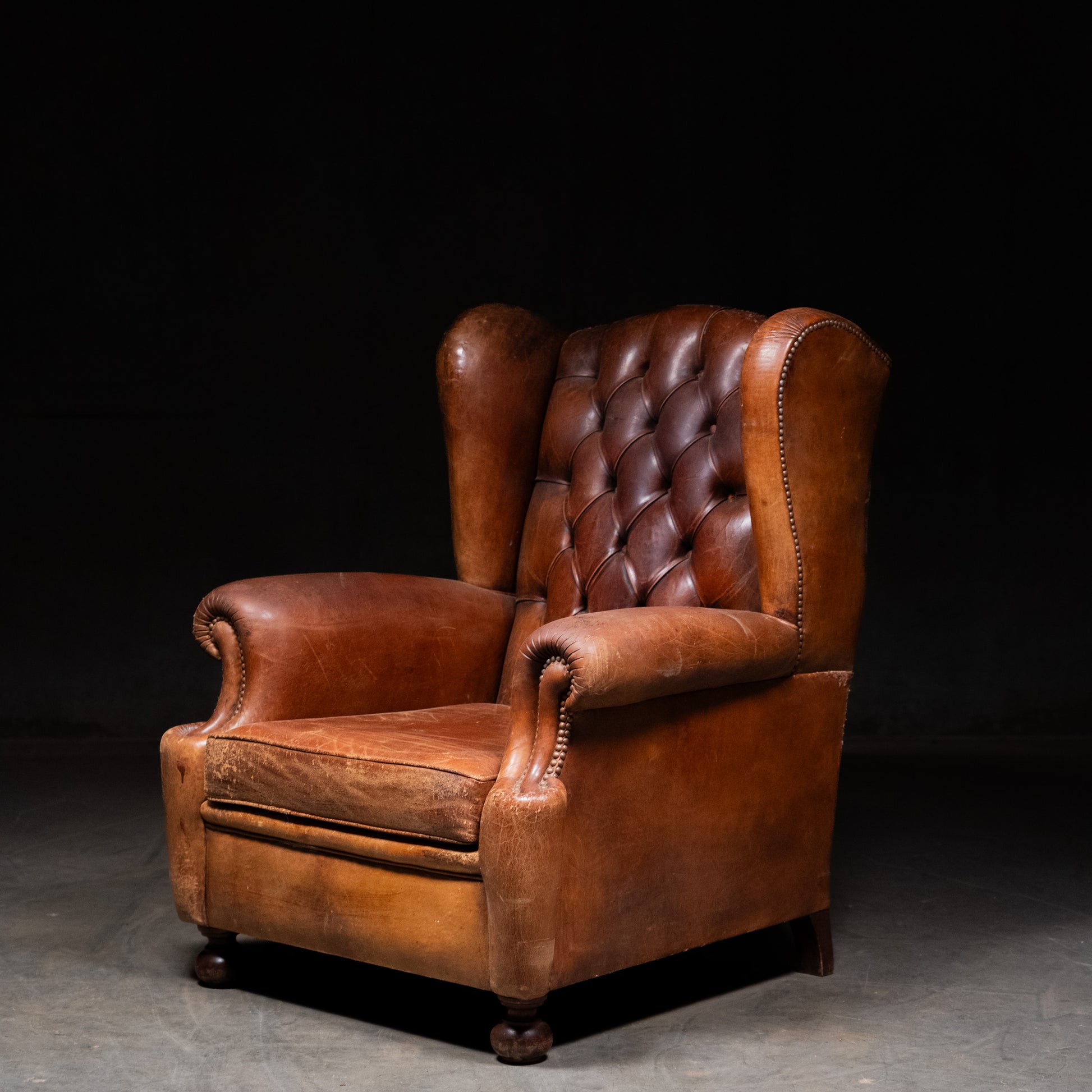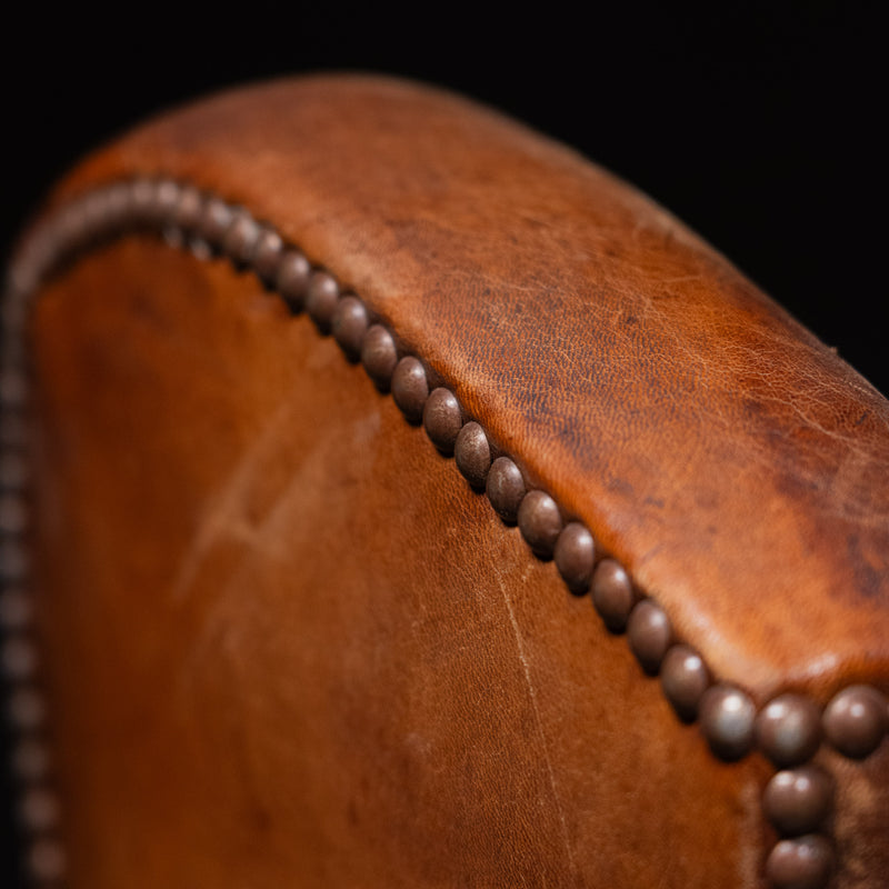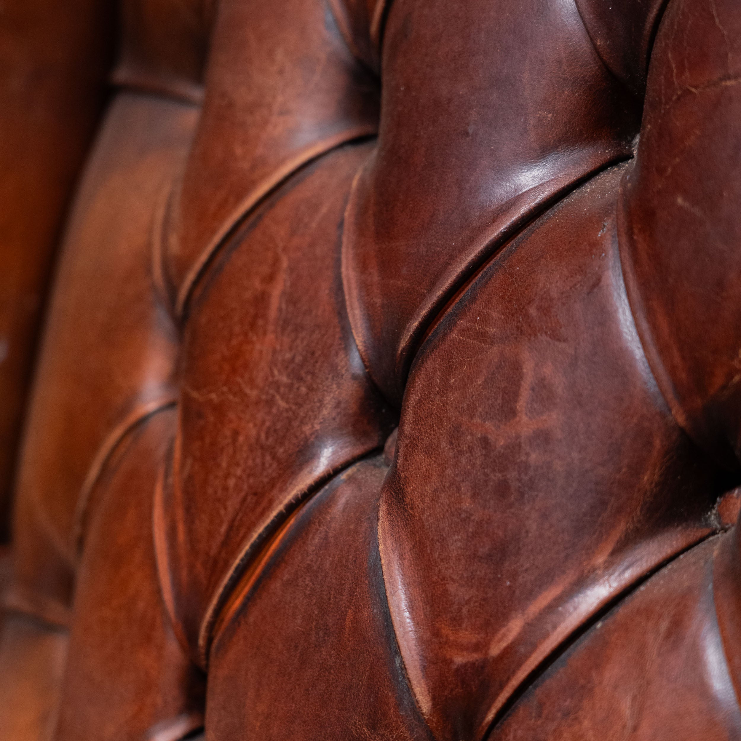 An excellent example of perfect patina leather chairs, with all the bells and whistles. Found in a manor house in Portugal owned by British citizens.
