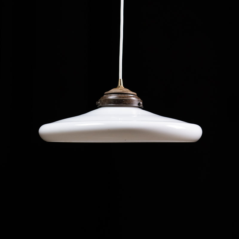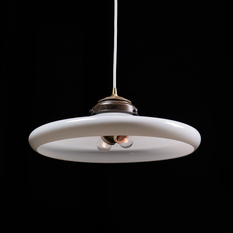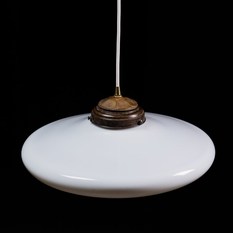 1920 Large Milk Glass Saucer Pendant Light