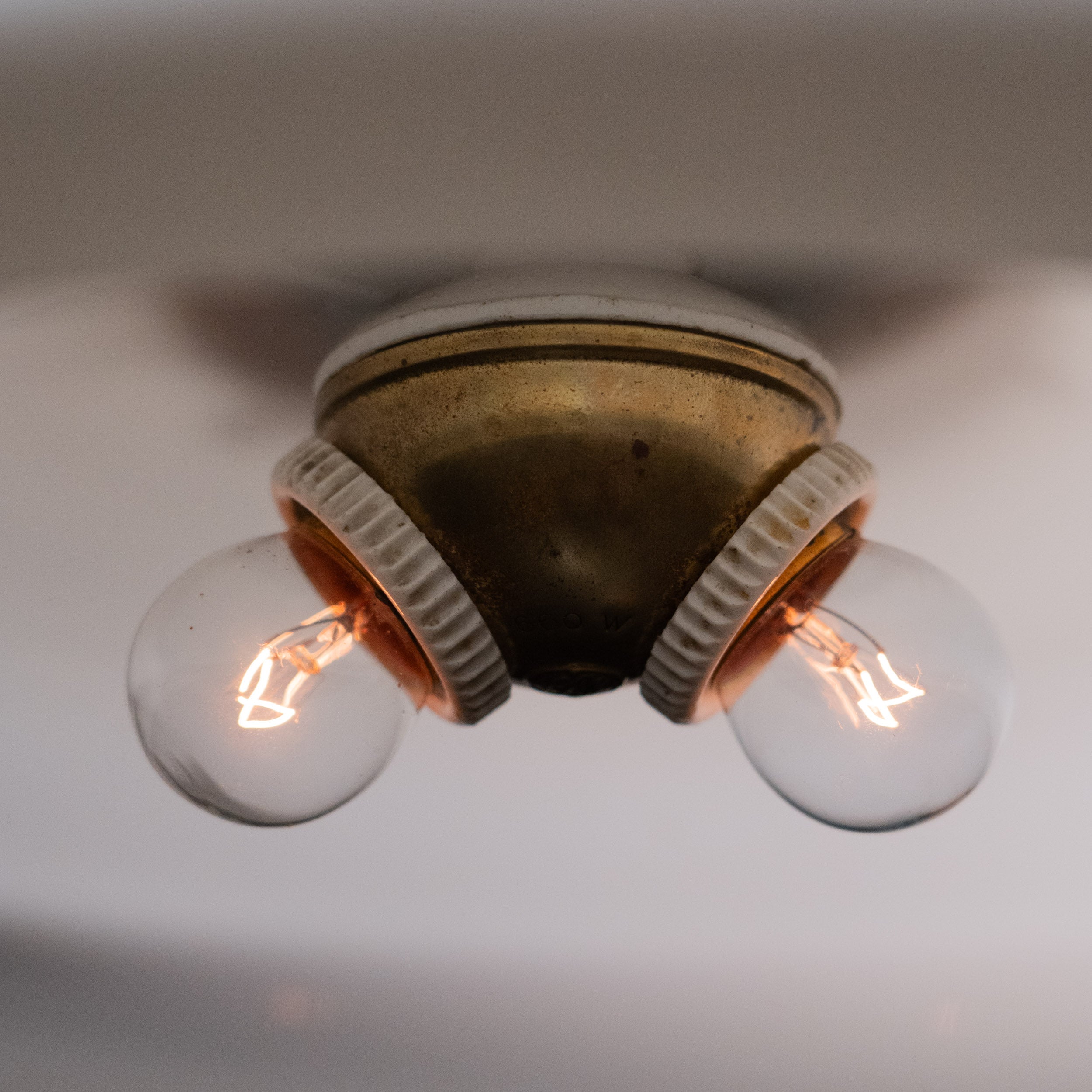 A great c 1900 light fixture with unusual size shade with added Benjamin cluster adapter for 2 bulb install.