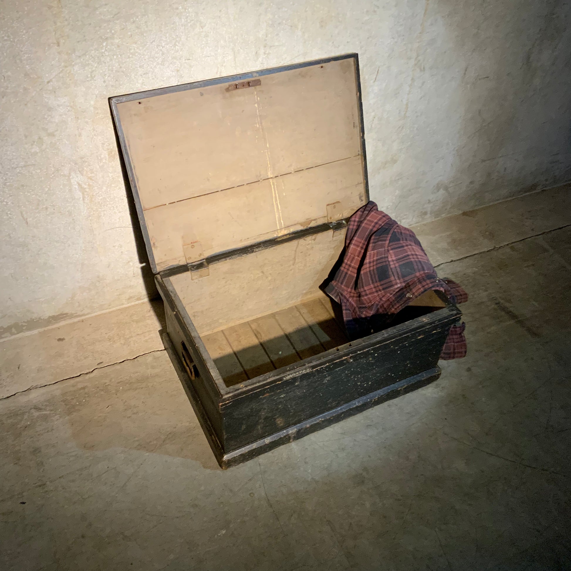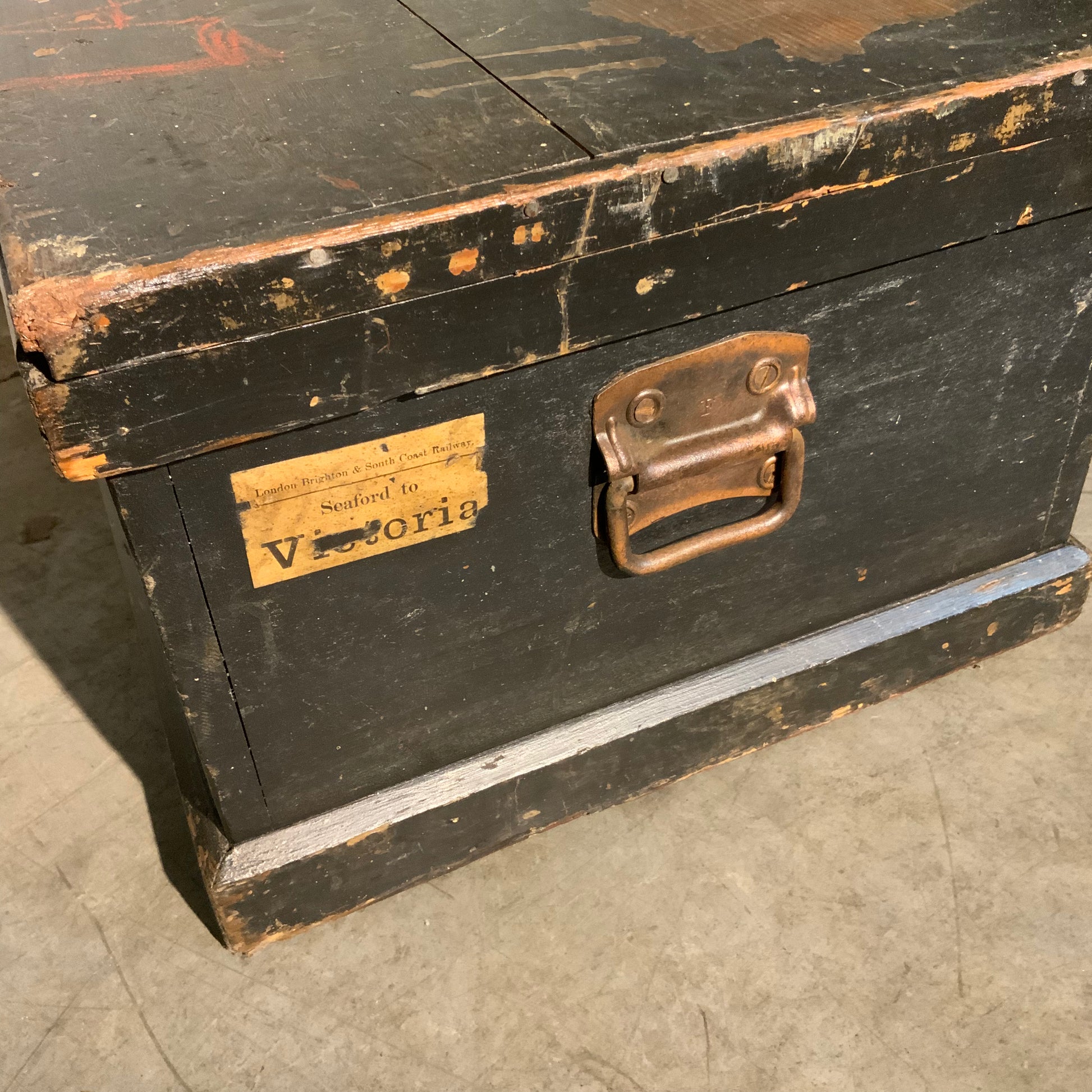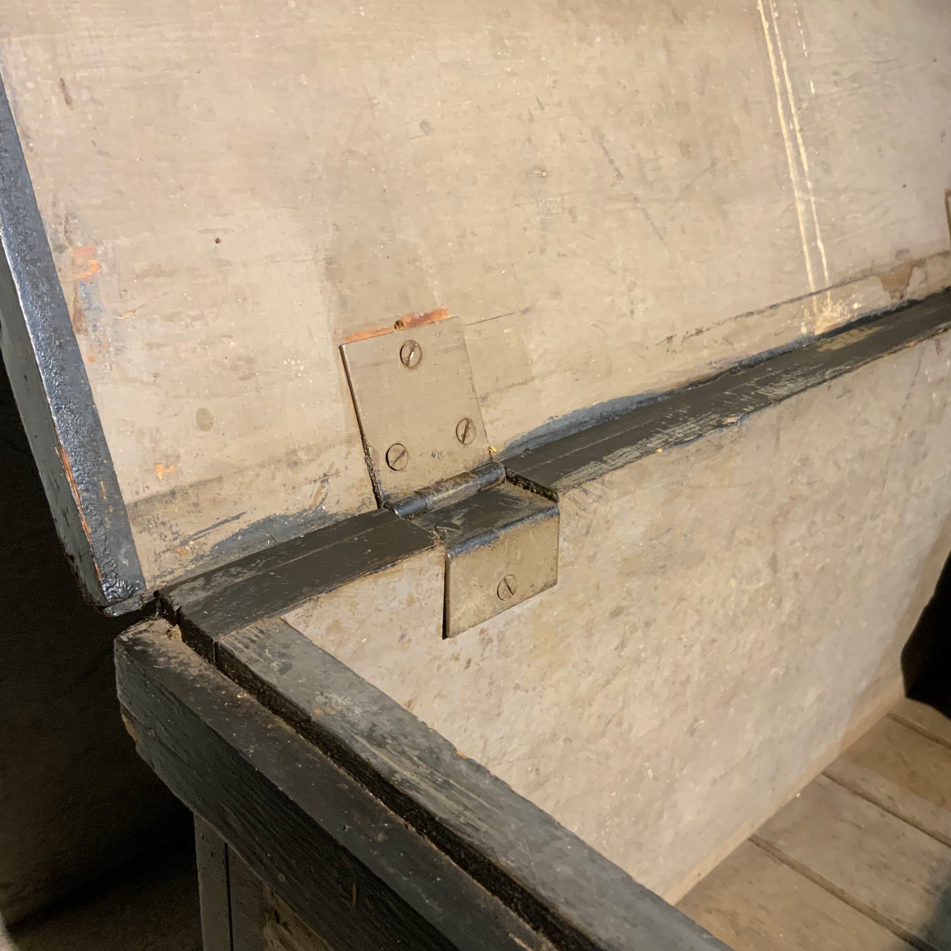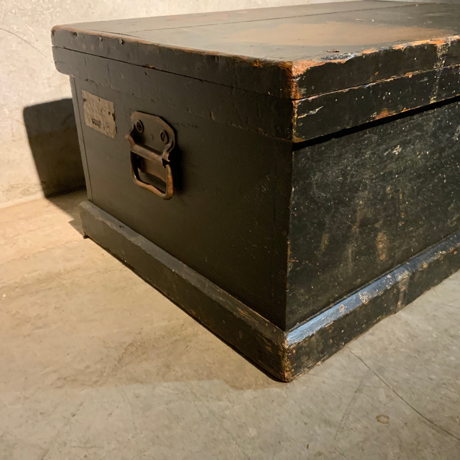 A pine truck for officers goods used in shipping west from Ontario>. Owner was a graduate of the RMC. PIECE RETAINS ORIGINAL,PAINT.