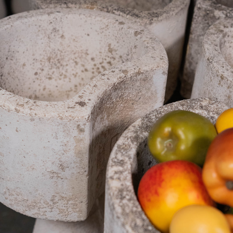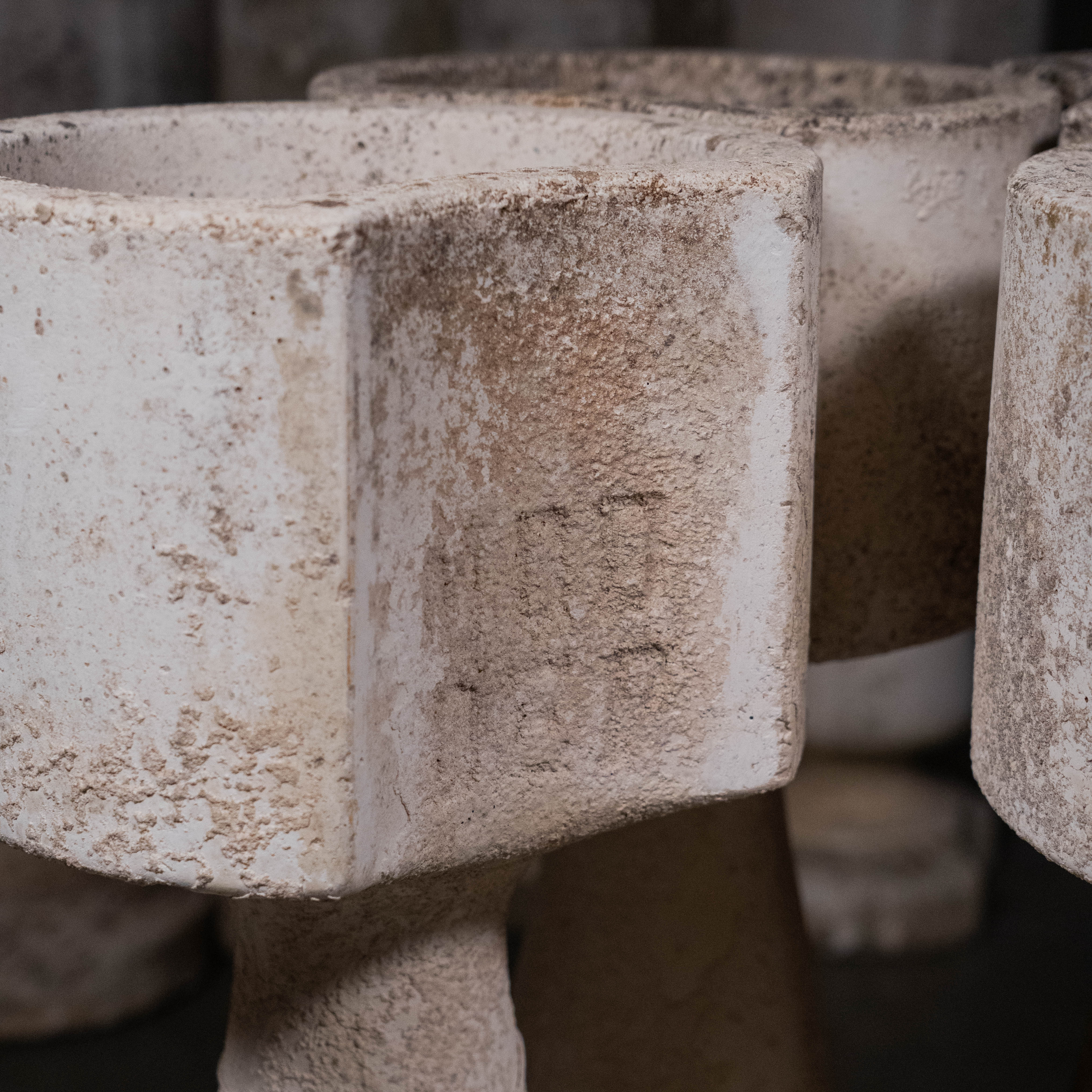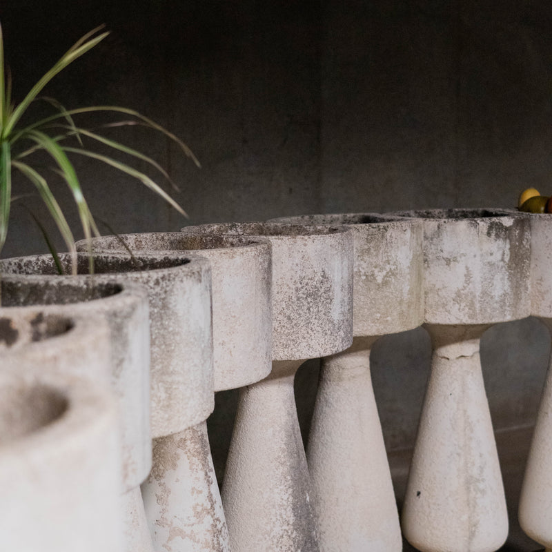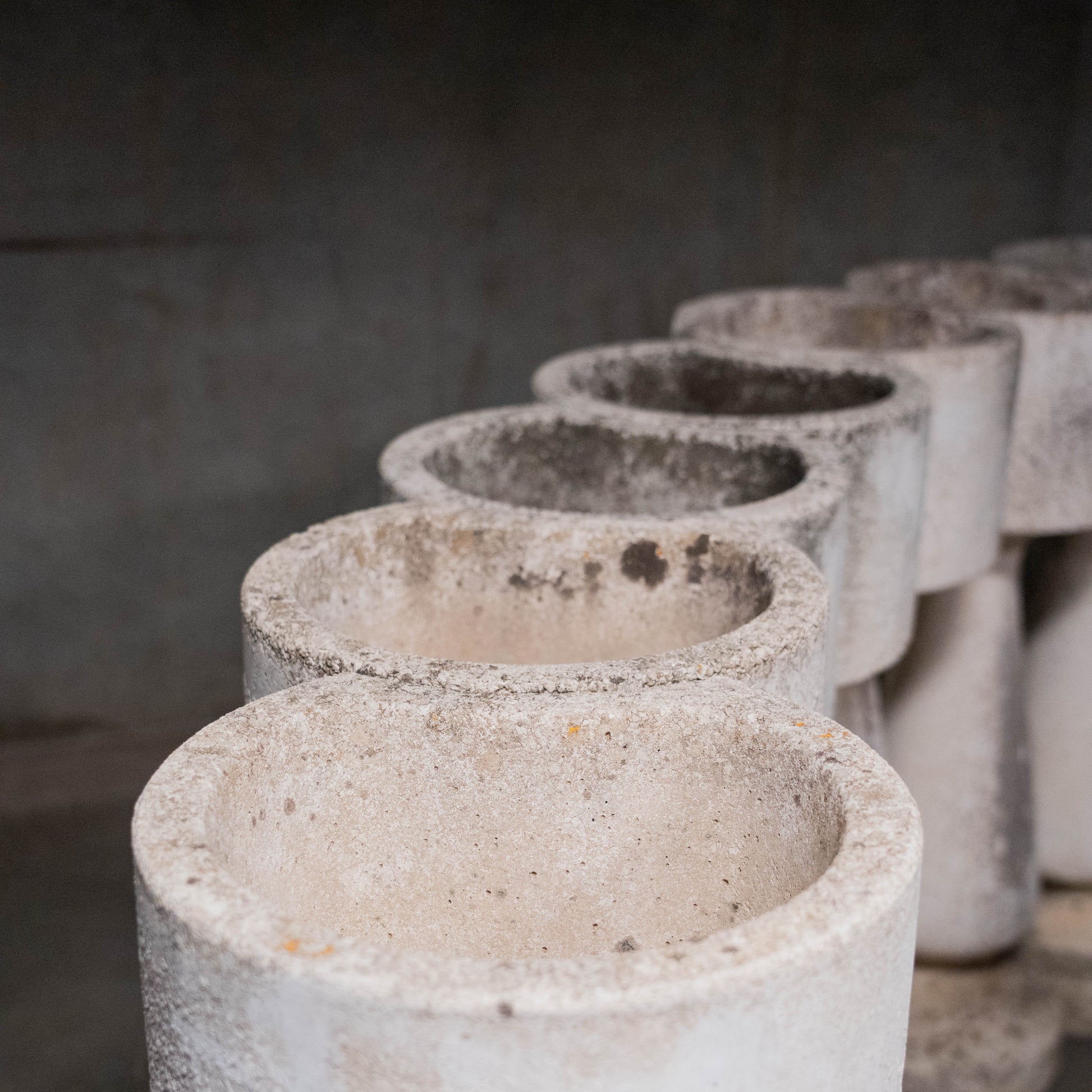 These planters were produced in France in the 1950s–1970s by municipal and regional ateliers experimenting with modular concrete elements for parks, courtyards, and public gardens. Their stackable geometry allows endless configuration possibilities—curved lines, clusters, linear runs, or freeform sculptural installations.