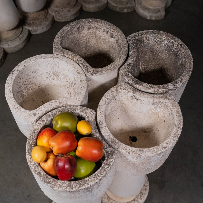 Mid-Century French Concrete Interlocking Planters – Sculptural Modular Garden Forms