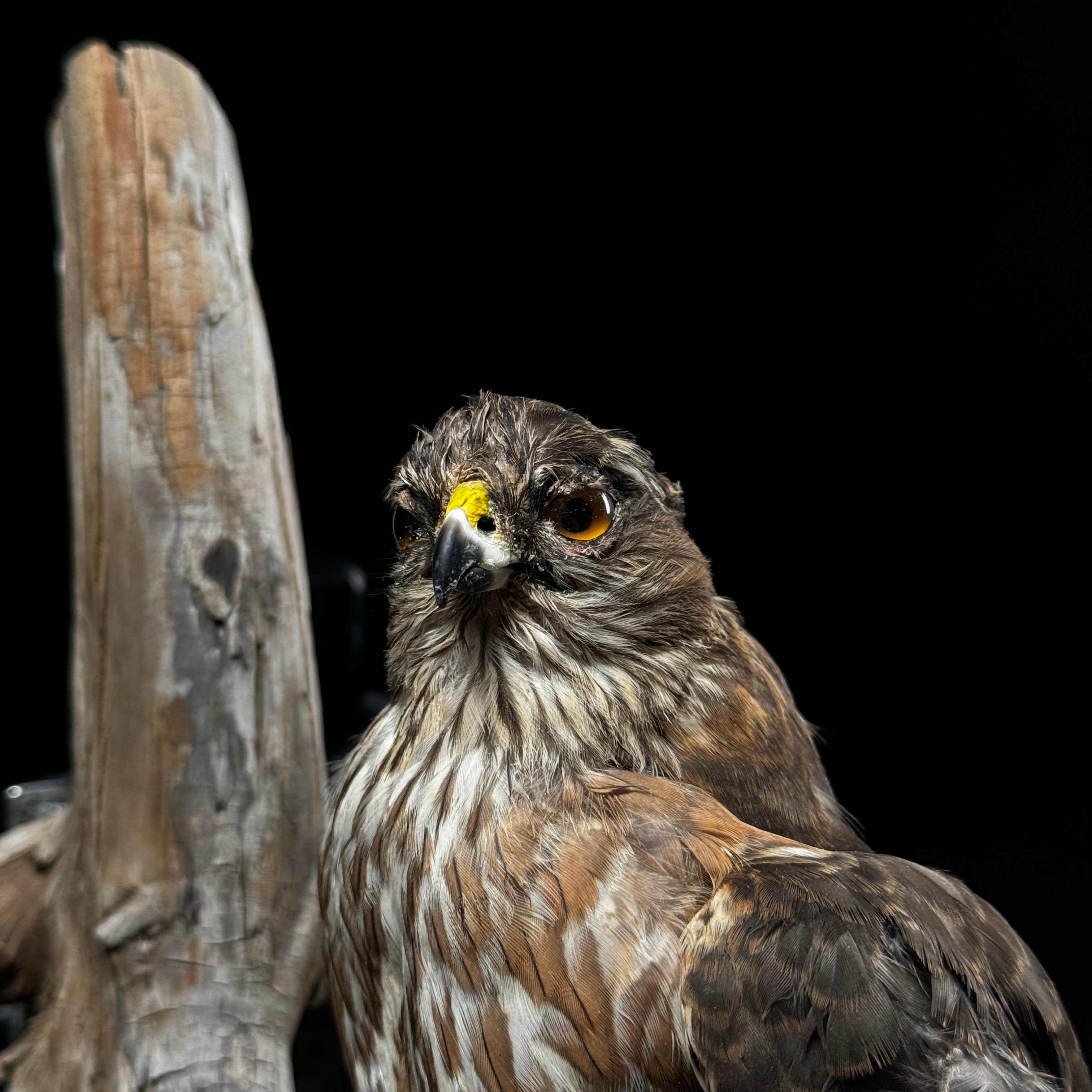 Preserved Hawk Perched On Wood taxidermy