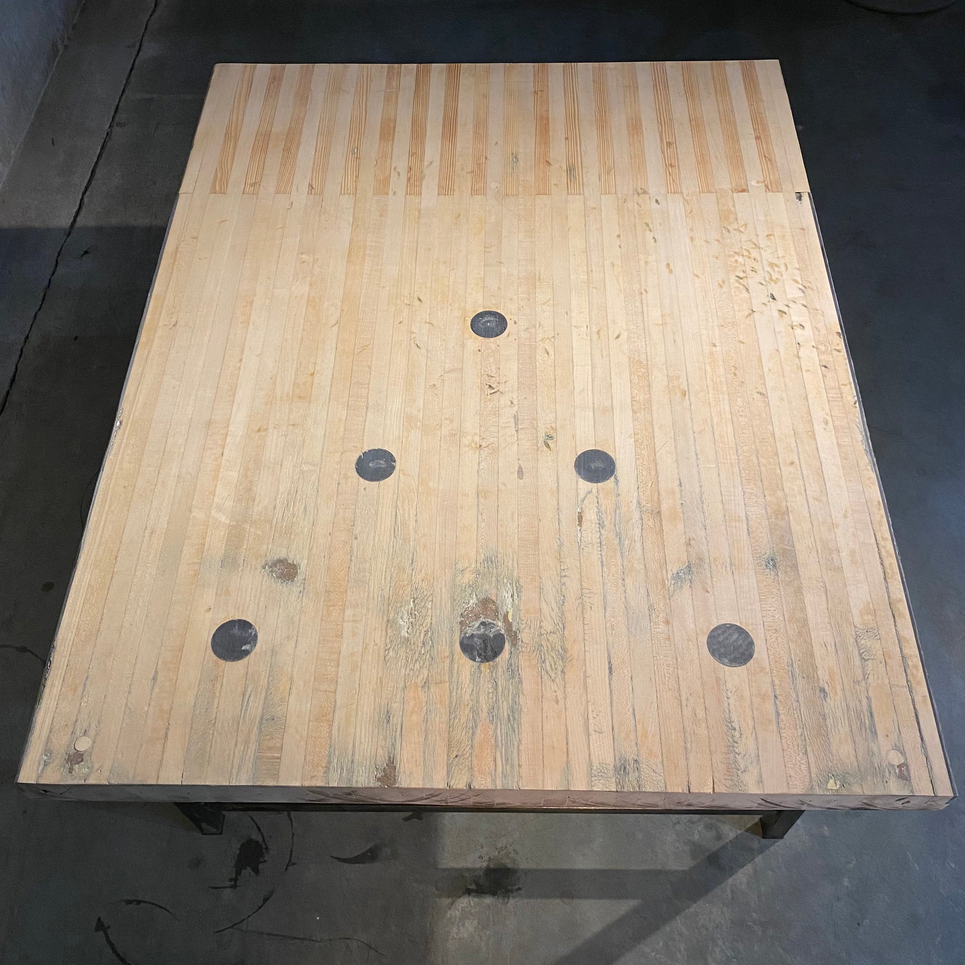 Bespoke Wood salvaged from an old bowling lane that adds beautiful detail & character to this piece.