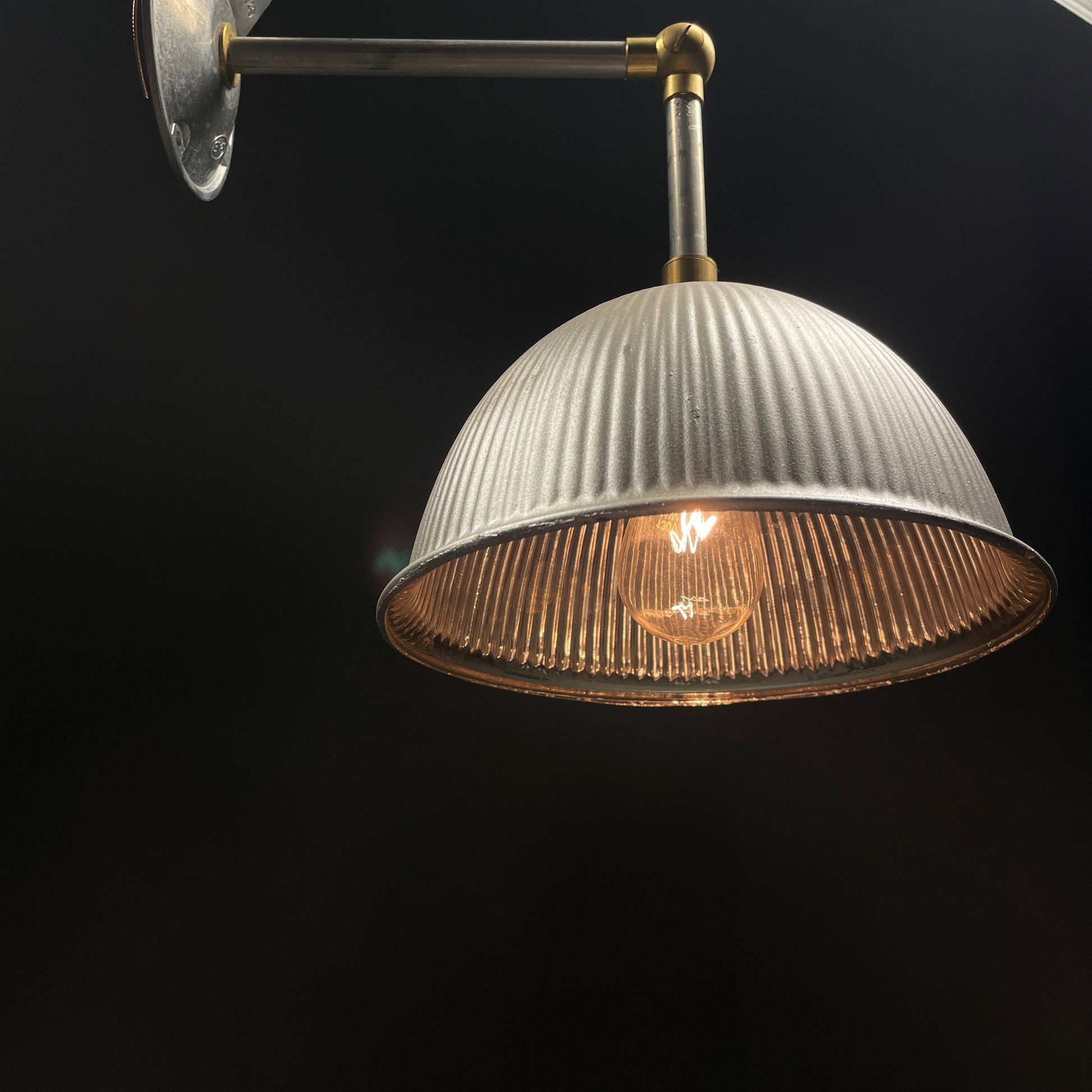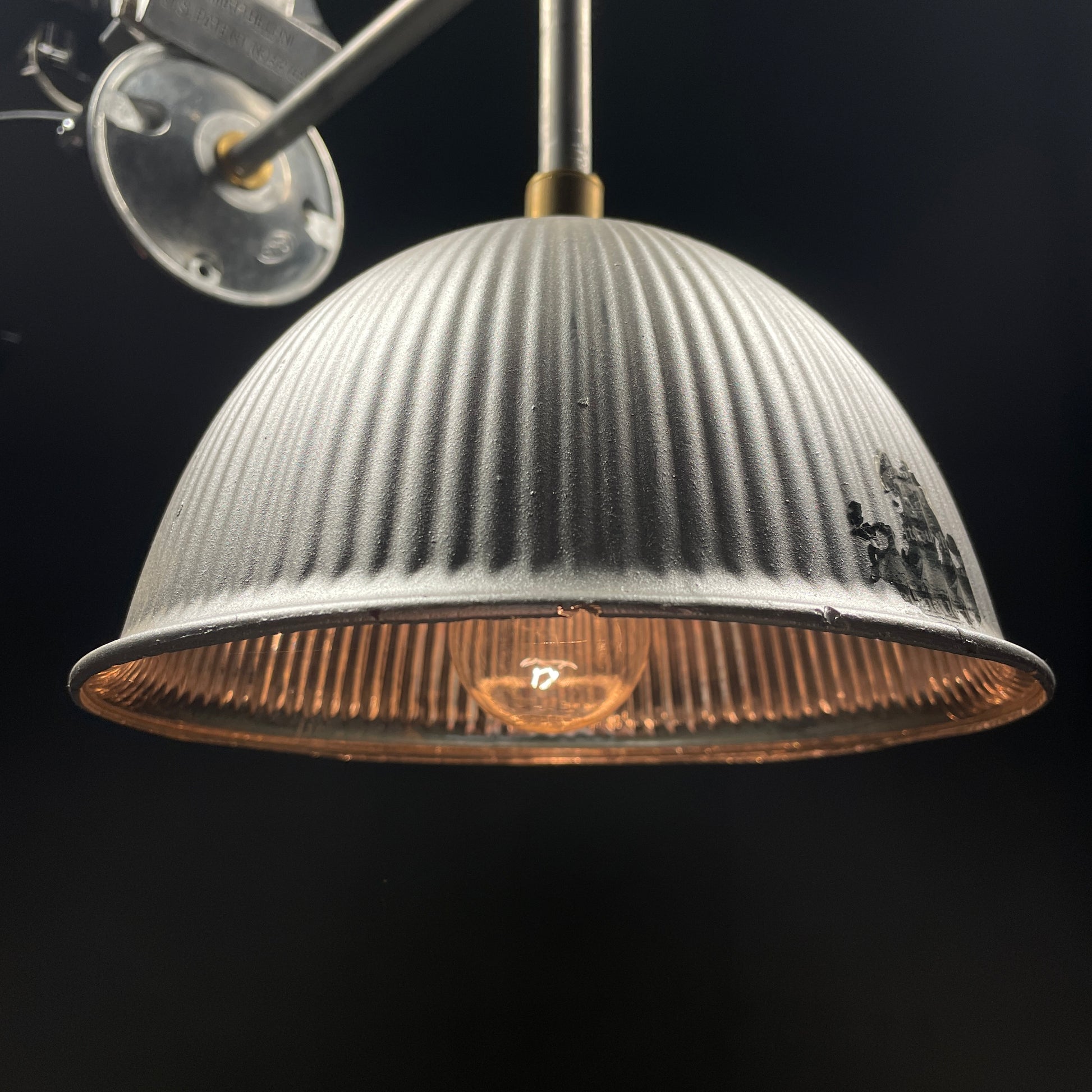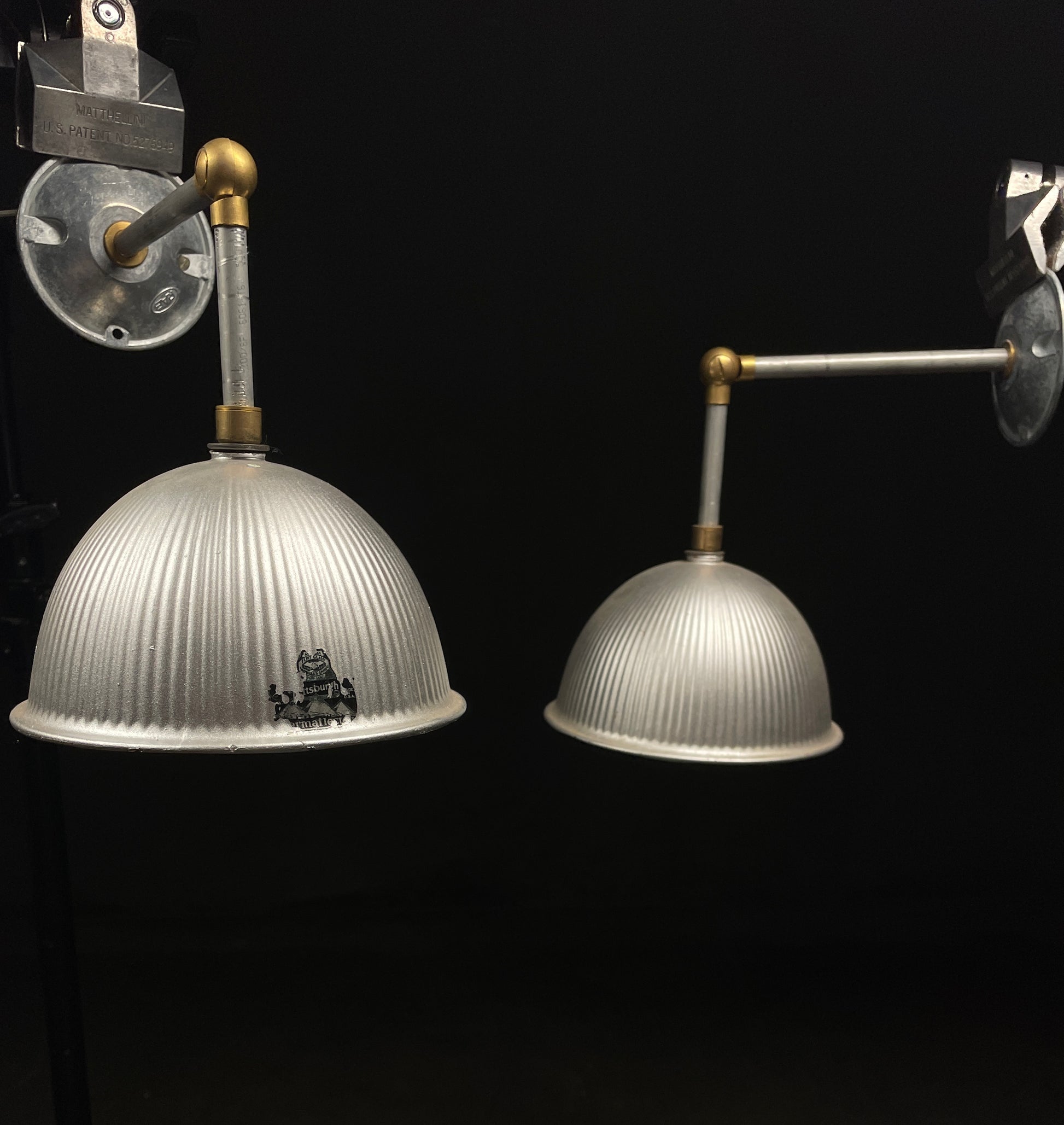 a great set of reflector mercury silver sconces on articulating arms. These NOS are circular shades are by the Pittsburgh Reflector Company, Irwin, PA, USA.