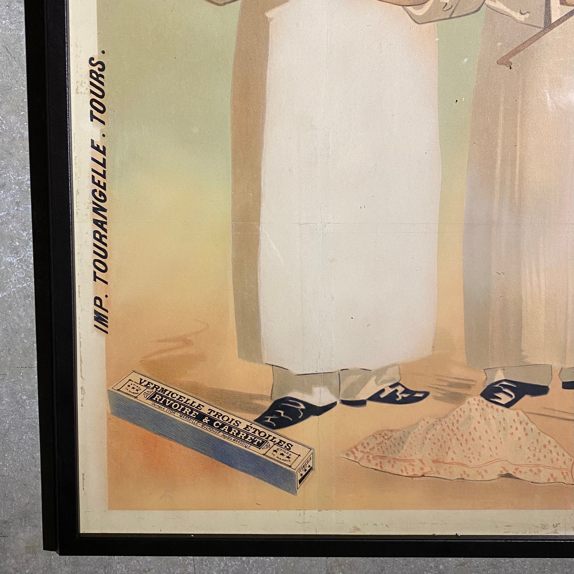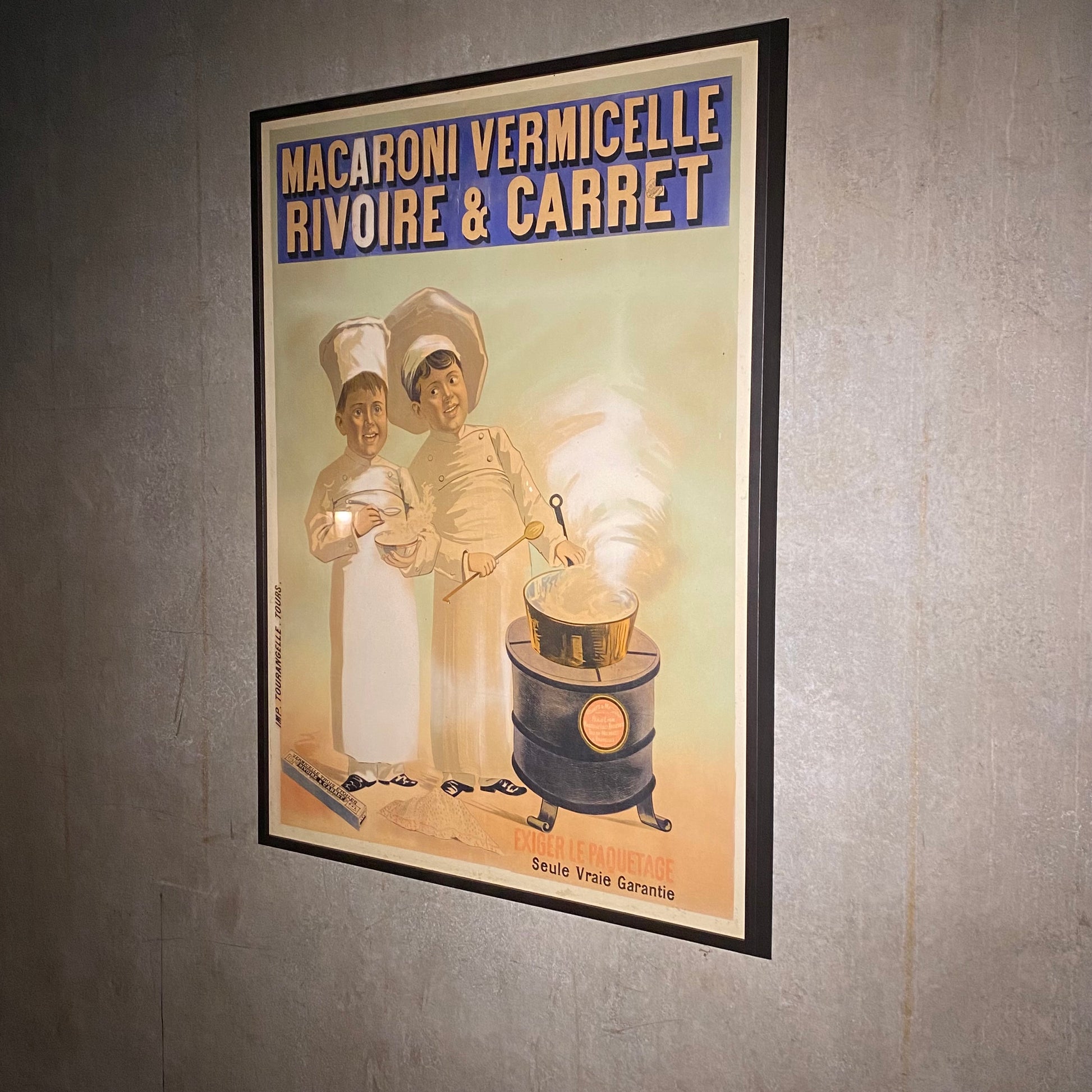In 1860, two cousins from Lyon, Claudius Rivoire and Jean-Marie Carret, joined their names and created the first French brand of pasta. Rivoire and Carret are the inventors of modern dough in France and are known widely around the country. This rare poster was printed by L'imprimerie Tourangelle which was a very popular French printing company in the late 19th Century.