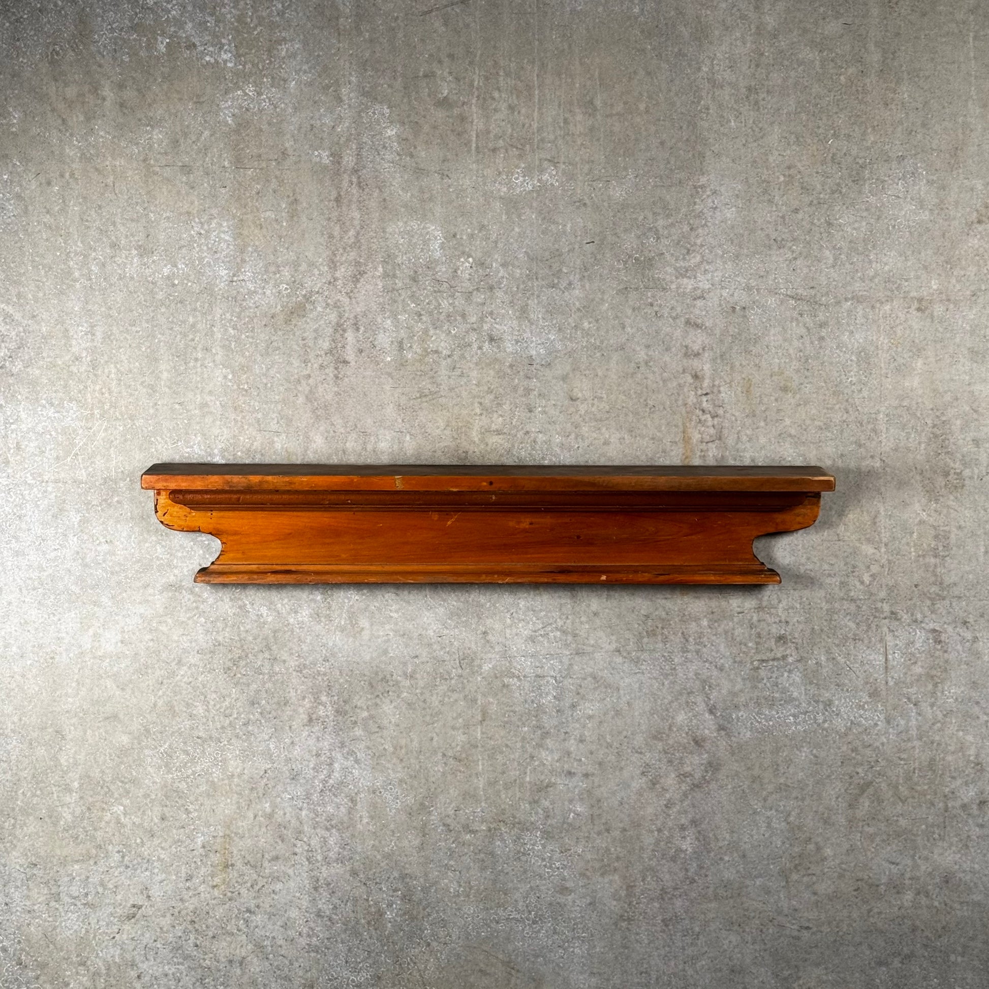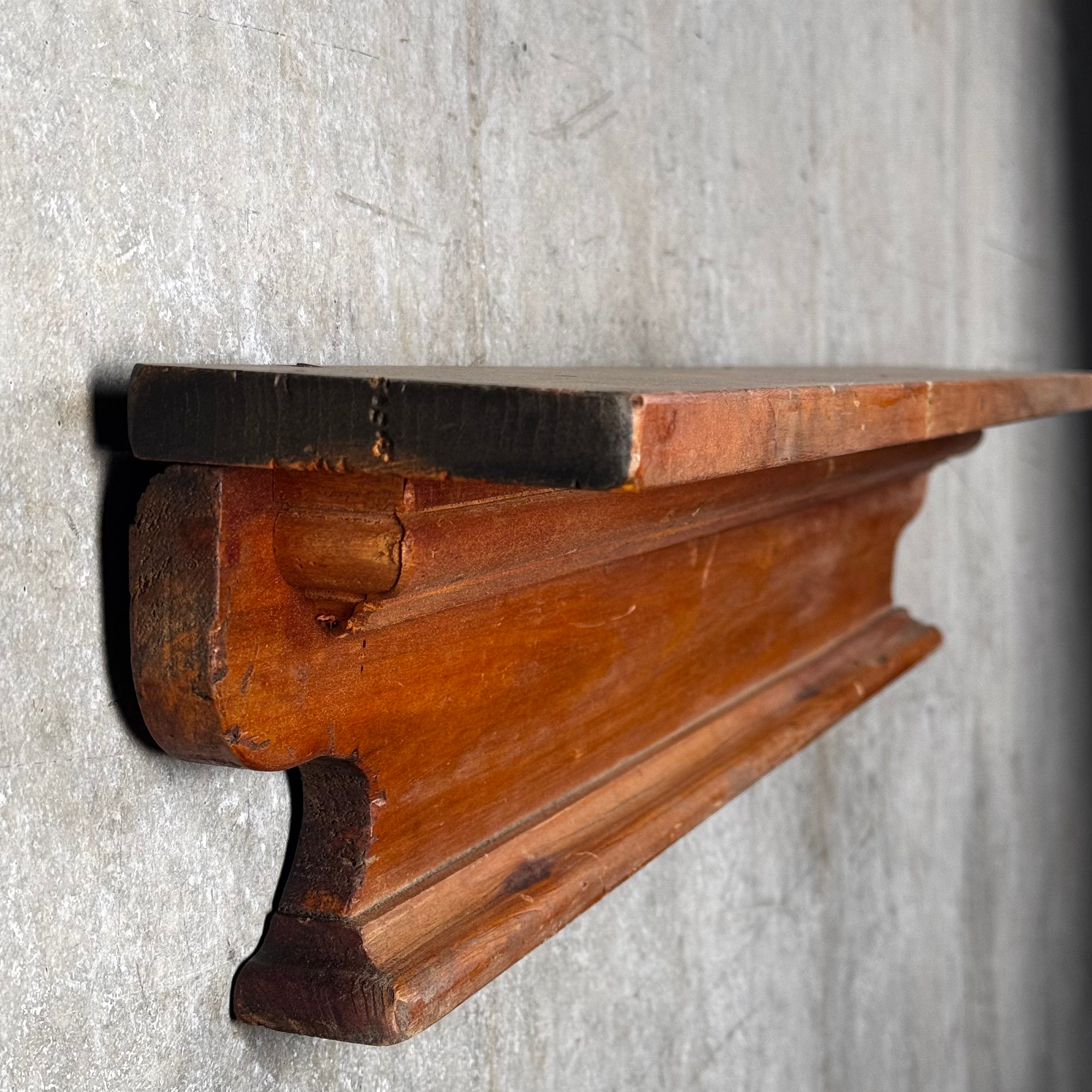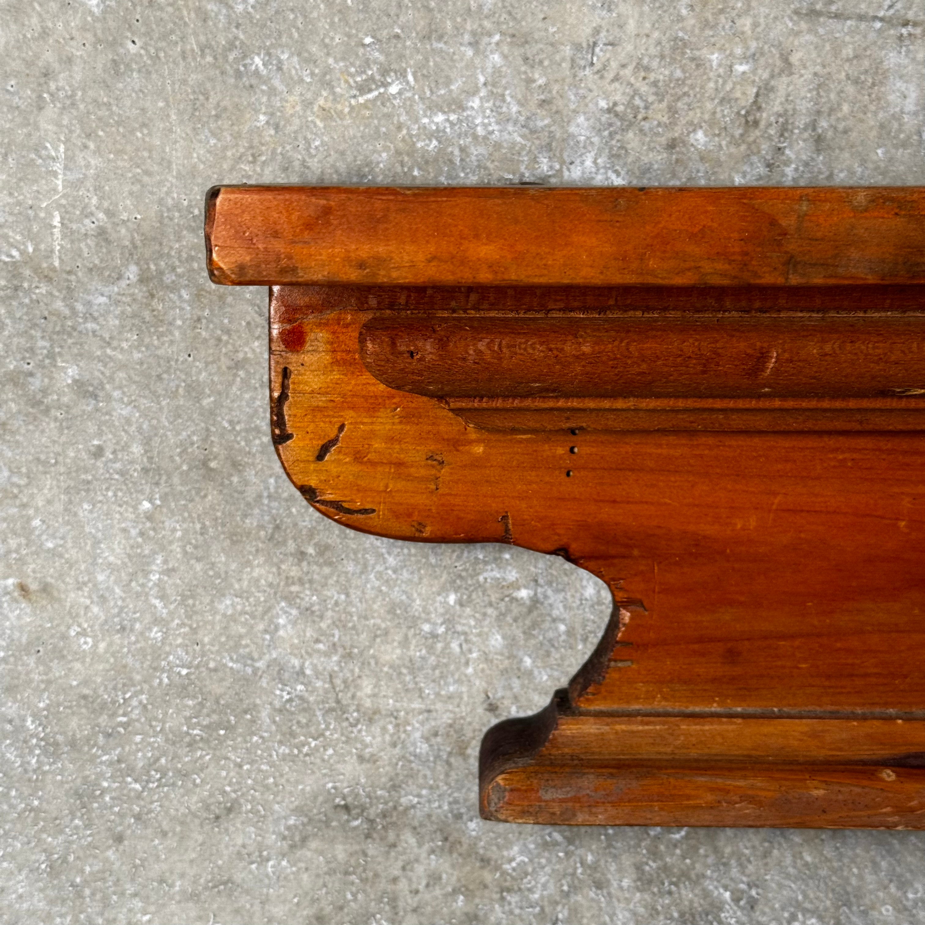 This salvaged architectural shelf is a stunning piece with a rich history, carefully reclaimed to preserve its original character. Crafted from durable, aged materials, it showcases intricate detailing and a timeless design that brings a touch of vintage elegance to any room. Whether used for display or as a functional storage solution, this shelf adds a distinctive, rustic charm while reflecting the craftsmanship of a bygone era.