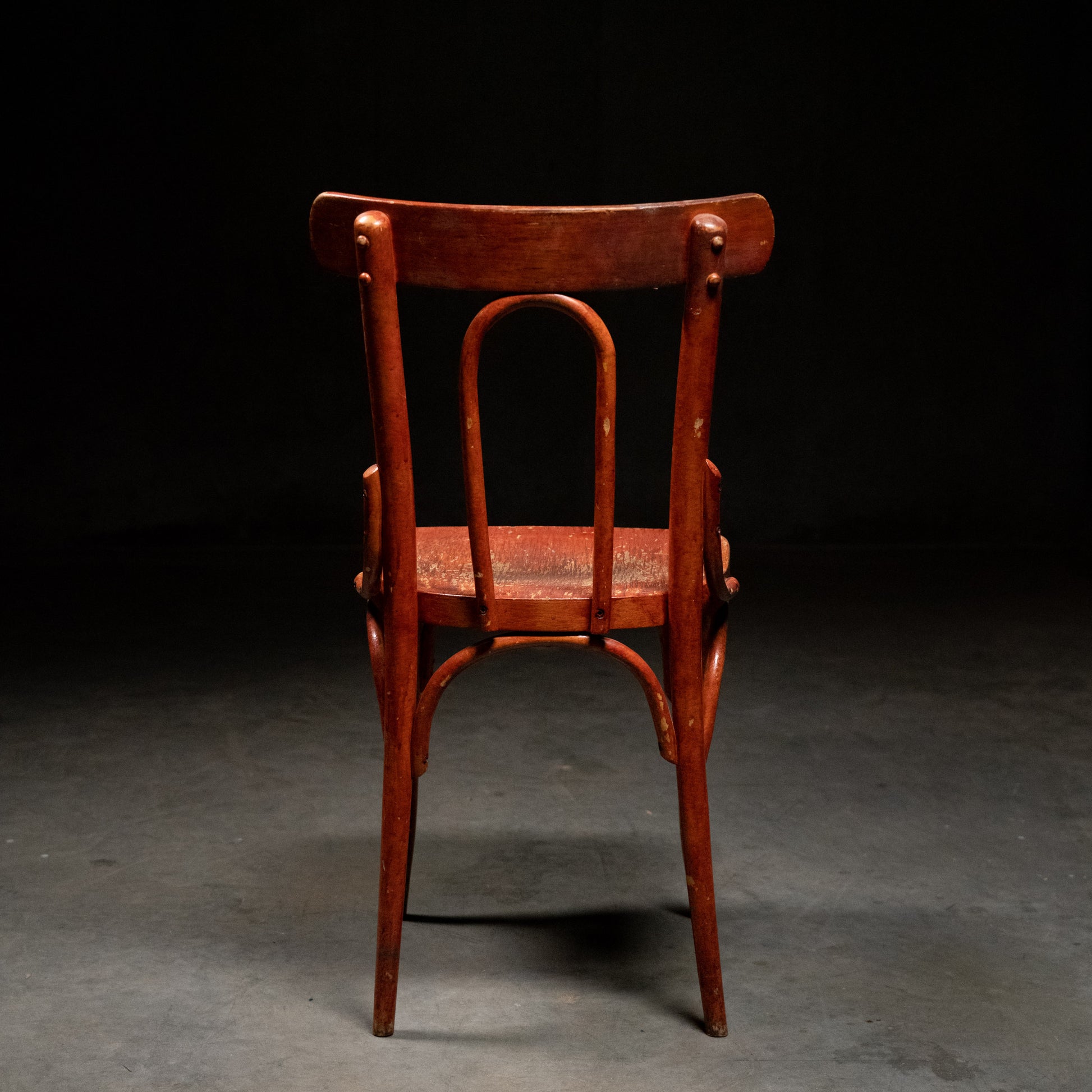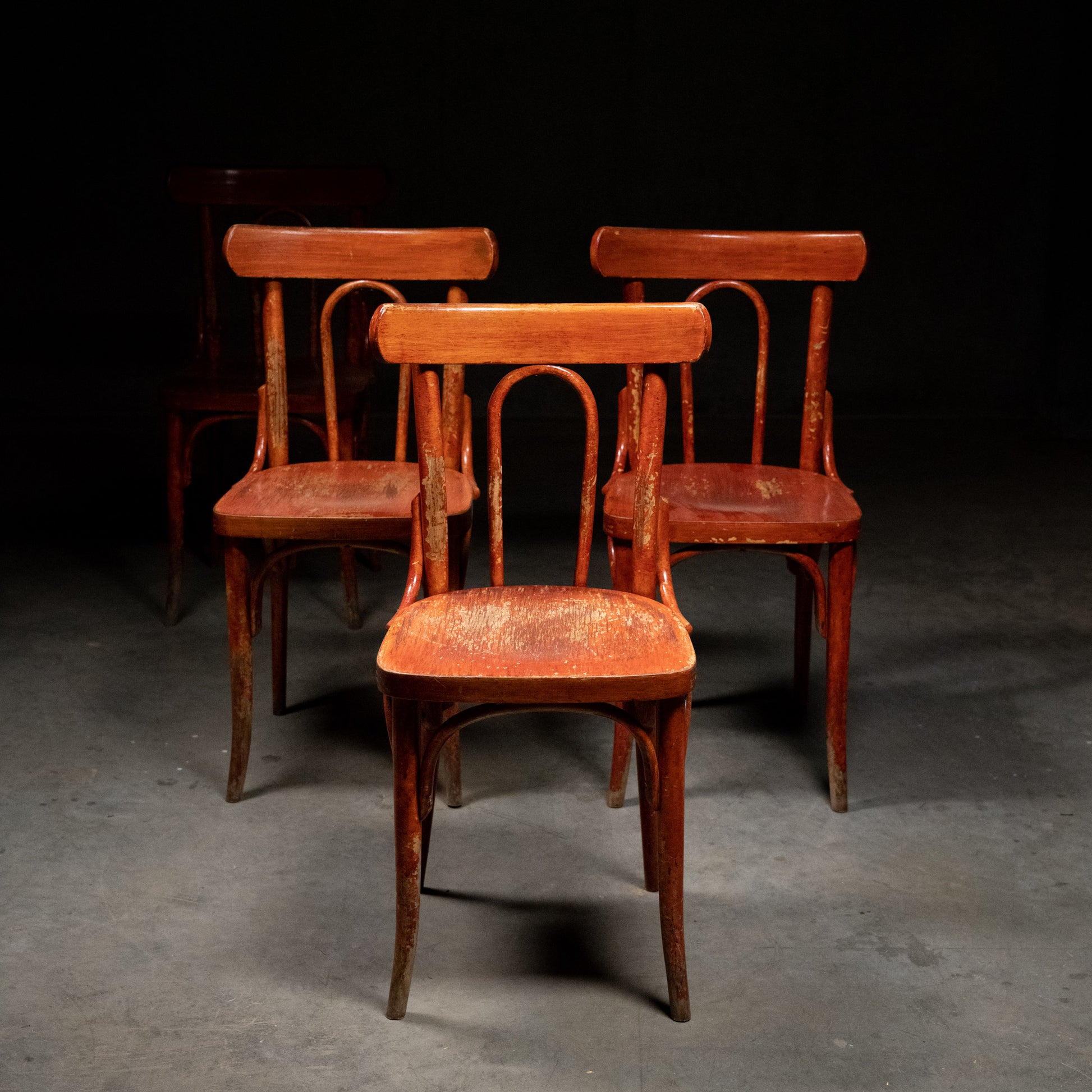A large group salvaged from a cafe in BC ., made in Czechoslovakia by Thonet affiliates . Chairs are rock solid large enough and fully functional for today’s environment. Left in old finish . Price per chair