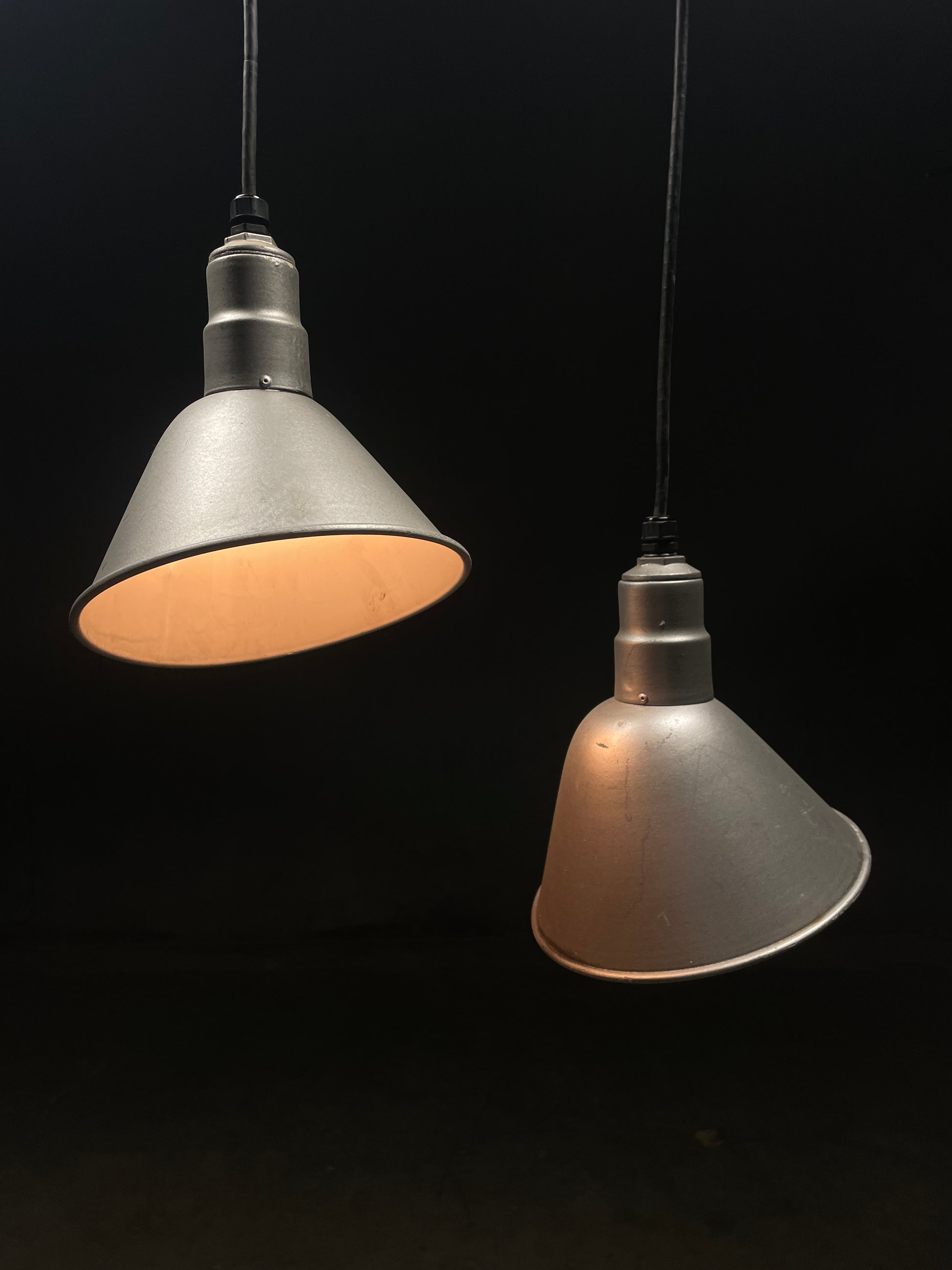 Set of 5 1930 Enamel Industrial Directional Pendants