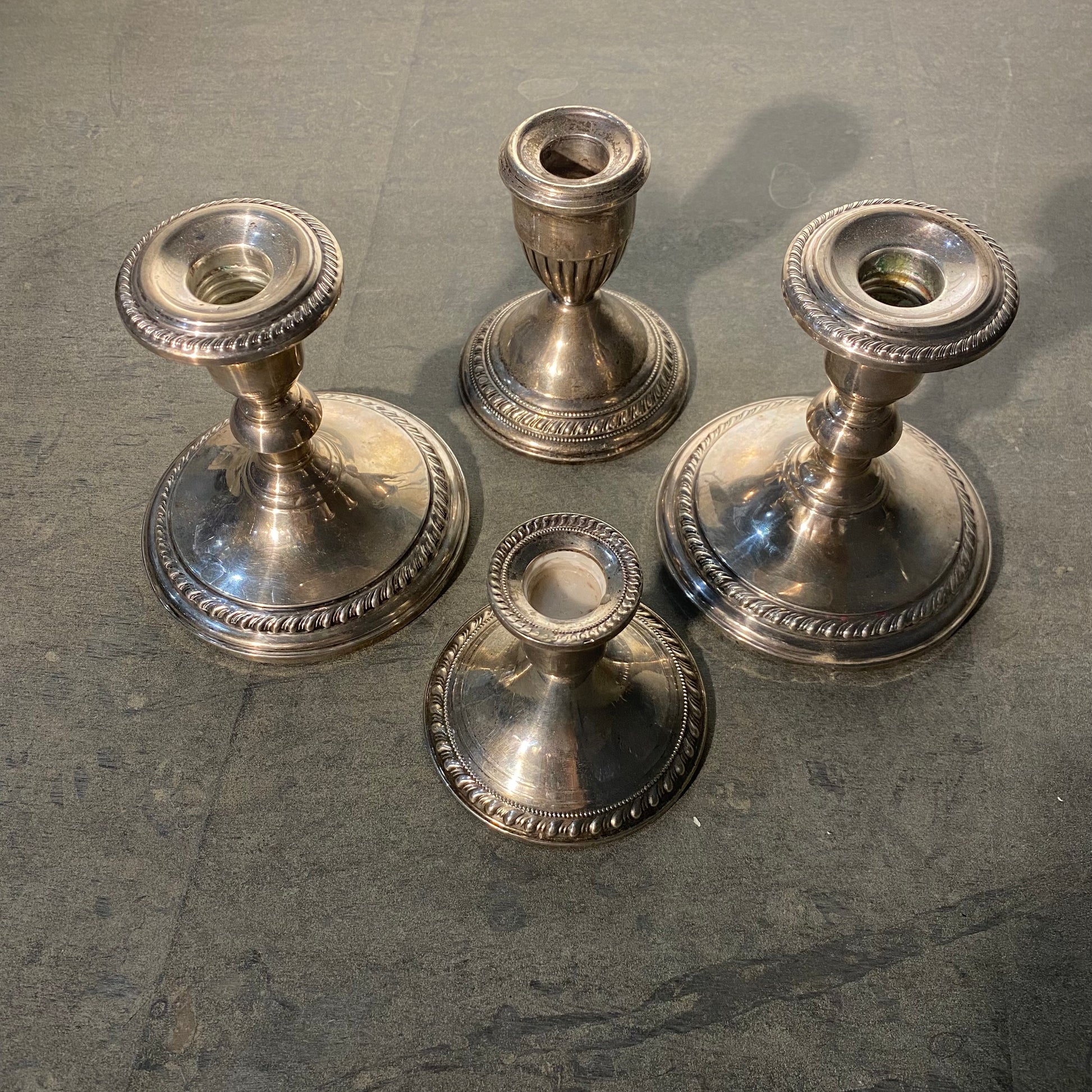 A mix of Pat Pend, Towle, Frank M. Whiting & Co. & Duchin Sterling Silver Candlesticks.